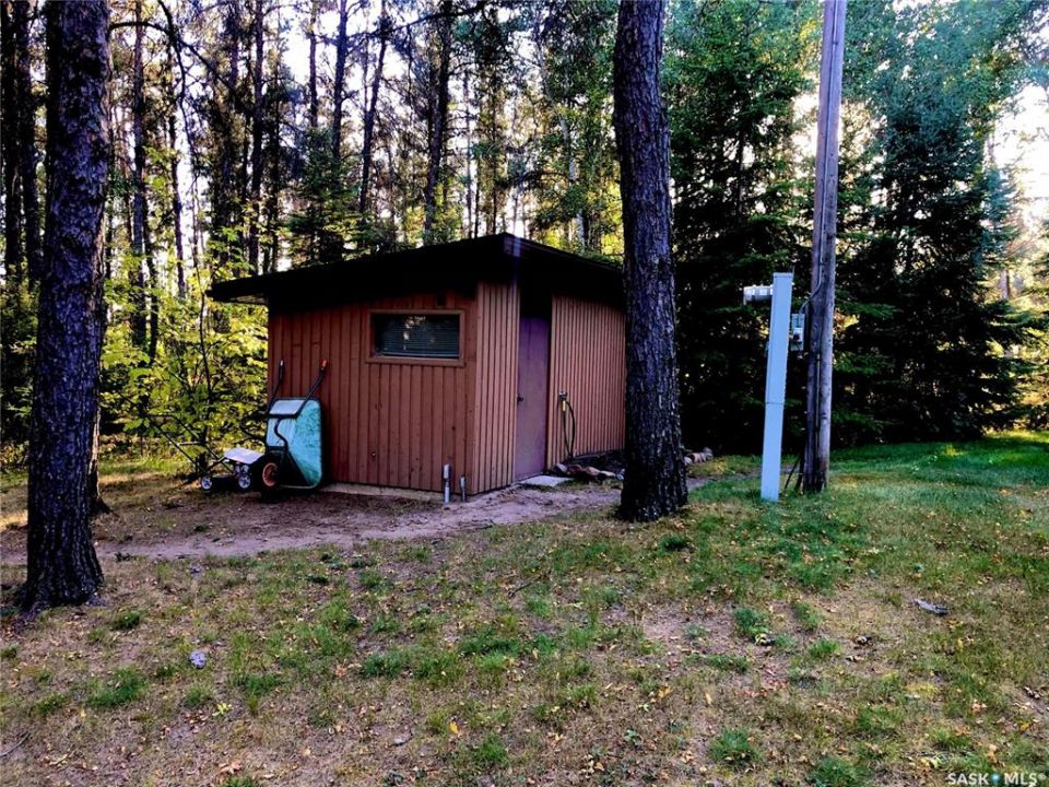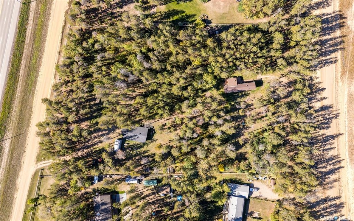 Just 10 minutes from Prince Albert, this well maintained 4 bedroom and 1 bathroom mobile home offers country living with convenience. The expansive living and dining area is filled with natural light from large windows and seamlessly flows into the spacious kitchen that has plenty of storage space. There are 4 comfortable bedrooms and a bright white 4 piece bathroom. Nestled on 1.5 acres, this fully fenced property is surrounded by 200–300 mature trees, precisely planted throughout the landscape to provide both privacy and natural beauty. A sprawling deck and firepit area create ideal spaces for outdoor gatherings, while the added bonus of a heated 7 ft x 18 ft shed adds valuable storage or workspace options. Water is supplied through a shared well located on the adjacent lot and the sewer system is a septic field to a septic tank. Situated near the North Saskatchewan River and the Nisbet Provincial Forest, this home offers a peaceful retreat close to nature. The adjacent lot is also available for purchase (MLS # SK021153), providing an exciting opportunity to expand your space. Act now, make this your next move!