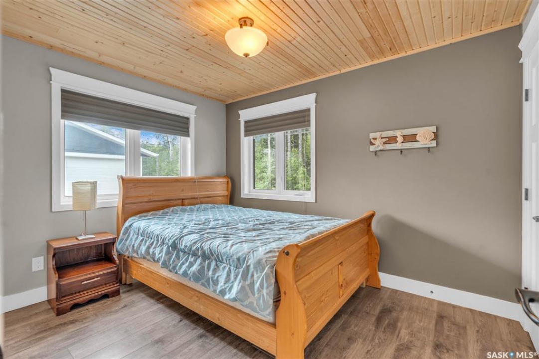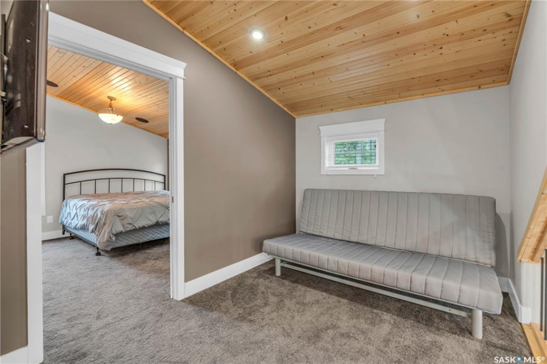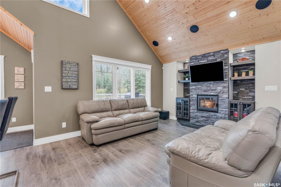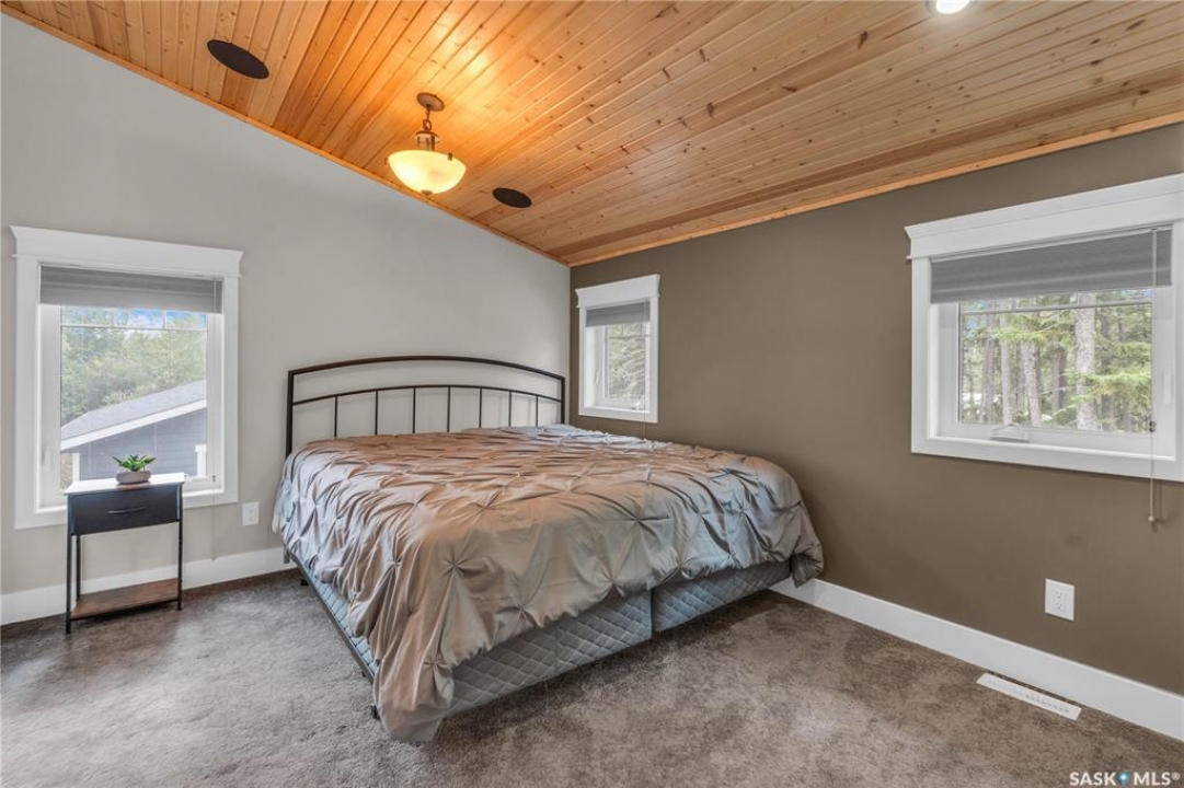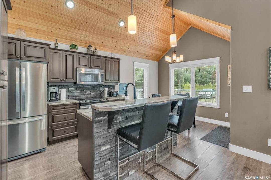 Escape to this stunning winterized cabin, perfectly positioned for all your seasonal adventures! With snowmobile trails and groomed cross-country paths just steps from your door, plus fantastic ice fishing opportunities, this property is a true outdoor enthusiast's dream. Turn key and nestled among mature trees and directly across from crown land, this 1.5-story gem offers unparalleled privacy, backing onto a serene bay. Just a short walk to the beach and close to a golf course, it's the ideal retreat for nature lovers. Step inside to discover an inviting foyer that flows into a breathtaking open kitchen and great room, highlighted by vaulted ceilings that create a spacious ambiance. Elegant touches abound, from tongue and groove pine accents to espresso cabinets adorned with a beautiful backsplash. The kitchen features stainless steel appliances and a generous island, perfect for gathering with family and friends. The garden door opens to a wrap-around deck, complete with a gas BBQ hookup and aluminum railing—an entertainer's paradise. The great room, with its cozy wood-burning fireplace and built-in bookshelves, is designed for family living and creating unforgettable memories. On the main floor, you'll find two spacious bedrooms, a four-piece bath, and a convenient three-piece ensuite. Upstairs, a loft overlooks the great room, providing a connected yet private space. The primary suite is a true retreat, boasting a massive walk-in closet and a luxurious five-piece ensuite that transforms every day into a spa day. Additional features include a 4ft crawl space with a concrete floor, a holding tank, an on-demand hot water heater, and a spacious 24x32-foot garage with a 12-foot door, ensuring all your storage needs are met. The back deck is equipped with built-in speakers, perfect for enjoying music during your outdoor gatherings. This exceptional cabin is designed for family enjoyment in one of Canada's premier destination spots. Don't miss out!