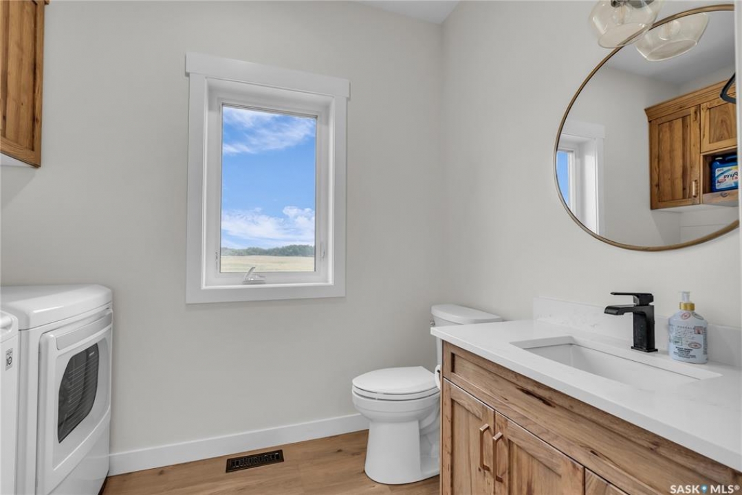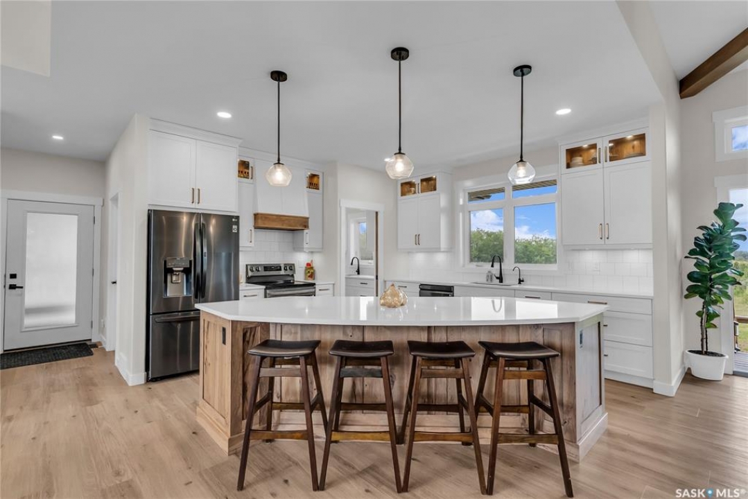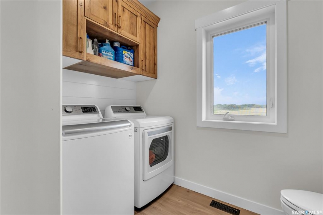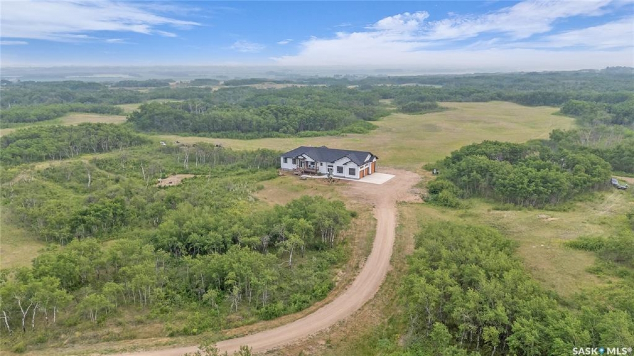 Rare opportunity with this beautiful acreage just minutes south from Saskatoon situated on 69.54 acre's & located just off Merrill school road right beside Merrill school! This peaceful paradise offers the privacy & tranquility of country living, just 7 minutes to circle drive in Saskatoon, close proximity to the popular Berry Barn, a community center, a rink, a heated ice shack in the winter as well as school bus pickup right at the property to many schools in Saskatoon. This one of a kind 1832 sq.ft raised bungalow, Energy Star Certified home features a triple attached garage & shop! The attached shop has a 12 ft. overhead door with 14 ft ceilings, in floor draining, room for 4 vehicles & a future vehicle lift! The exterior of the home has Hardy plank siding, an 8x22 front deck as well as a concrete walkway/patio area. The home features triple pane windows, insulated concrete floors in the garage & basement, an ICF foundation, 14 inch walls, R50 insulation in the attic & energy efficient utility bills. The main floor is inviting with 11” ceilings, vinyl plank flooring & a stunning kitchen that is open to the dining/living area! The kitchen features a large island, quartz countertops, tile backsplash, black stainless steel appliances, a hood fan that vents directly outside & a butler's pantry with sink built in. The Great room has a beautiful gas fireplace with brick surround. There is a commercial grade water heater & reverse osmosis system as well as a rough in for a future wet bar. All services were newly set up in 2022; (1000 Gal Septic tank, Septic field, Well - 50 feet & 40 gal per min). The current zoning of the property allows for a large detached shop or Quonset, & this perfect family acreage comes complete with a firepit, a water softener, central air conditioning, central vacuum, natural gas bbq hookup, all appliances & many Saskatoon berry bushes. Subdivision is a possibility in the future & any remaining SK New Home warranty can be transferrable.