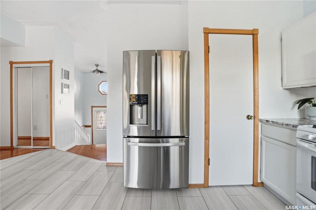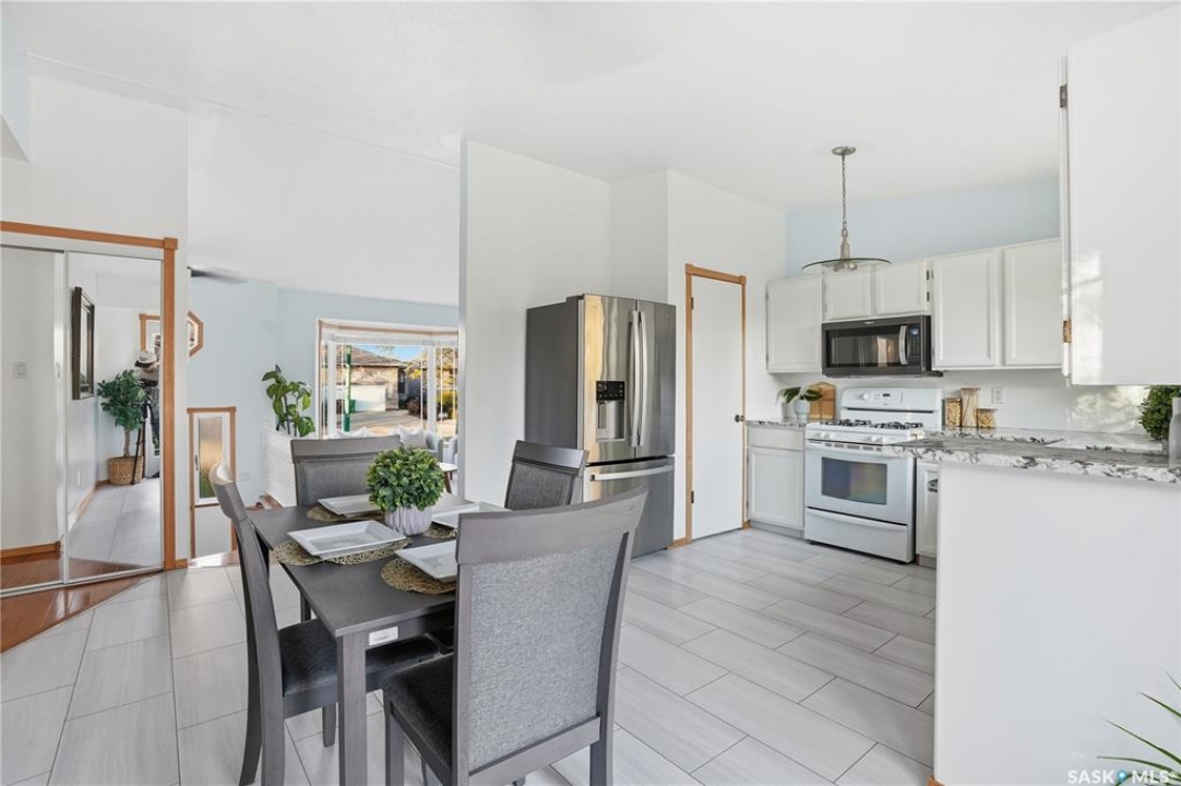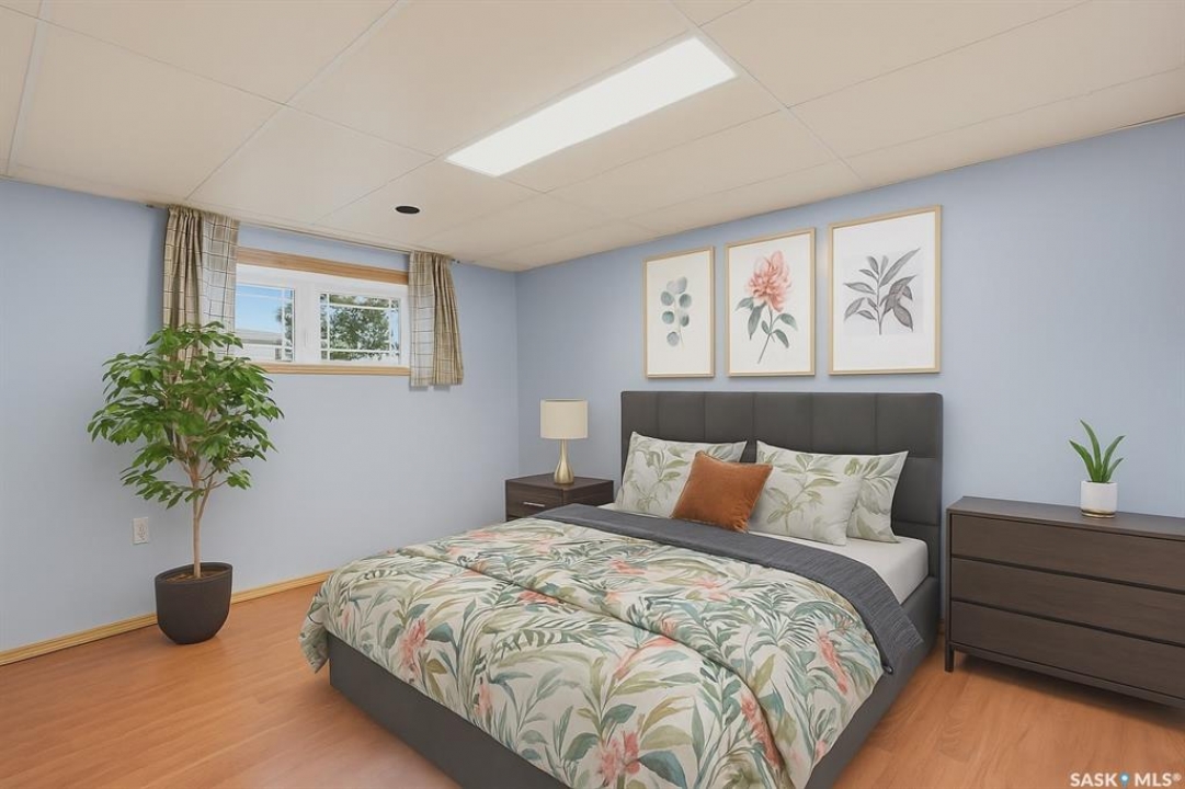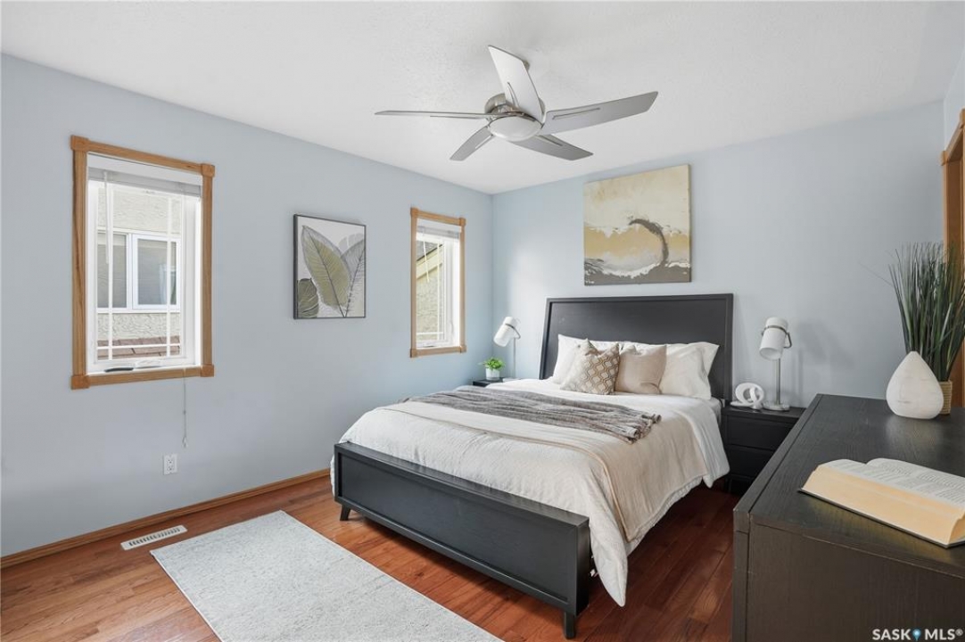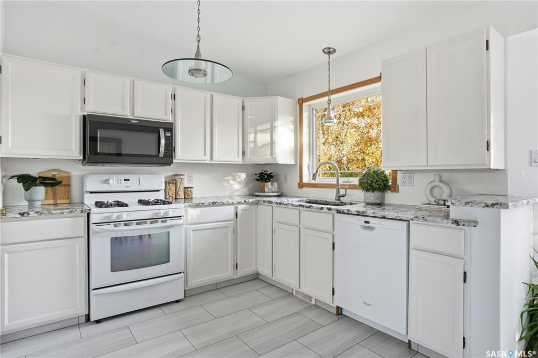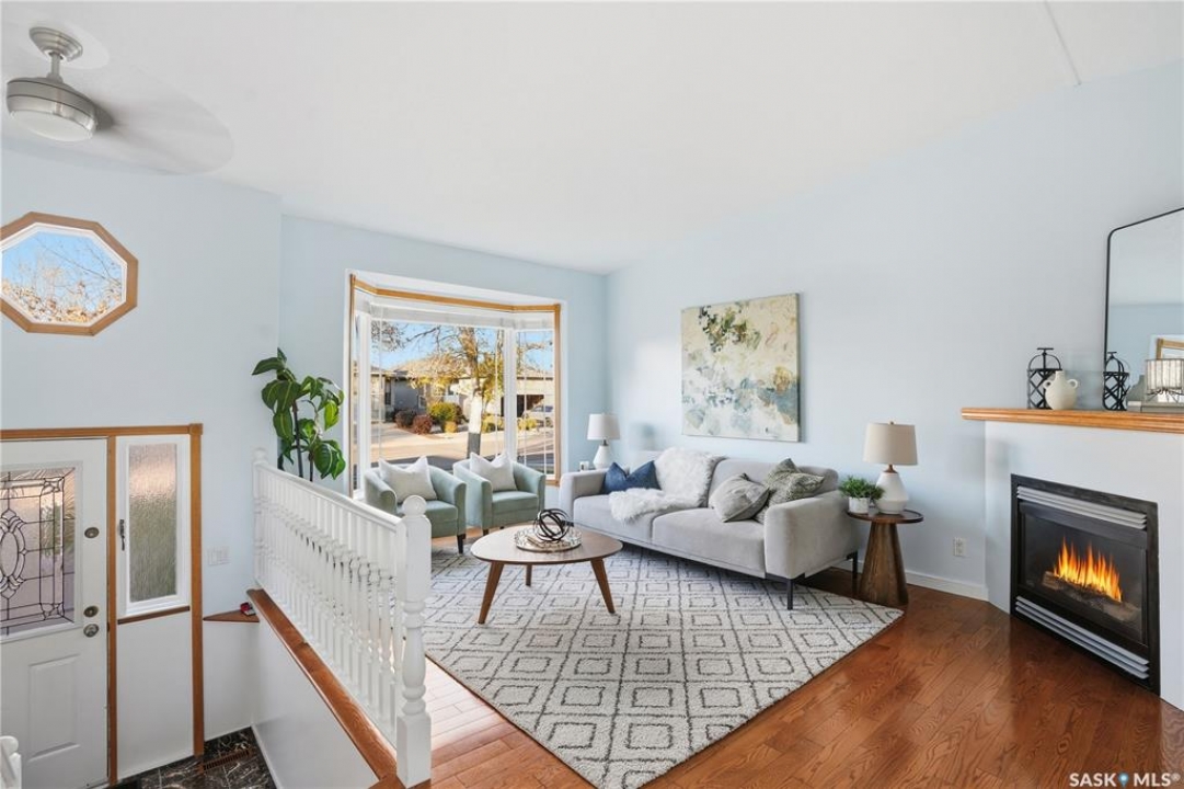 Meticulously cared for by the long-time owner, this Crawford Built, sun-filled bi-level is perfectly positioned with Ewart Park behind the back gate — a quiet, north-end retreat with all the family-friendly conveniences nearby. Warm hardwood flows through most of the main floor into a bright living room centered around a gas fireplace — ideal for cozy winter evenings. Down the hall you will find the primary bedroom that offers a private 2-piece ensuite, plus two additional main-floor bedrooms with full closets and a 4-piece bathroom. The large eat-in kitchen features painted cabinetry, granite counters, a good-sized pantry and a window overlooking the park. Dining doors open to a recently resurfaced deck with a gas line for the BBQ and a fully fenced yard that enjoys peaceful park views; a play park and walking paths are just steps from your back gate. Close to Lakewood Park and MacNeil Elementary School. The fully developed basement fills the home with natural light and provides a generous rec area with a second gas fireplace — perfect for movie nights. There is the 4th bedroom along with a den that could be used as a home office, toy area or 5th bedroom. Laundry is located in the utility/storage room, and 3rd bathroom with a gorgeous claw-foot bathtub to soak away the day completes this level. Improvements include shingles (2022), fridge (2025),triple-pane PVC windows, updated bathrooms and kitchen — thoughtful improvements that add comfort and value. Tucked away yet close to north-end amenities, this home blends convenience with tranquility. Ready to see it in person? Contact your agent today!