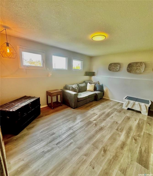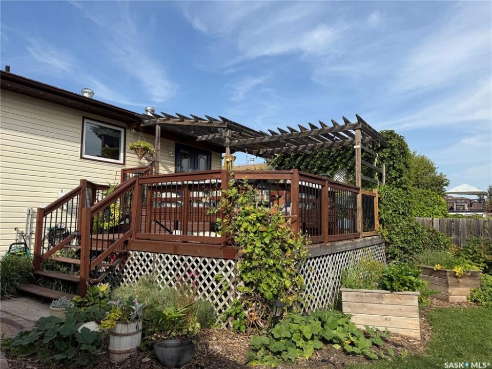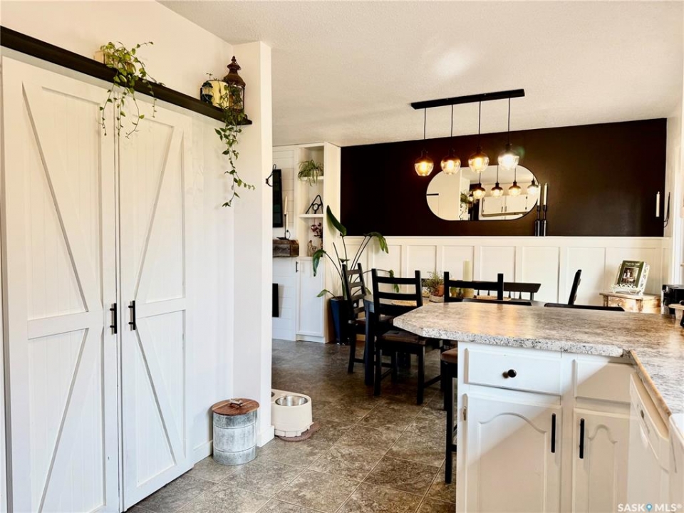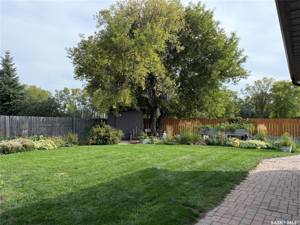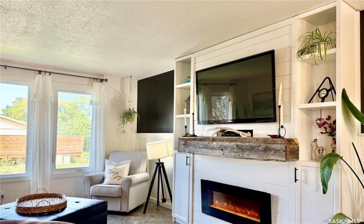 Show Home Style Bi-Level with 4 Bedrooms in Lanigan! This beautifully maintained bi-level offers 4 bedrooms, 2 bathrooms, and numerous updates throughout. A bright foyer welcomes you into an inviting space combining comfort and modern style. The kitchen features ample cabinetry, a pantry, and backyard views, opening to the dining area with access to a two-tiered deck—perfect for entertaining. The living room highlights a stunning electric fireplace feature wall. The main floor includes 2 bedrooms and a stylish 3-piece bath with tiled shower. The fully finished lower level offers 2 more bedrooms, a spacious family room, 4-piece bath, storage room, and laundry/utility area. Enjoy the fenced backyard with deck, hot tub, patio, raised garden beds, mature . trees, sheds, and natural gas BBQ hookup. A 28' x 26' heated double garage/shop (1994) is drywalled, insulated, and includes built-in cabinets, work tables, overhead storage, its own electrical panel with 240V outlet, and a new garage door opener system (2022). Heated with industrial heater. Rear RV parking adds convenience. Notable Updates: 2015:Water heater,2019: electric fireplace, 2022:washer/dryer, farmhouse apron sink, Basement tub, toilet and feature wall, garage door opener, 2023: Backyard SW corner fencing, 2024: fresh paint, kitchen tap, central vac attachments , 2025:basement tile tub surround, plus trim, wainscoting & closet upgrades. Located in the friendly community of Lanigan—close to BHP Jansen and Nutrien mine sites—with great amenities including a new K–12 school, daycare (under construction), pool, golf course, rec complex, hospital, and shopping. Move-in ready and full of charm—book your private showing today!