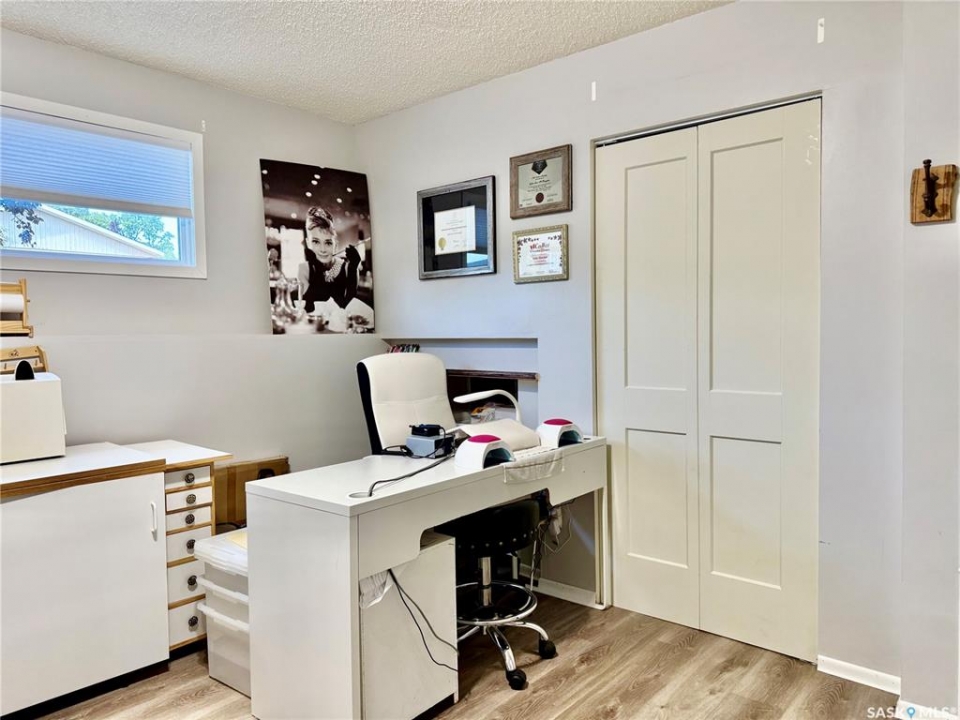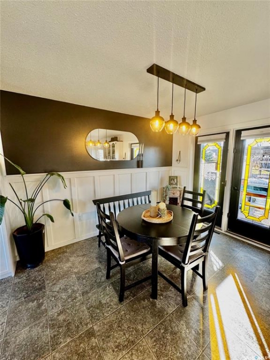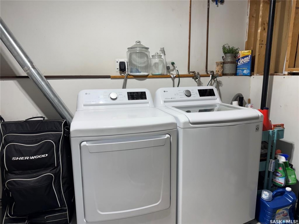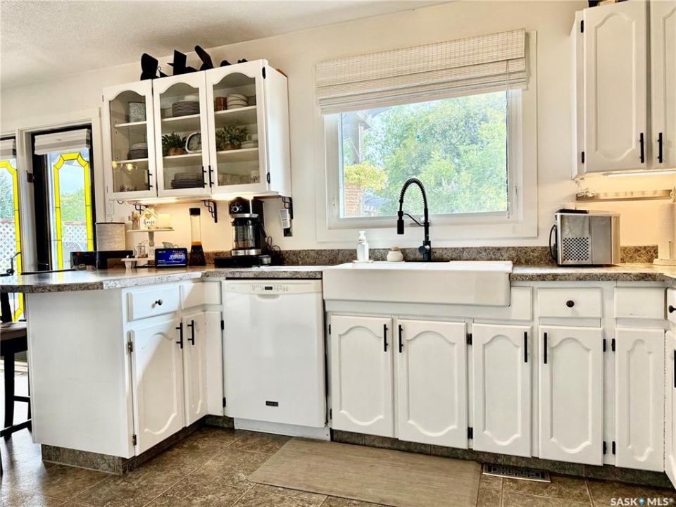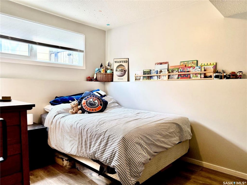 Show Home Style Bi-Level with 4 Bedrooms in Lanigan! This beautifully maintained bi-level offers 4 bedrooms, 2 bathrooms, and numerous updates throughout. A bright foyer welcomes you into an inviting space combining comfort and modern style. The kitchen features ample cabinetry, a pantry, and backyard views, opening to the dining area with access to a two-tiered deck—perfect for entertaining. The living room highlights a stunning electric fireplace feature wall. The main floor includes 2 bedrooms and a stylish 3-piece bath with tiled shower. The fully finished lower level offers 2 more bedrooms, a spacious family room, 4-piece bath, storage room, and laundry/utility area. Enjoy the fenced backyard with deck, hot tub, patio, raised garden beds, mature . trees, sheds, and natural gas BBQ hookup. A 28' x 26' heated double garage/shop (1994) is drywalled, insulated, and includes built-in cabinets, work tables, overhead storage, its own electrical panel with 240V outlet, and a new garage door opener system (2022). Heated with industrial heater. Rear RV parking adds convenience. Notable Updates: 2015:Water heater,2019: electric fireplace, 2022:washer/dryer, farmhouse apron sink, Basement tub, toilet and feature wall, garage door opener, 2023: Backyard SW corner fencing, 2024: fresh paint, kitchen tap, central vac attachments , 2025:basement tile tub surround, plus trim, wainscoting & closet upgrades. Located in the friendly community of Lanigan—close to BHP Jansen and Nutrien mine sites—with great amenities including a new K–12 school, daycare (under construction), pool, golf course, rec complex, hospital, and shopping. Move-in ready and full of charm—book your private showing today!