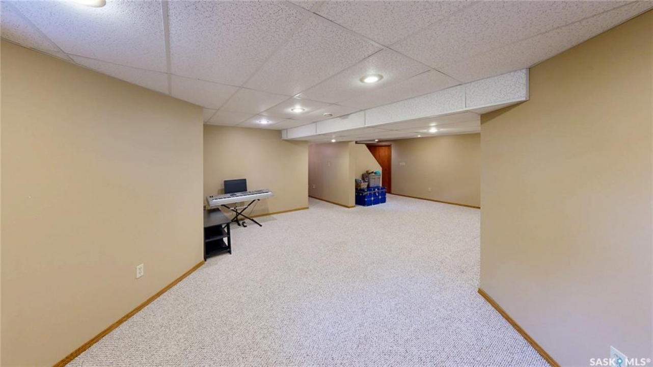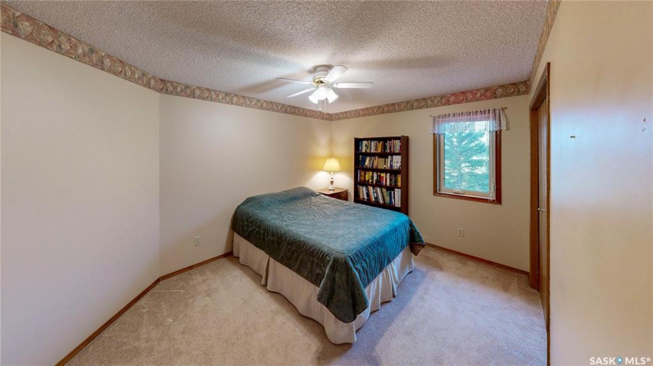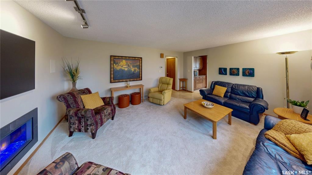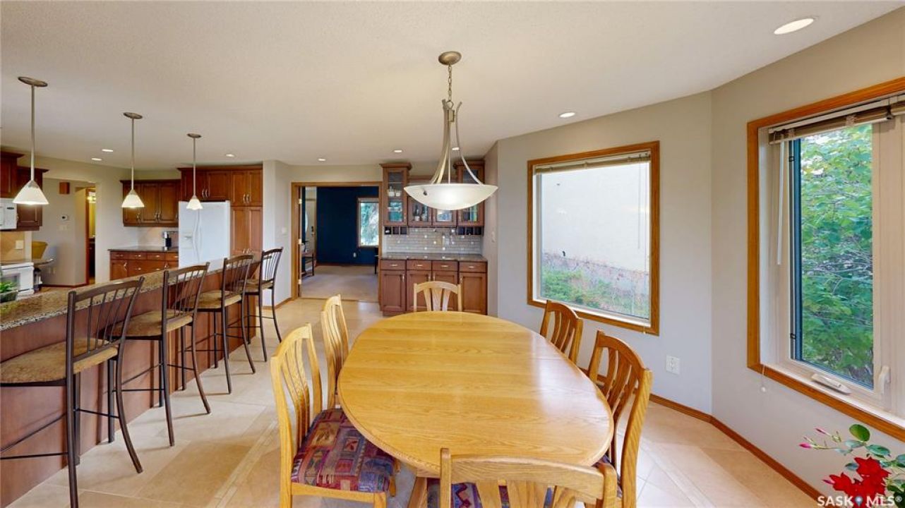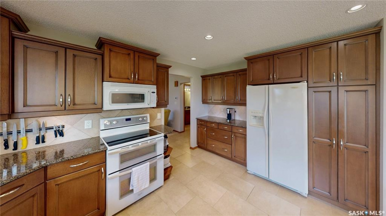 Welcome to 2631 Crocus Drive in the desirable Wood Meadows neighborhood close to WF Ready school and park, St. Marguerite School, and a short drive away from all the shopping amenities Regina's East End has. This original owner, 1991 built, 2588 square foot, 5 bedroom, 4 bathroom, 2 story house sits on a massive 8840 sqft irregular lot backing a walking path. The front yard has a lawn, pine tree, greenery and the double concrete driveway that leads to the 24'x24' double attached, insulated garage and covered front porch. There are 18 solar panels on the roof! The backyard has an endless lawn, trees and shrubs, a patio with an included pergola, a garden, a fenced area and a shed! You enter this home into the foyer that has a coat closet. Next is the family room. Walking through french doors you enter into the large dining room that is surrounded by large windows that overlook the beautiful green space. The updated kitchen is next with a window overlooking the back yard, cappuccino maple cabinets, granite counter tops and the included fridge, stove, microwave hood fan and built-in dishwasher are all included. Next is the living room with carpet flooring, a bay window, and a beautiful electric fireplace. The main floor is finished off with a 2pc bathroom, the door to the garage and a laundry room with a sink and cabinetry. Upstairs are 2 good sized bedrooms with ample closet space, the main 4pc bathroom with double sinks, another bedroom, and then the huge bonus room. The 2nd floor is completed with a large primary bedroom with a walk-in closet as well as a 4pc ensuite bathroom featuring a jet tub. The finished basement starts out with a large rec room, another large bedroom with a walk in closet and is finished off with a 3pc bathroom and the utility room that has 2 high efficiency furnaces (2015), the owned gas water heater (2024) and brand new water softener (2025). This house has also received updated windows throughout, and has central air conditioning!