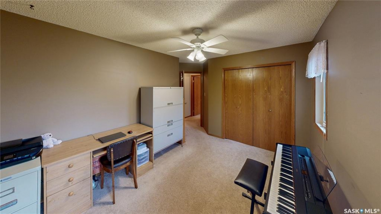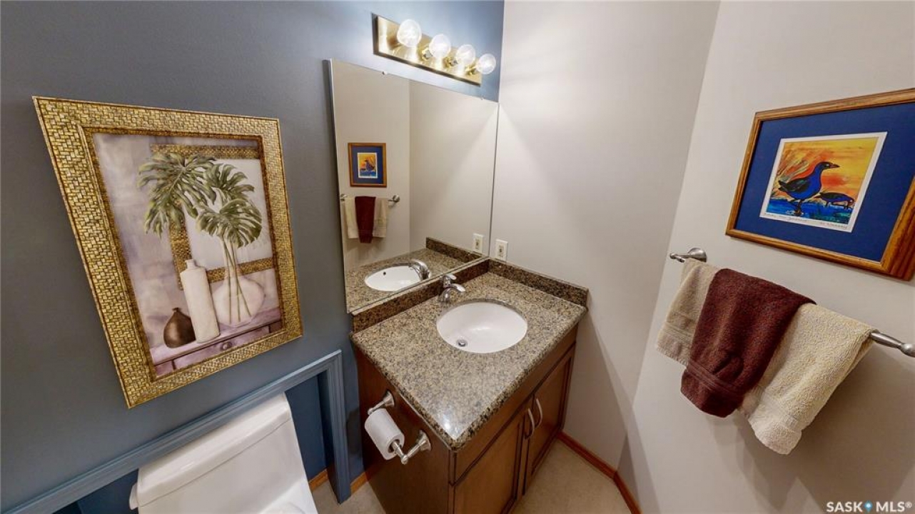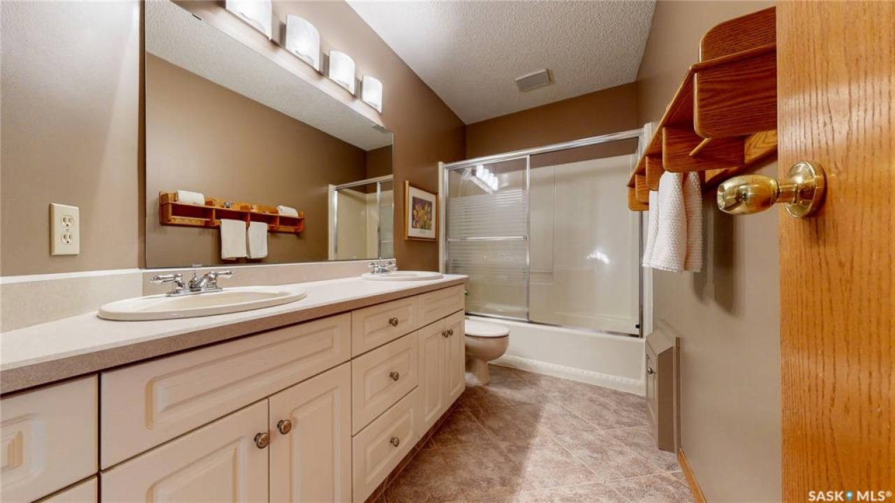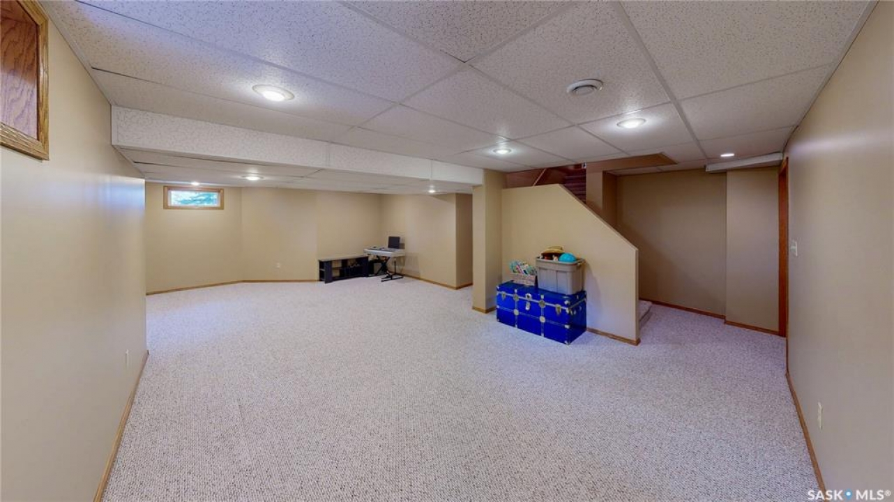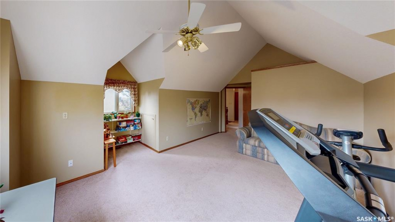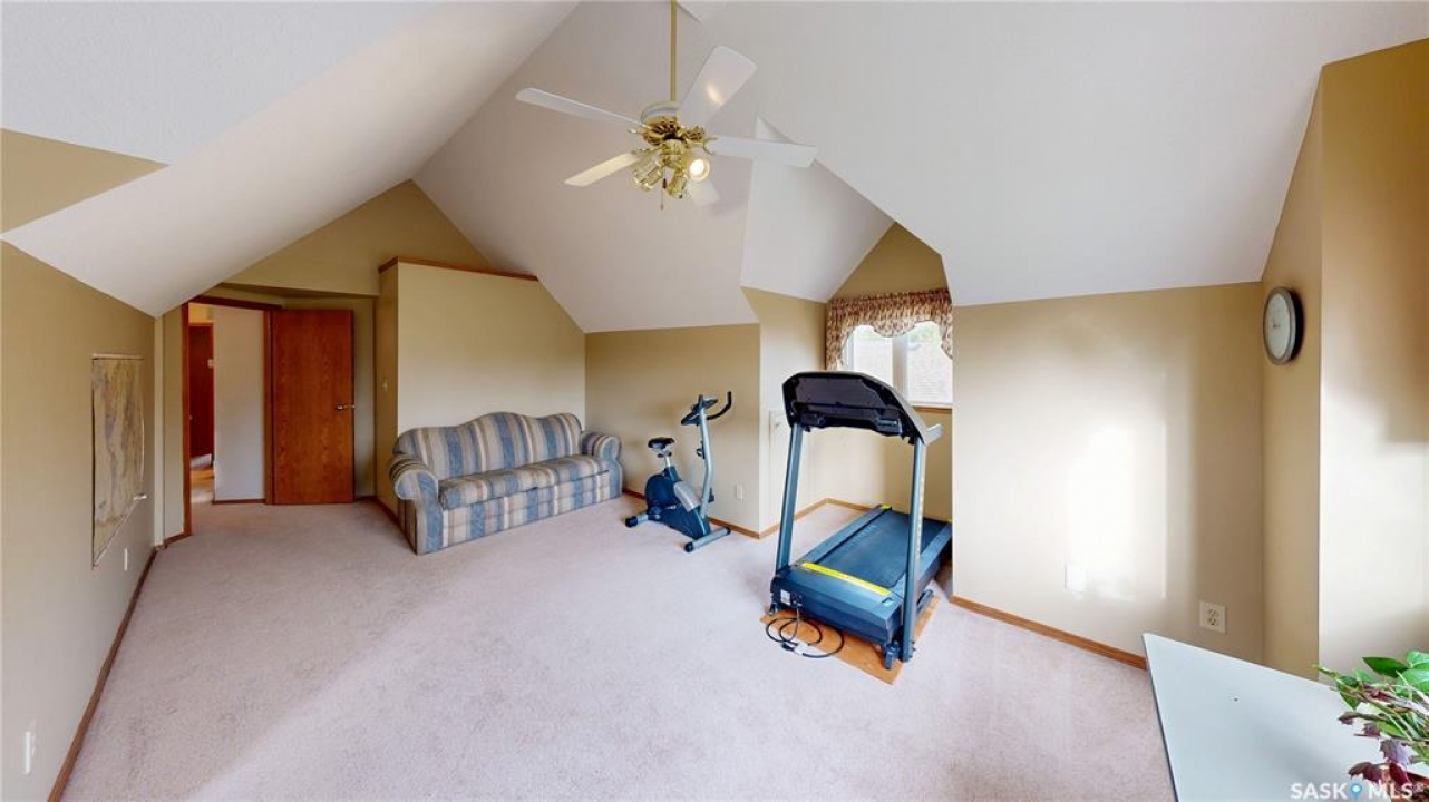 Welcome to 2631 Crocus Drive in the desirable Wood Meadows neighborhood close to WF Ready school and park, St. Marguerite School, and a short drive away from all the shopping amenities Regina's East End has. This original owner, 1991 built, 2588 square foot, 5 bedroom, 4 bathroom, 2 story house sits on a massive 8840 sqft irregular lot backing a walking path. The front yard has a lawn, pine tree, greenery and the double concrete driveway that leads to the 24'x24' double attached, insulated garage and covered front porch. There are 18 solar panels on the roof! The backyard has an endless lawn, trees and shrubs, a patio with an included pergola, a garden, a fenced area and a shed! You enter this home into the foyer that has a coat closet. Next is the family room. Walking through french doors you enter into the large dining room that is surrounded by large windows that overlook the beautiful green space. The updated kitchen is next with a window overlooking the back yard, cappuccino maple cabinets, granite counter tops and the included fridge, stove, microwave hood fan and built-in dishwasher are all included. Next is the living room with carpet flooring, a bay window, and a beautiful electric fireplace. The main floor is finished off with a 2pc bathroom, the door to the garage and a laundry room with a sink and cabinetry. Upstairs are 2 good sized bedrooms with ample closet space, the main 4pc bathroom with double sinks, another bedroom, and then the huge bonus room. The 2nd floor is completed with a large primary bedroom with a walk-in closet as well as a 4pc ensuite bathroom featuring a jet tub. The finished basement starts out with a large rec room, another large bedroom with a walk in closet and is finished off with a 3pc bathroom and the utility room that has 2 high efficiency furnaces (2015), the owned gas water heater (2024) and brand new water softener (2025). This house has also received updated windows throughout, and has central air conditioning!