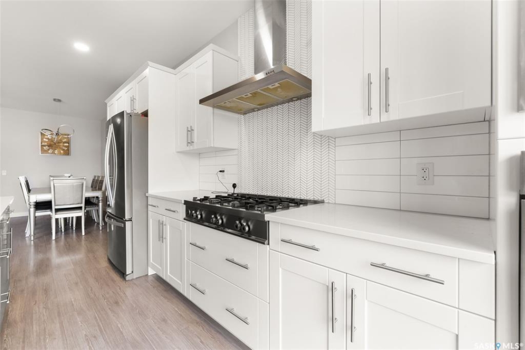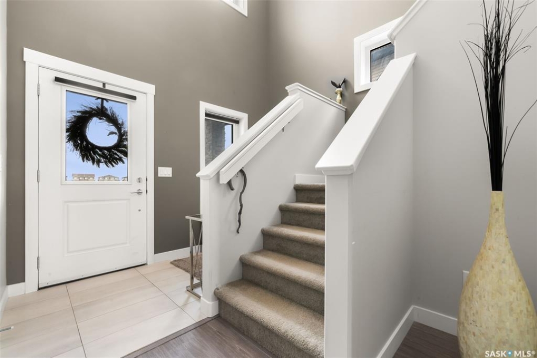 Welcome to this stunning 2031 sqft, two-story custom-built home by Glenrose, situated on a quiet crescent and backing directly onto serene green space. Constructed in 2018 on piles for superior stability, this "Grayson" model boasts exceptional features including a triple-car garage, triple-pane windows, and an open web floor truss system. You are greeted by a grand two-storey foyer that leads into a spectacular open-concept area, where the living room and dining room are flooded with natural light from ample windows and feature an impressive 18-foot ceiling. The stunning kitchen is an entertainer's dream, centered around a large island with quartz countertops, a tile backsplash, and high-end appliances including a 36" gas cooktop, built-in oven and microwave, dishwasher, and refrigerator. Patio doors off the kitchen provide a beautiful, uninterrupted view of the environmental reserve. Step outside to a low-maintenance, professionally landscaped backyard complete with a hot tub and a generous composite deck, perfect for relaxation and hosting guests. Practicality is ensured with a main-floor mudroom featuring a convenient laundry, discreetly closed off by a sliding barn door. Upstairs, discover a well-appointed bonus room, a luxurious master suite with a walk-in closet and a large ensuite, two additional spacious bedrooms, and a 4-piece bathroom—all bathrooms feature elegant quartz countertops. The massive triple-car garage offers abundant space for vehicles and a workshop. The fully ready-to-develop basement presents a fantastic opportunity to easily add even more living space to suit your needs. Don't miss your chance to own this impeccable home—call your agent to schedule a private tour today.