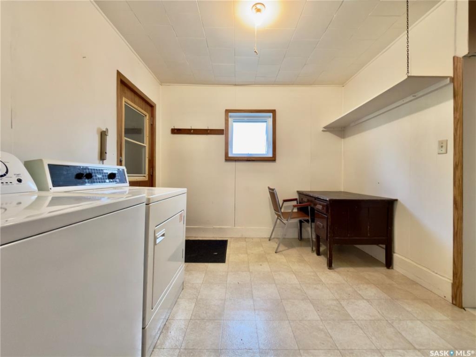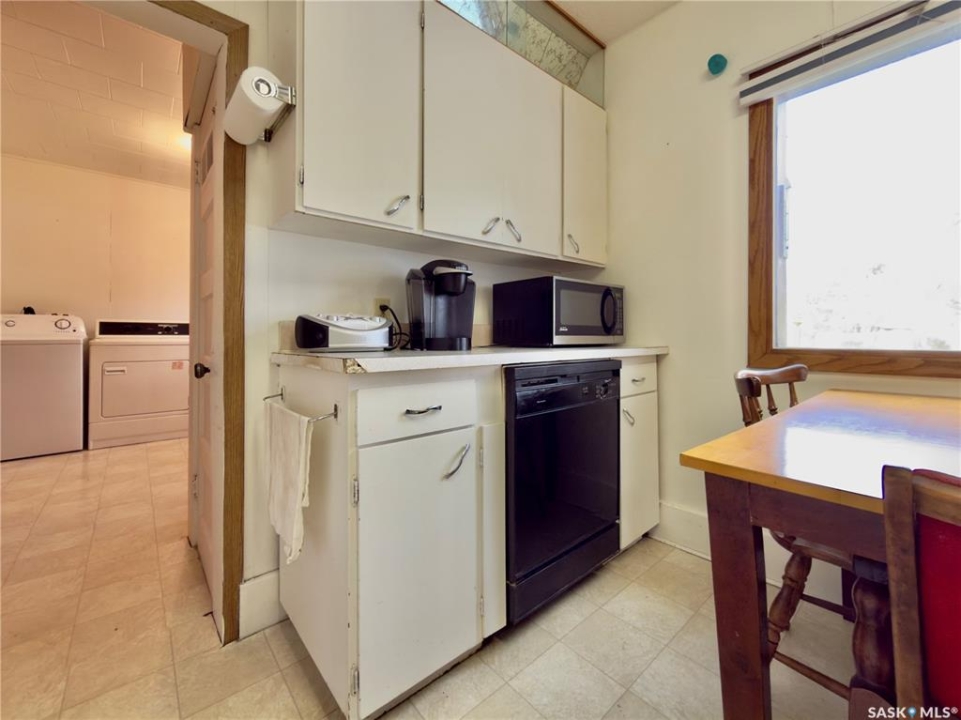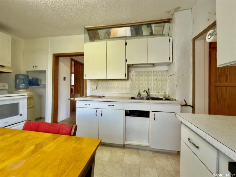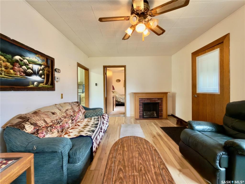 This charming home in the quiet community of Margo offers an affordable, move-in-ready opportunity for anyone seeking small-town living with room to breathe. The 966 sq ft bungalow sits on a spacious 0.29-acre lot with mature trees, garden space, and a 17x23 attached garage, perfect for parking, storage, or a small workshop. The exterior is finished in low-maintenance vinyl siding with a durable metal roof for years of easy upkeep. Inside, the home features a bright and practical layout with two comfortable bedrooms, a large kitchen/dining area with plenty of cabinet space, and an inviting living room ideal for relaxing or entertaining. The main floor also includes a full bathroom and a convenient laundry/mudroom area with direct access to the yard and garage. The property is connected to town water and sewer and includes all major appliances (no warranties on appliances). Whether you're downsizing, buying your first home, or looking for a peaceful getaway, this well-kept home is ready for you to move in and make it your own. Affordable, efficient, and full of small-town charm, come see what life in Margo has to offer.