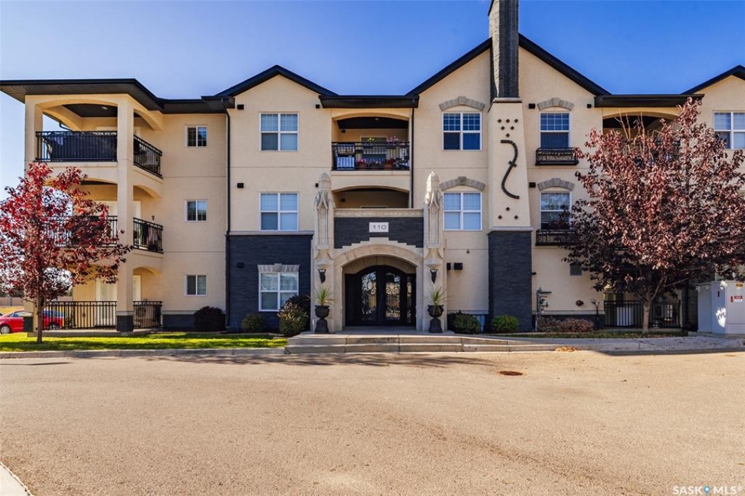 Welcome to Unit 306 at 110 Phelps Way — a beautiful, sunny top-floor corner condo in the highly desirable Astoria complex. This stunning two-bedroom, two-bathroom home has been impeccably maintained and offers both style and comfort with its high-end finishes and thoughtful floor plan. Step inside to a spacious, open-concept living area filled with natural light. The large living room and dining space flow seamlessly into a modern kitchen featuring an eat-up island, quartz countertops, glass tile backsplash, stainless steel appliances, and a window over the sink — a rare touch in an apartment style condo. From the living room, step out onto your beautiful south-facing balcony, perfect for morning coffee or evening relaxation. Both bedrooms are generous in size, with the primary suite offering a private three-piece ensuite complete with a steam shower. A second four-piece bathroom serves guests or family members with ease. Residents of Astoria enjoy access to a clubhouse with premium amenities, including a lounge, fitness area, and indoor swimming pool — ideal for year-round enjoyment. There's also ample visitor parking for your guests. This unit includes two convenient electrified parking spaces and is perfectly located close to Circle Drive, shopping, restaurants, and other fantastic amenities. If you've been looking for a bright, modern condo in a sought-after community, Unit 306 at Astoria offers it all — comfort, convenience, and a touch of luxury.
