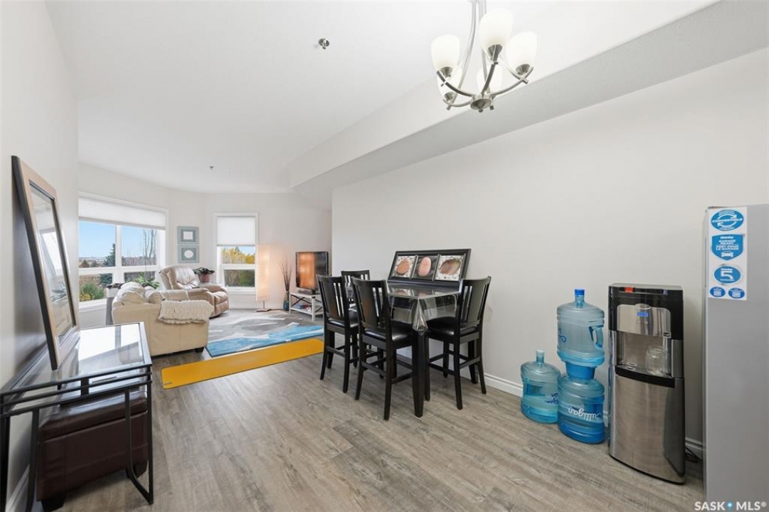 Welcome to 306-227 Pinehouse Drive!This bright, south-facing condo features a spacious entry, private laundry room, and an open-concept layout with fir tree and skyline views. The modern kitchen includes granite countertops, and a sit up island. Enjoy sunlit living spaces, a primary suite with walk-in closet and ensuite, a second bedroom, and a versatile den for a home office. Relax on your private balcony, and enjoy underground parking, storage, and great building amenities like in-floor heating, a recreation center, garden beds, and a gazebo. Located in Lawson Heights near the river, Meewasin Trail, shopping, and more. Move-in ready — book your showing today!
