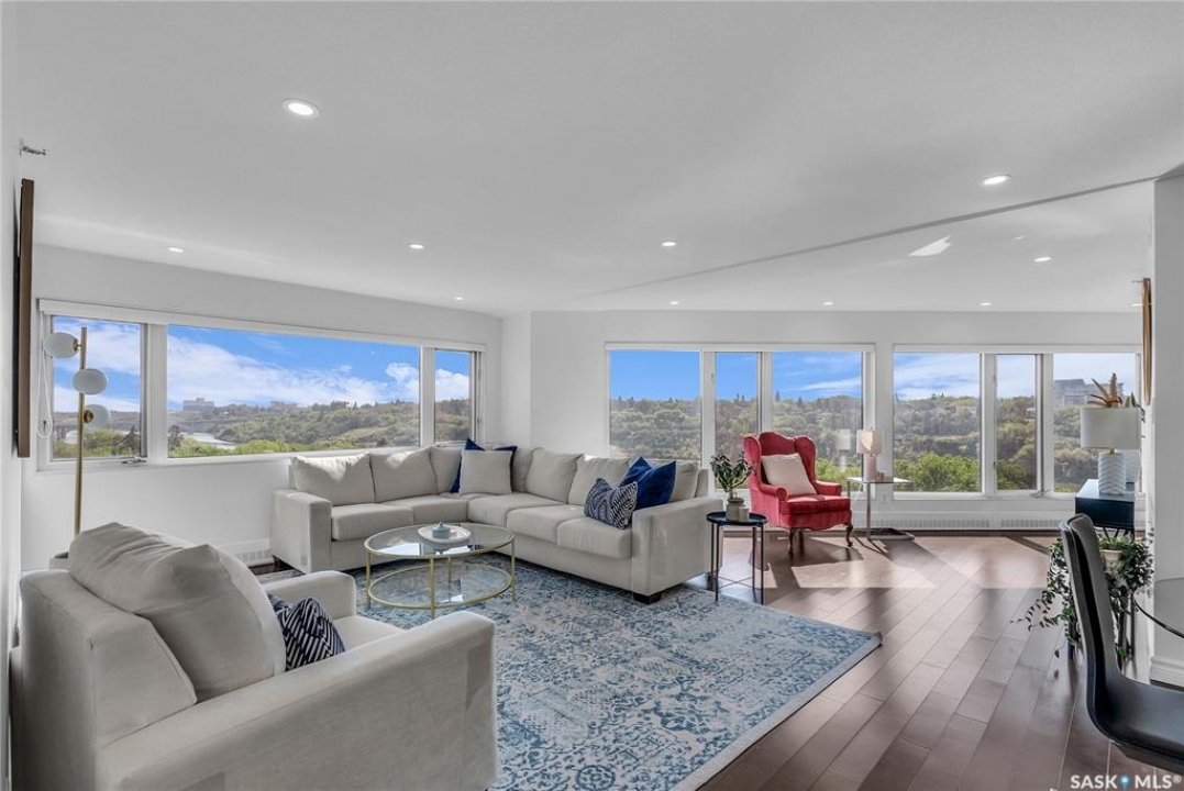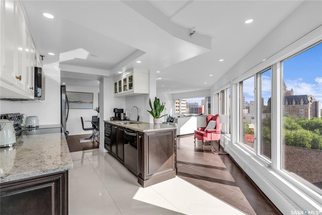 The Renaissance – Iconic Views & Urban Living Welcome to The Renaissance, where location, lifestyle, and luxury come together. This 2-bedroom, 2bathroom condo has been extensively renovated and is completely move-in ready—offering not just a home, but a statement. From the moment you step inside, the unmatched view steals the show—looking directly onto the historic Bessborough Hotel and beyond. Whether it's sunrise coffees or sunset wine, your private space frames one of the best views in Saskatoon. Located just steps from the Saskatchewan River, walking and running trails, and a short stroll to Broadway, you're never far from local gems like Poached, Shelter, and Cafe Del Rey. The best of Saskatoon's dining, coffee, and culture is truly at your doorstep. And when you're not out enjoying the neighbourhood? You'll have access to top-tier amenities including a full gym, indoor pool, and waterslide—making it easy to relax or recharge without leaving the building.