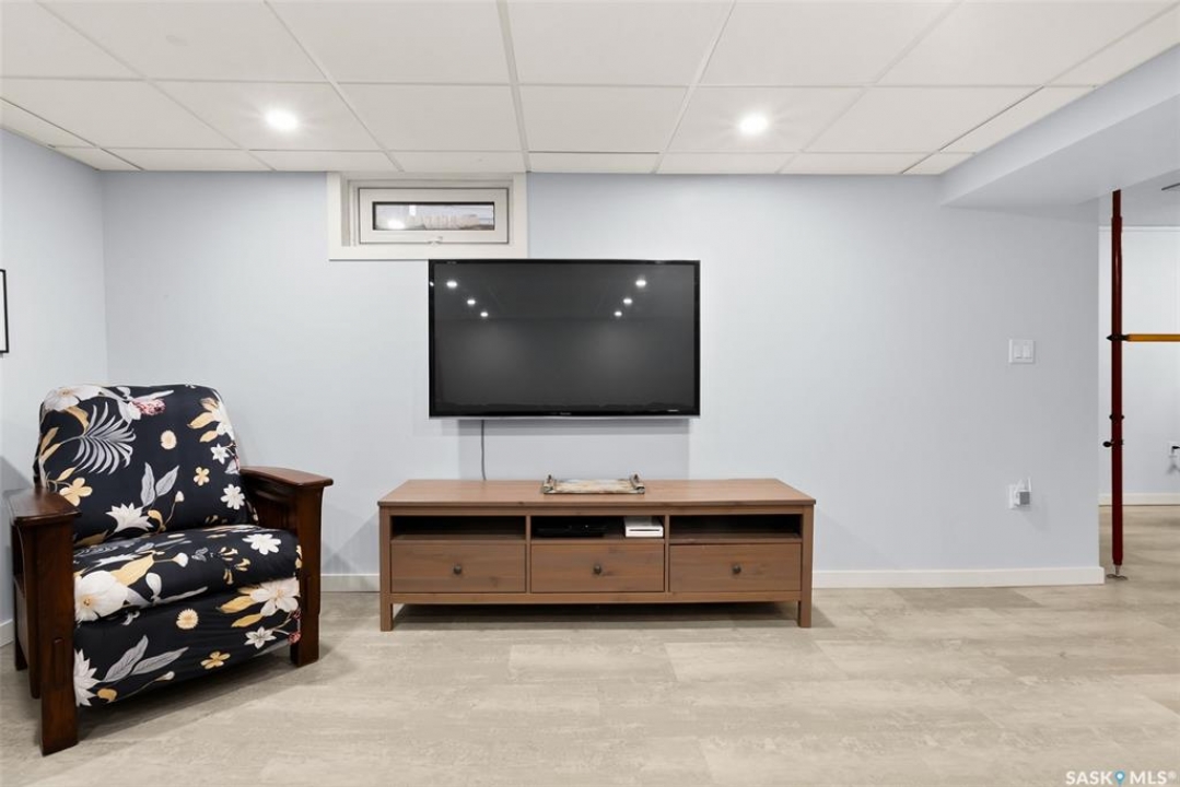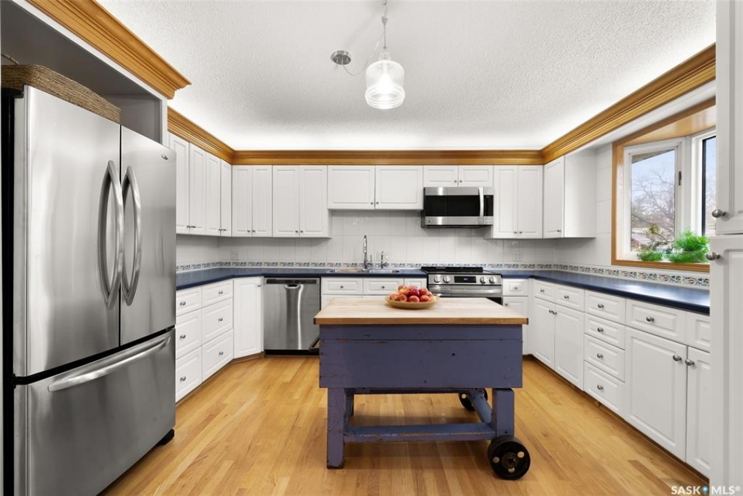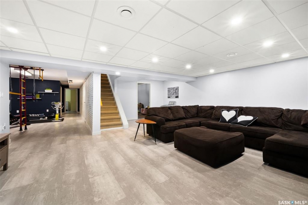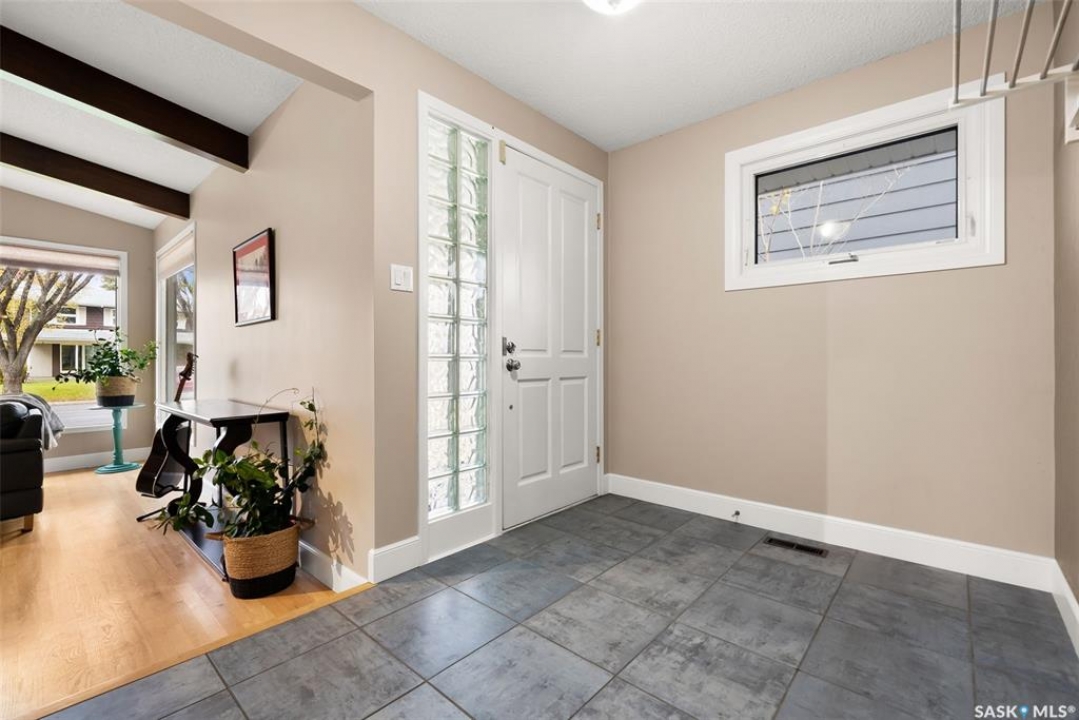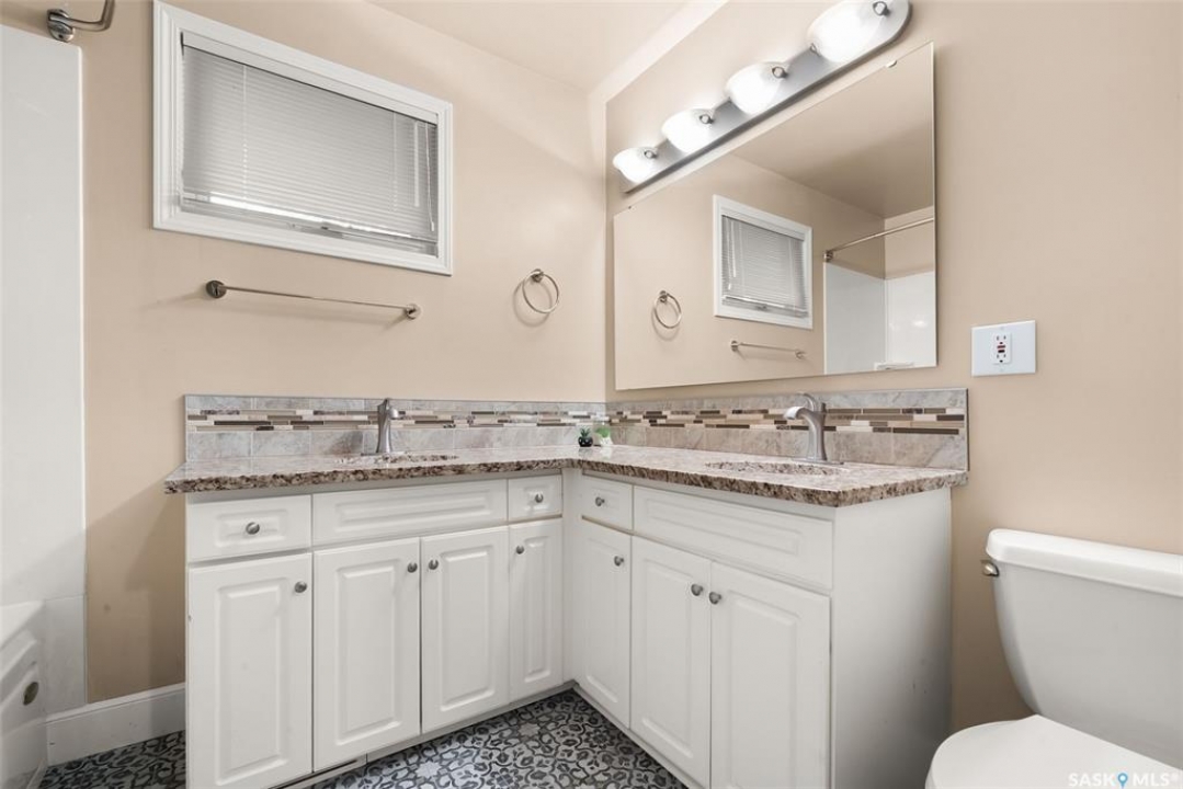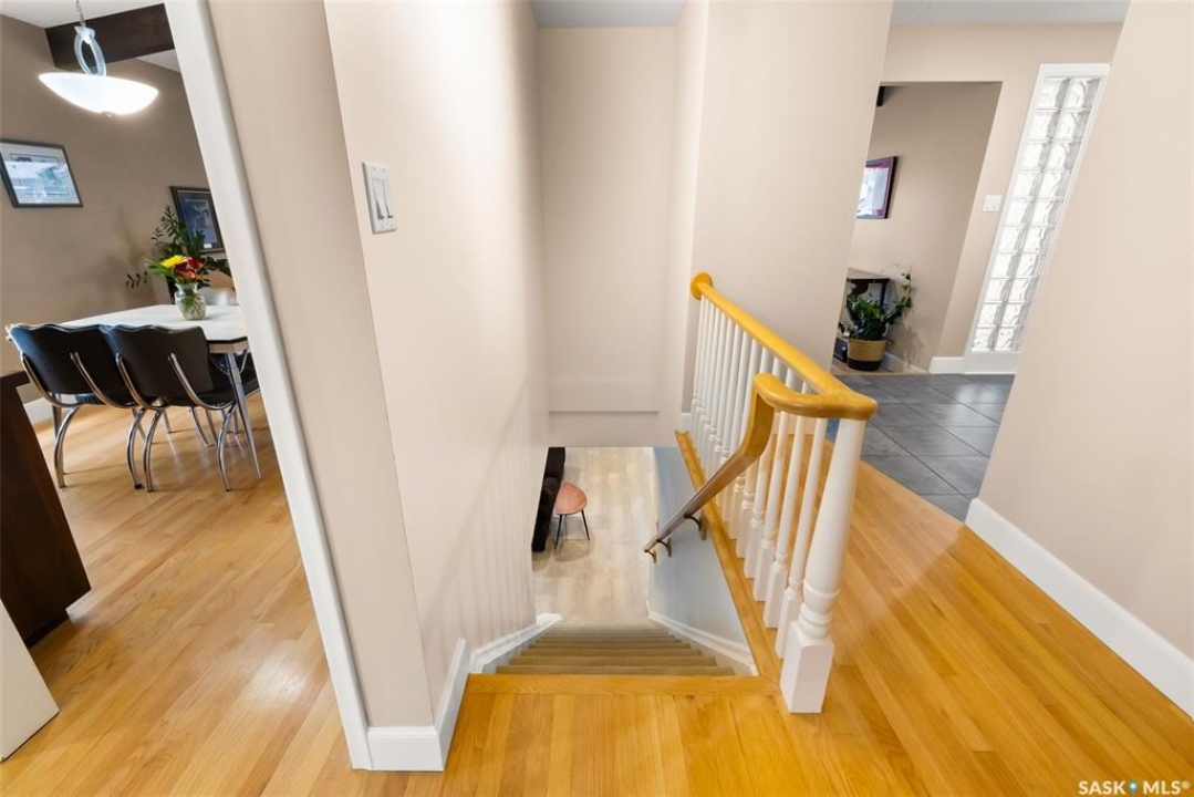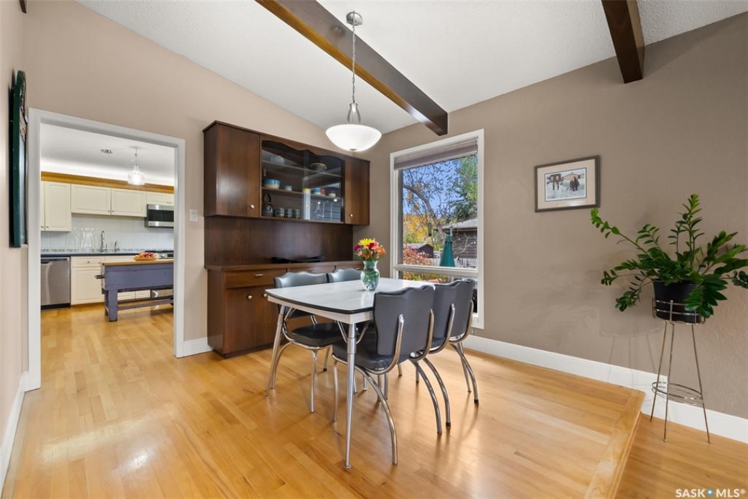 Welcome to 3851 Montague Street located in the desirable neighbourhood of Parliament Place, this 1,450 sq. ft. bungalow offers a perfect blend of mid-century charm and modern updates. Built in 1967, this spacious home features 4 bedrooms and 3 bathrooms. A large, welcoming front entryway leads into the stunning family room, showcasing vaulted ceilings, a cozy gas fireplace with Tyndall stone surround, and beautiful original hardwood flooring. A step up takes you to the dining room with a built-in china cabinet, ideal for family gatherings. The bright kitchen features white cabinetry, stainless steel appliances, and convenient access to both the side yard and the double attached garage. Down the hall, you'll find two bedrooms, a large main bathroom with double sinks, and a primary suite with its own private 2-piece bath. The lower level is fully developed, offering a spacious family room, gym area, updated 3-piece bathroom with tiled shower, fourth bedroom, den, and a large utility/laundry/storage room. Outside, enjoy a private and beautifully landscaped backyard with mature trees, an ideal space for relaxing or entertaining. The exterior has been updated with new vinyl siding that complements the original stonework, and the 20x20 insulated garage adds function and value. Recent updates include new vinyl flooring throughout the basement, some PVC windows and shingles.