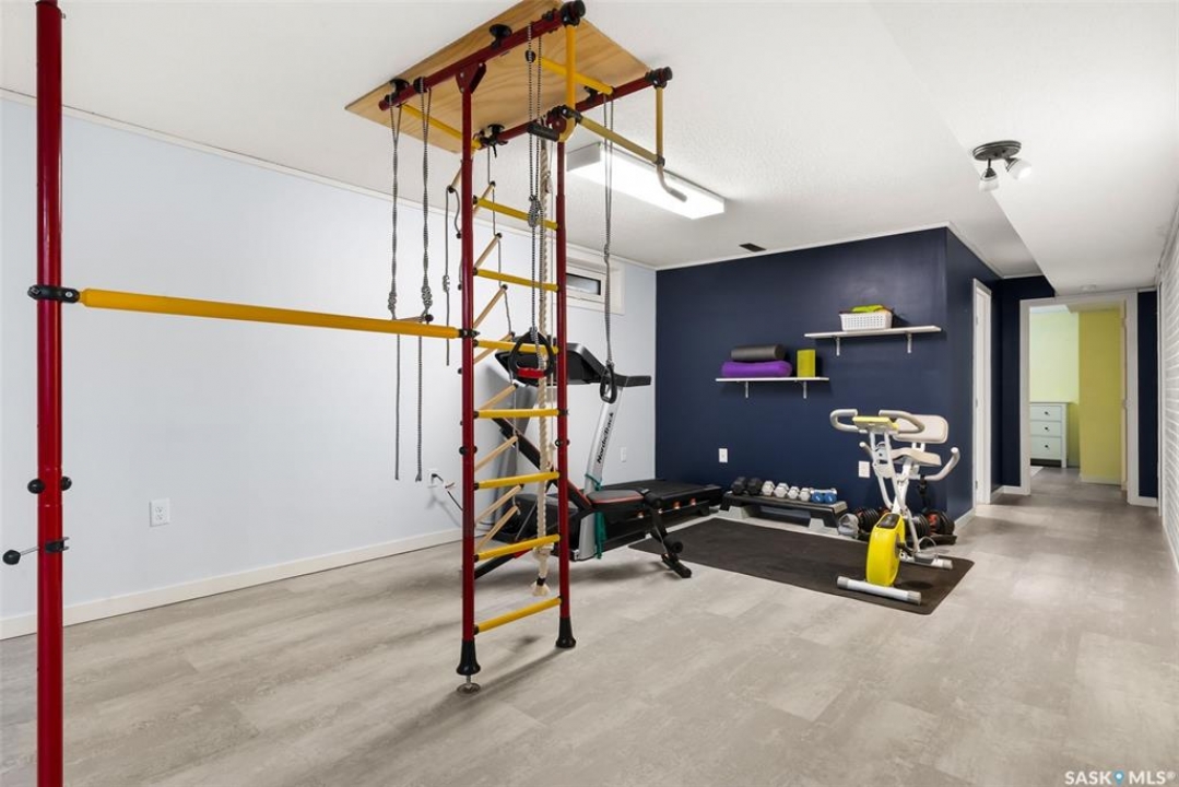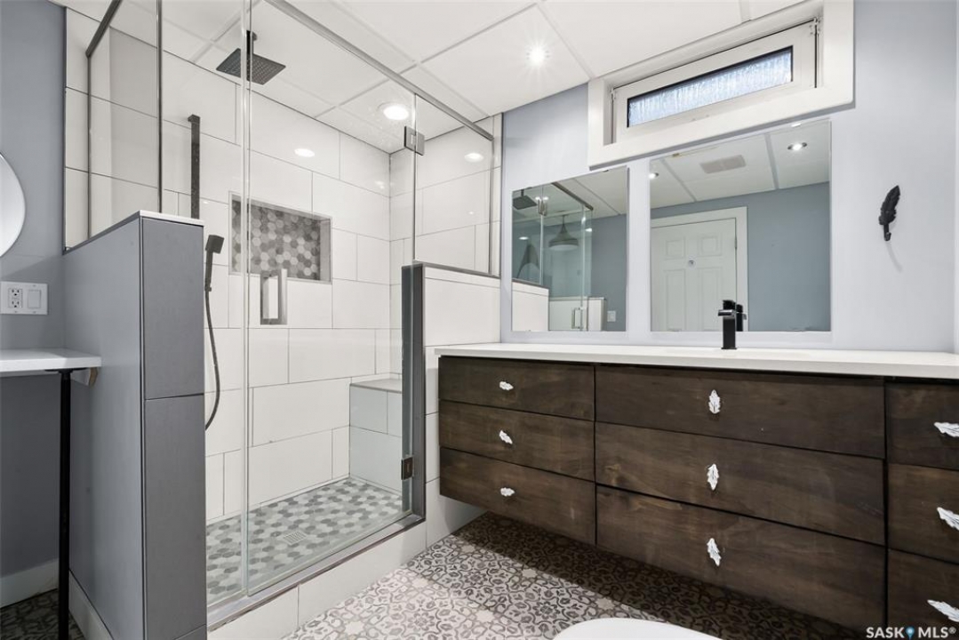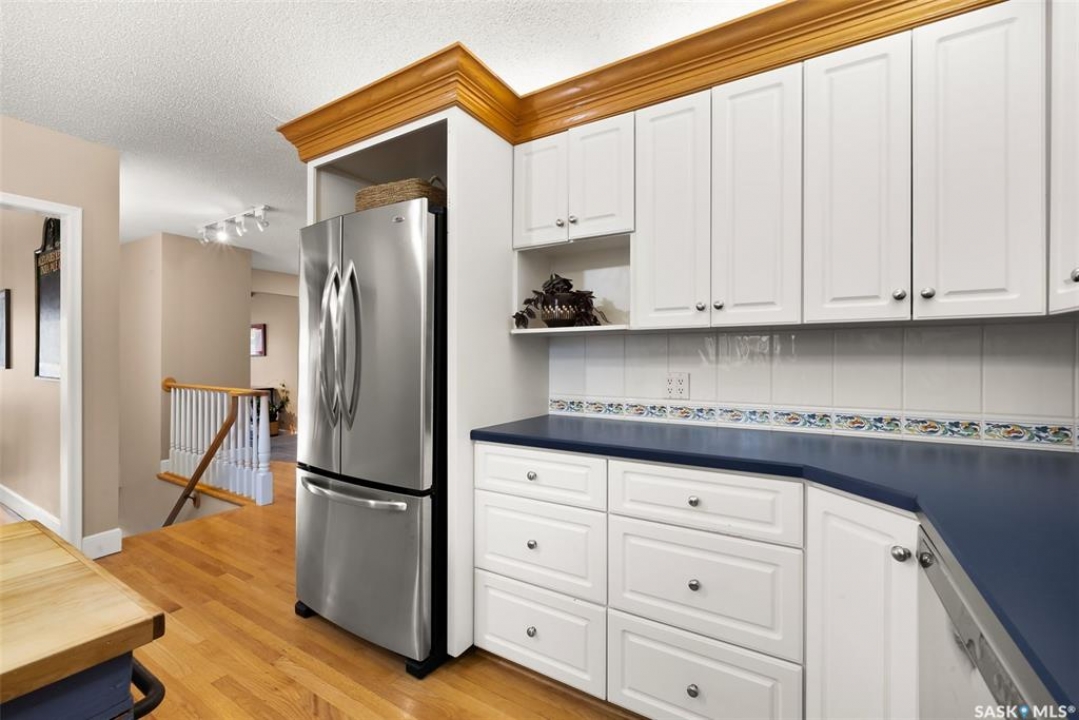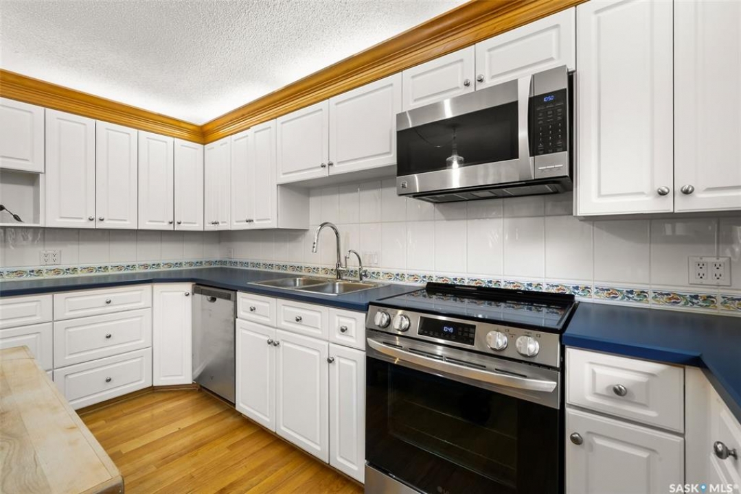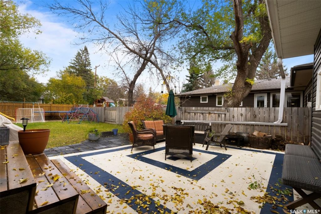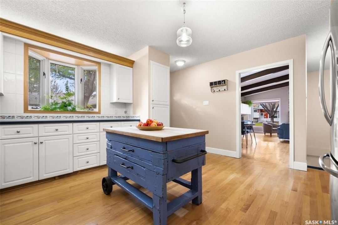 Welcome to 3851 Montague Street located in the desirable neighbourhood of Parliament Place, this 1,450 sq. ft. bungalow offers a perfect blend of mid-century charm and modern updates. Built in 1967, this spacious home features 4 bedrooms and 3 bathrooms. A large, welcoming front entryway leads into the stunning family room, showcasing vaulted ceilings, a cozy gas fireplace with Tyndall stone surround, and beautiful original hardwood flooring. A step up takes you to the dining room with a built-in china cabinet, ideal for family gatherings. The bright kitchen features white cabinetry, stainless steel appliances, and convenient access to both the side yard and the double attached garage. Down the hall, you'll find two bedrooms, a large main bathroom with double sinks, and a primary suite with its own private 2-piece bath. The lower level is fully developed, offering a spacious family room, gym area, updated 3-piece bathroom with tiled shower, fourth bedroom, den, and a large utility/laundry/storage room. Outside, enjoy a private and beautifully landscaped backyard with mature trees, an ideal space for relaxing or entertaining. The exterior has been updated with new vinyl siding that complements the original stonework, and the 20x20 insulated garage adds function and value. Recent updates include new vinyl flooring throughout the basement, some PVC windows and shingles.