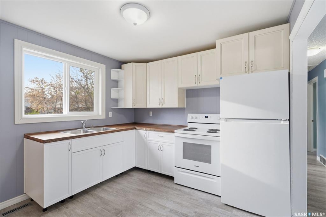 Welcome to 109 Grant Street, a beautifully updated bungalow in the family friendly community of Forest Grove — one of Saskatoon's most sought-after neighbourhoods. This cozy and inviting home is ideal for first-time buyers or anyone looking to downsize without compromise. Inside, you'll find three comfortable bedrooms on the main floor, a fully modernized four-piece bathroom, and a bright, refreshed kitchen, dining, and living area. The basement offers added versatility with a spacious family room, an additional bedroom, and a spacious laundry area. The large backyard provides the perfect outdoor space to relax, garden, or host family and friends. Throughout the home, thoughtful updates give it a fresh, modern feel — including new vinyl plank flooring, updated kitchen cabinets and countertops, a renovated bathroom, new windows, interior and exterior doors, new shingles (September 2025), and composite front and back decks. Located within walking distance to schools, parks, and everyday amenities, this home offers both comfort and day-to-day convenience. With limited inventory of single-family homes on Saskatoon's east side in this price range, this is a rare opportunity to own an updated property — without paying condo fees or sacrificing yard space. Call your Realtor today to book a showing. This is one opportunity you won't want to miss!