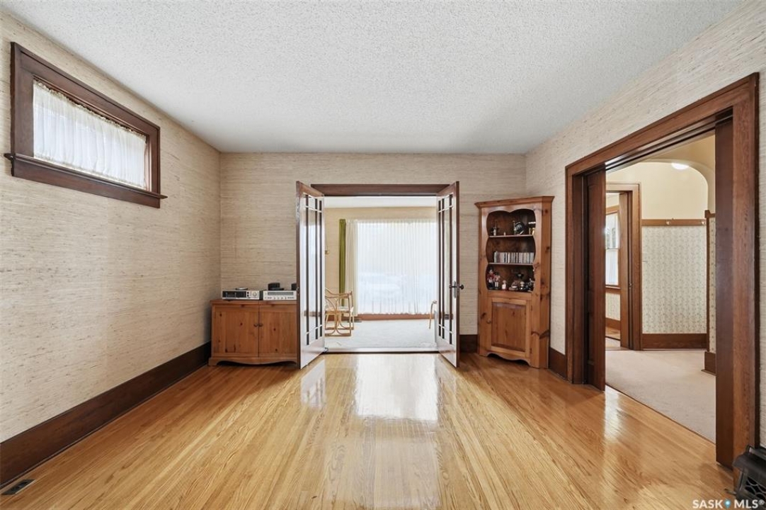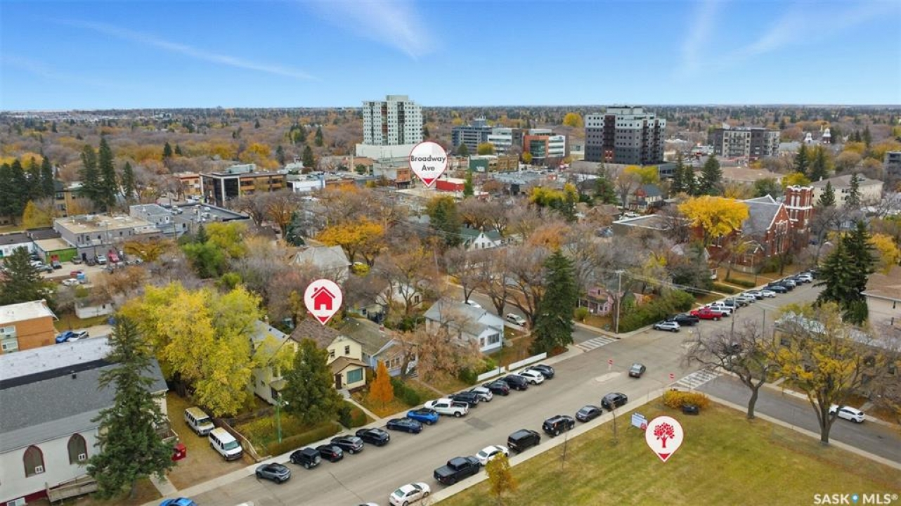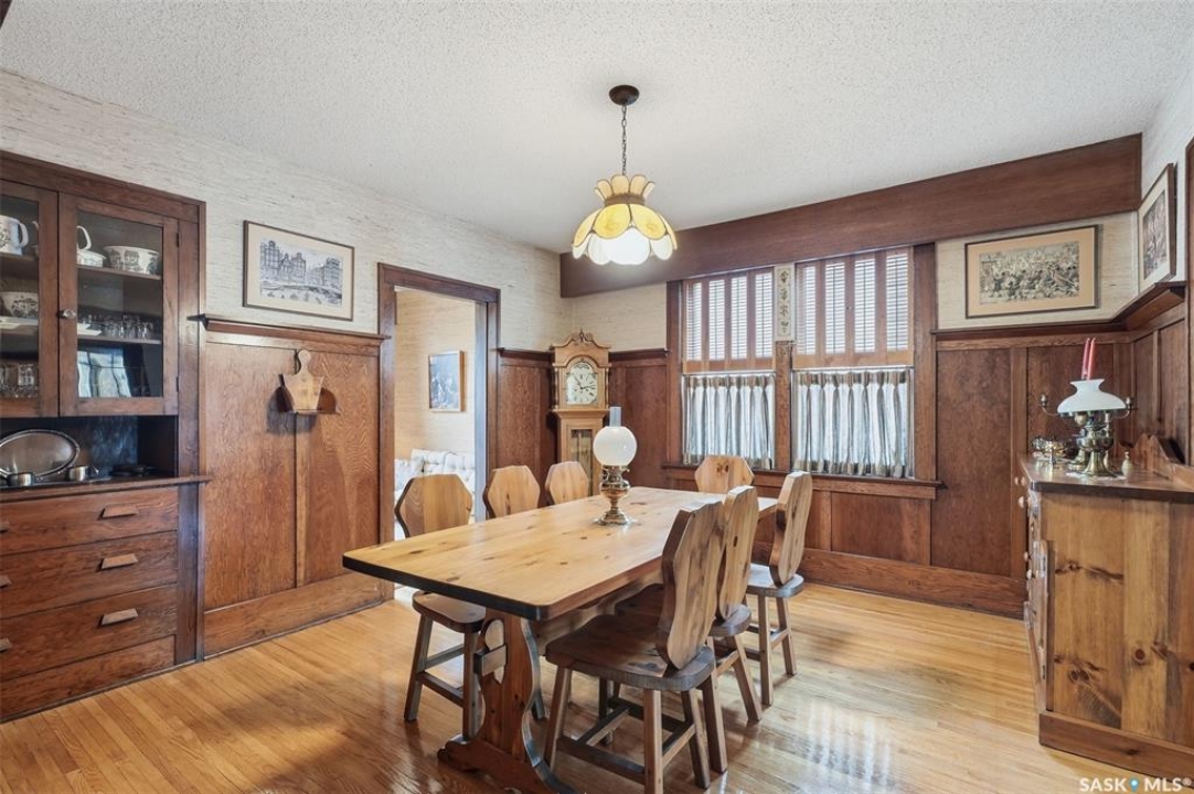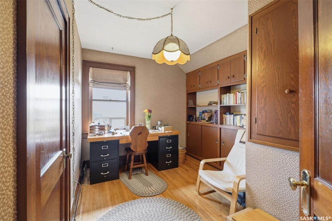 Heritage home lovers - this one is for you! Built in 1923 and lovingly cared for, this 2 storey in the heart of Nutana has all the original charm and character intact, with gorgeous hardwood floors, wood trim, tons of built-ins and french doors! The living room opens to a separate den with an oversize window with views of the front yard and the park across the street. Host family and friends in the beautiful dining room which features wood wainscoting and a built-in display cabinet, while the cozy family room offers a great place to read or relax by the fire. The kitchen is absolutely charming, with plenty of storage and access to the back porch. Upstairs, you'll find 4 good sized bedrooms, each with lots of character. The primary bedroom has beautiful attached den with built-in bookshelf and access to a private balcony overlooking the backyard. The main bath has been updated and is a great size for your family's needs. The basement features a large workshop, tons of storage, laundry and a 2pc bath with rough-in for a shower. Outside, the charm continues with cute backyard, single garage and mature landscaping. Situated just steps to Broadway's restaurants, cafes and shops, as well as the river and Rotary Park, this home is in a prime location you will love! Don't wait on this gorgeous home...call your favourite realtor to see it for yourself!