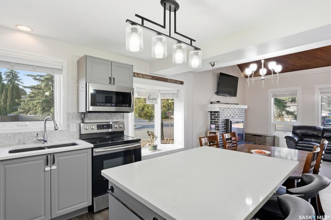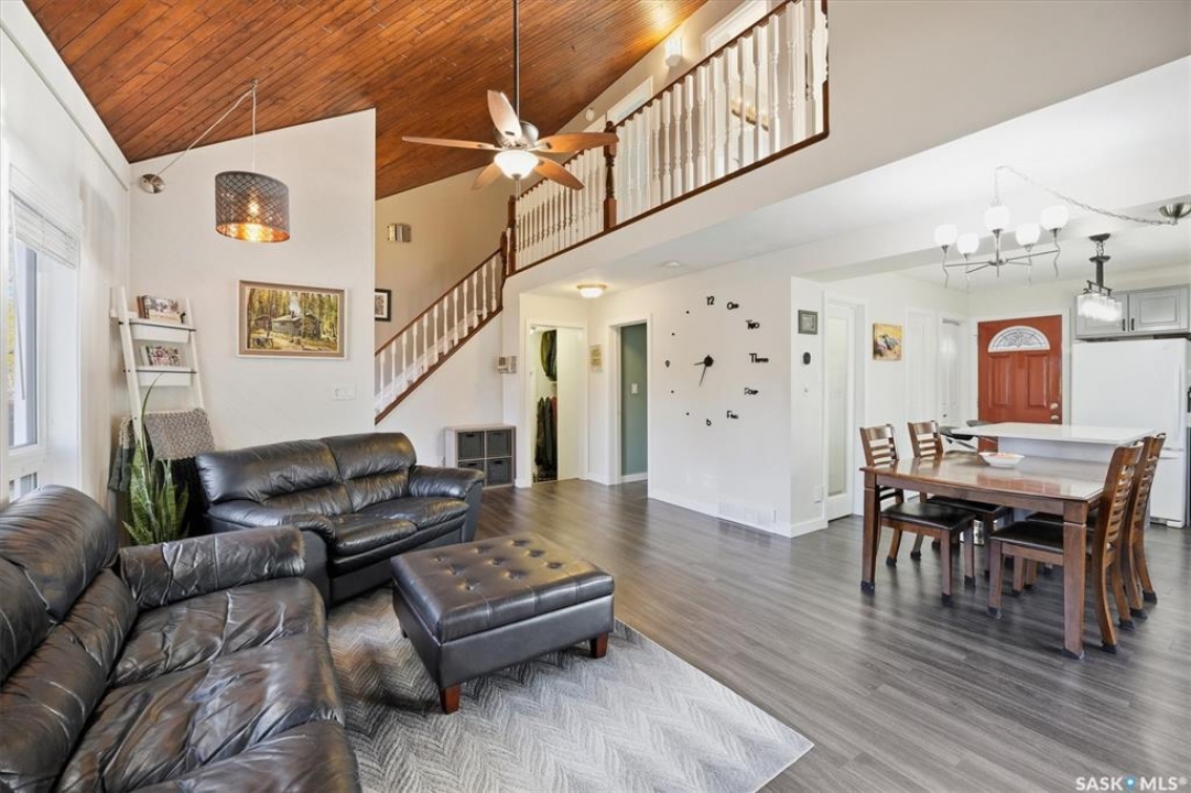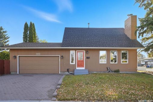 Welcome to 583 Tobin Crescent. A great location for this property! This home is within close proximity to two elementary schools, parks and the river! If location matters to you then you won't want to pass up on this property. This unique two story has a great layout with the main floor boasting a new kitchen that features a island and a pantry which is open to the dining and living room that features vaulted ceilings and a electric fireplace. Also on the main floor is a bedroom and a 3 piece bath. Upstairs has two bedrooms and a 4 piece bath with a walk way that overlooks the living room below. Downstairs you will find a large rec room, 2 piece bath, bedroom and a neat and tidy laundry/utility room. This home has a lot of the large items recently renovated including kitchen cabinets, updated bathrooms, flooring on main, shingles, trim and doors on the main, main door and updated appliances. Also the home has triple pane windows. This home features a huge 22x28 heated double attached garage. If the garage is a important part of your purchase you will love the room that this one has to offer. All this on a large corner lot that is completely fenced, lots of mature trees, raised garden beds, large patio and a covered deck. This home shows well with pride of ownership. Call today to view!