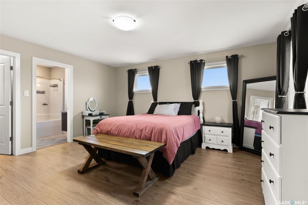 Discover the perfect blend of comfort and function in this spacious 5-bedroom, 3-bathroom family home. Step inside to find a welcoming and open main floor with 9ft ceilings. The sun-filled kitchen features maple cabinetry with stone counters, a stylish backsplash, pot filler, and plenty of drawers and prep space. Down the hall are 2 bedrooms, a 4-piece bathroom and main floor laundry for added convenience. Upstairs, the private and spacious primary suite offers a relaxing escape with a large walk-in closet and 5-piece ensuite with two sinks. The fully finished basement expands your living space with a cozy gas fireplace with custom mantle, perfect for movie nights or family gatherings. Here you will find 2 additional bedrooms ideal for guests or an at-home office. Outside, the yard is completely finished and offers a low maintenance fence, raised garden beds with underground sprinklers, a patio and covered deck. Enjoy the convenience of an attached and heated 24'x 24' garage and Govee permanent lighting that adds a touch of charm year-round. With no back neighbours this is a wonderful opportunity for those seeking space, quality, and privacy, all in one exceptional home.