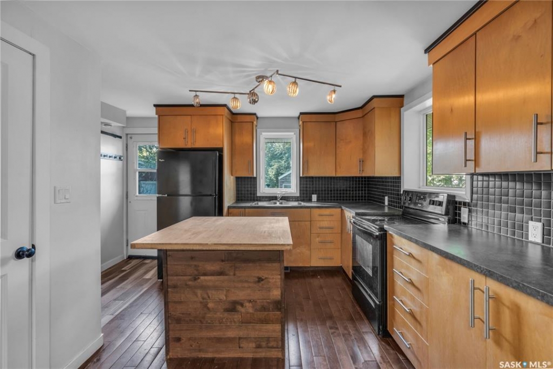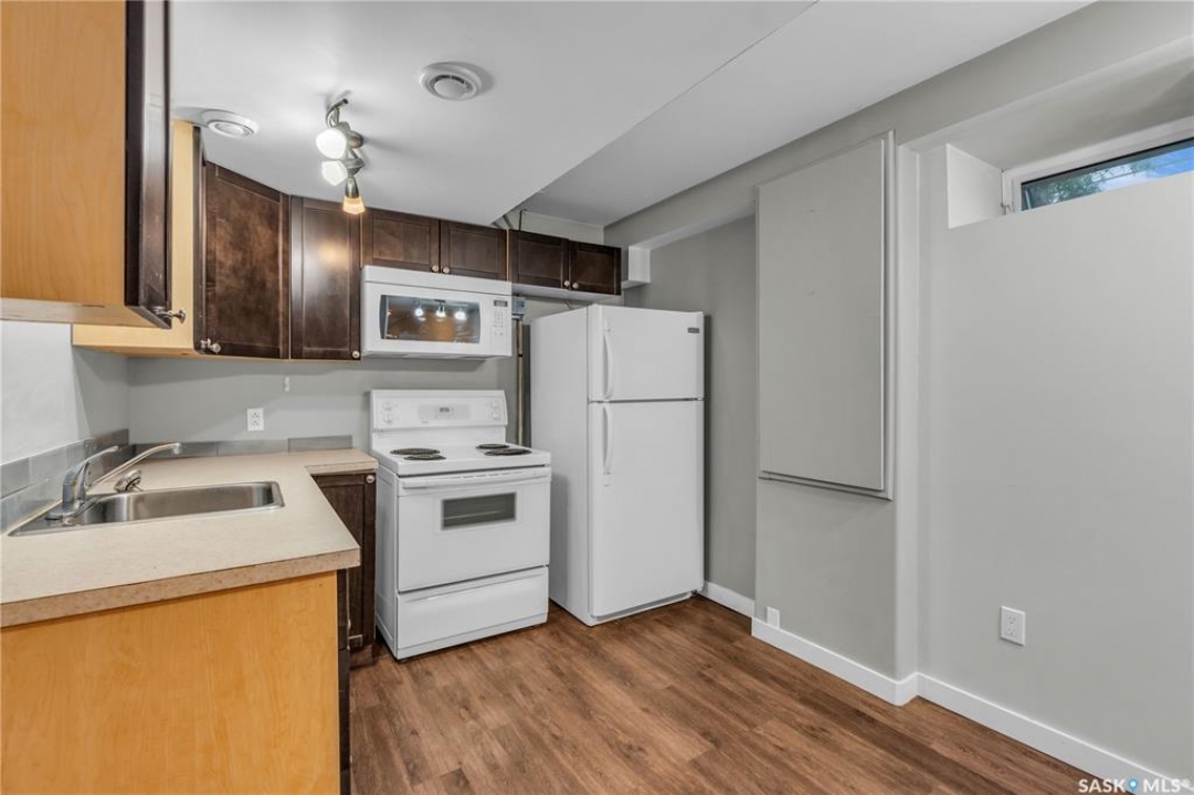 This Buena Vista bungalow would make a great first home or investment property (secondary suite with separate entrance; no basement access from main floor). The open concept main floor features 2 bedrooms, a large 4 piece washroom, an updated kitchen, and separate laundry from the basement. The front bedroom has a bonus loft space that would make a great reading nook, a play space for kids, or could be utilized for additional storage. The kitchen has great counter and cupboard space and overlooks the large deck and enclosed back yard. Off the alley is a designated parking space that could possibly accommodate two vehicles with some brush removal. The basement's secondary suite has a separate entrance and features one bedroom, a 3 piece washroom and has mechanical and laundry separate from the upstairs (no separate meters - utilities all on one account). Off the kitchen is a large laundry space which could also be utilized as a den/office, walk-in pantry, or again... more storage! Shingles are approximately 10 years old. This home is in such a great location; close to Buena Vista School & Park, Downtown Saskatoon, and all the amenities that Broadway and 8th Street have to offer. Ready for you to view today!