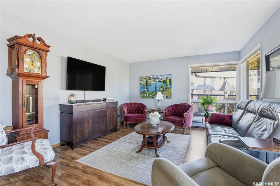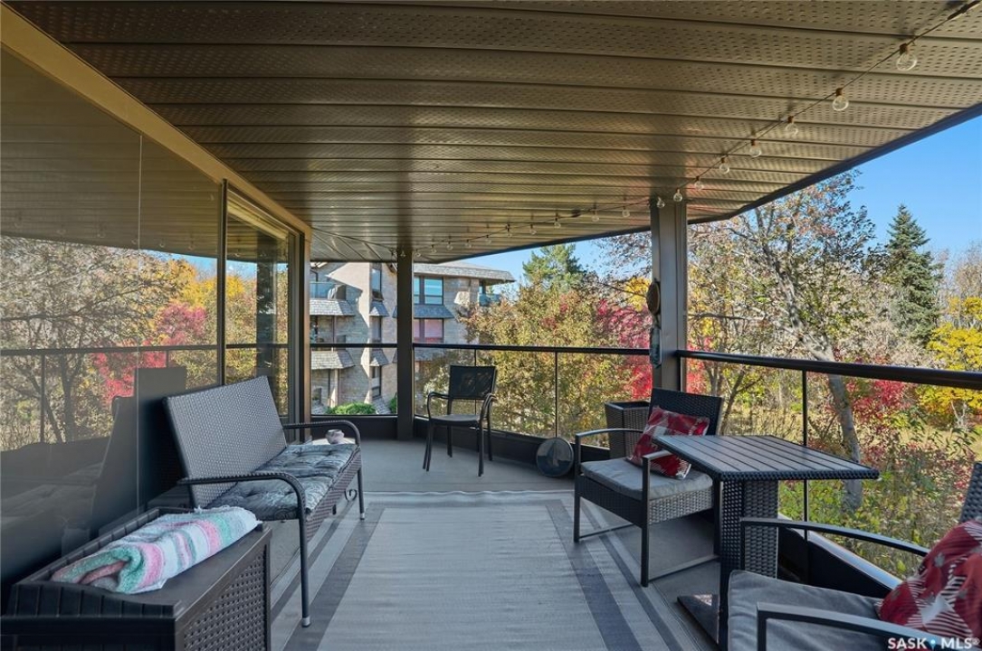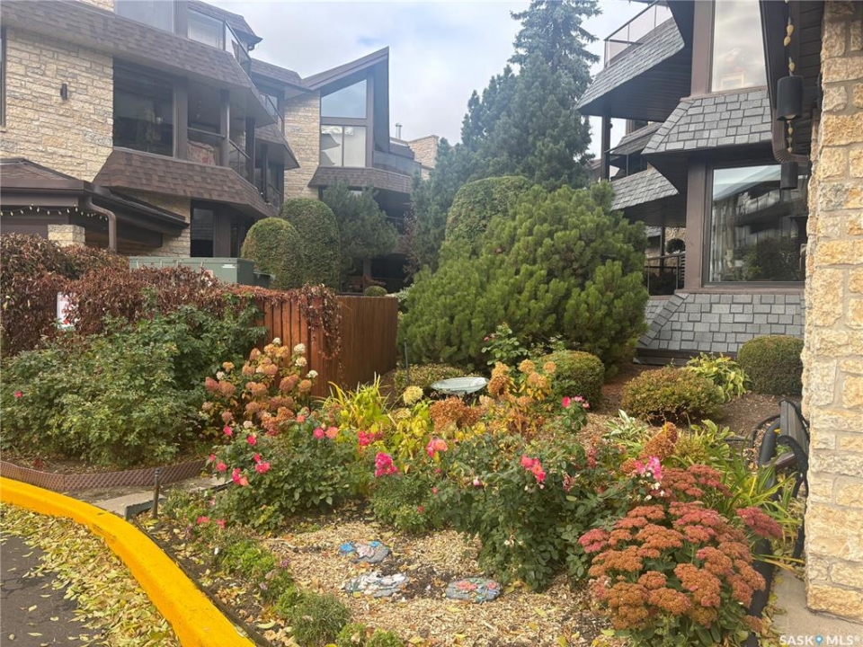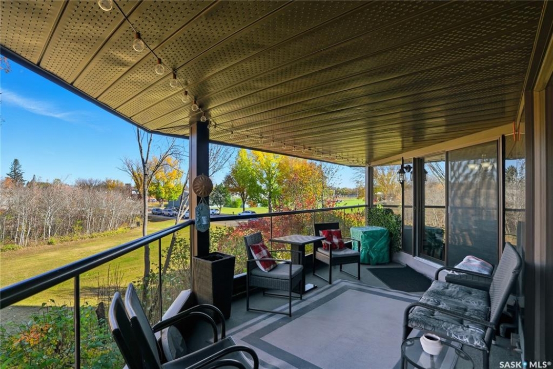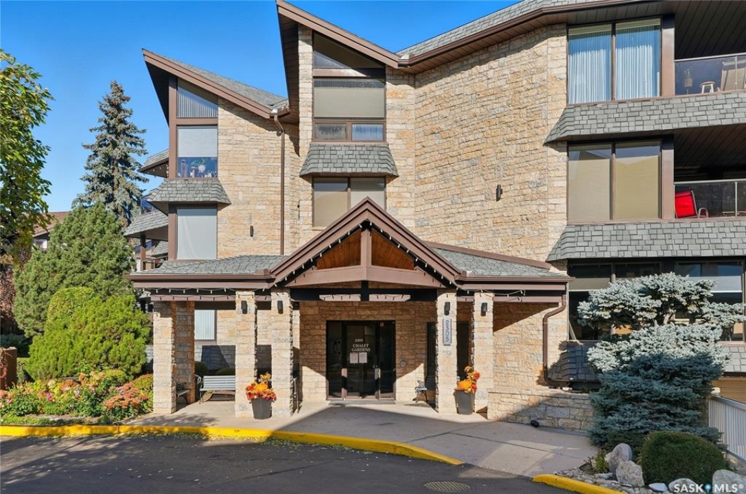 Welcome to Chalet Gardens, an exceptionally maintained and highly sought-after condominium complex located directly across from Market Mall. This immaculate 1,390 sq. ft. corner unit offers a perfect blend of comfort, functionality, and style, featuring two bedrooms plus a den, and an abundance of natural light throughout. From the moment you step inside, you'll appreciate the thoughtful design and meticulous care that has gone into maintaining this home. The kitchen and dining room have a beautiful view of the park and a large wrap around balcony. An abundance of cabinetry, and a large pantry that provides ample storage space. The open-concept layout creates a bright and inviting atmosphere, with large windows that fill the space with natural light. The spacious primary bedroom features , a large walk-in closet, and a four -piece ensuite. The second bedroom and den offer flexibility for guests, hobbies, or an office, allowing the space to adapt to your lifestyle needs. One of the standout features of this home is the covered wrap-around deck, offering an excellent view of the surrounding parks and green spaces. It's an ideal spot to enjoy your morning coffee or unwind at the end of the day, with the added convenience of an outdoor storage room right on the deck. The Chalet Gardens community is known for its well-managed amenities and welcoming atmosphere. The building includes a video intercom system for added security, an amenities room for gatherings, a fully equipped carpenter's workshop in the basement, and underground parking complete with a car wash and storage area. Additional underground parking spaces are available for rent, and residents also enjoy the convenience of free on-site RV parking. Surrounded by beautifully landscaped grounds and a peaceful courtyard, this complex fosters a true sense of community with a variety of social activities available for residents.