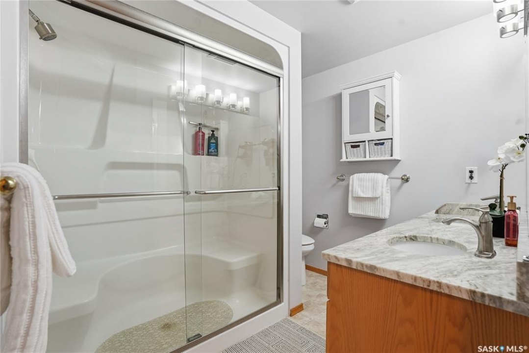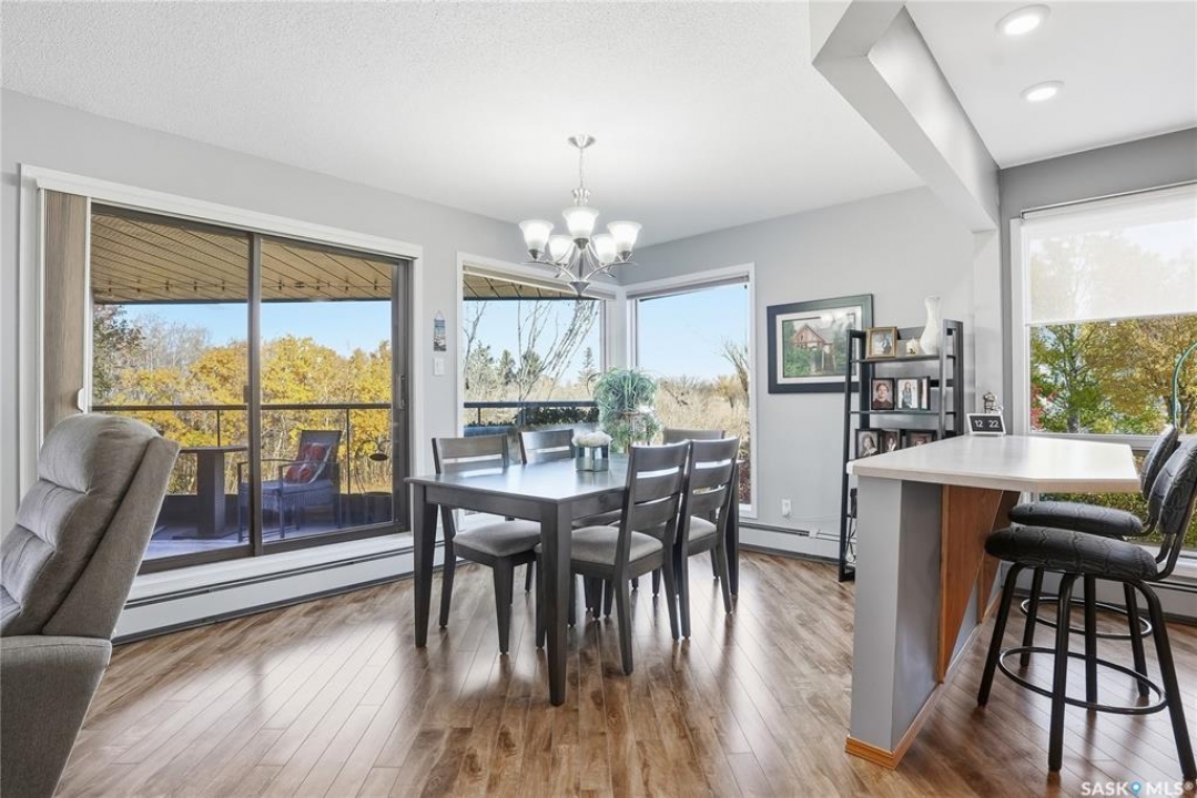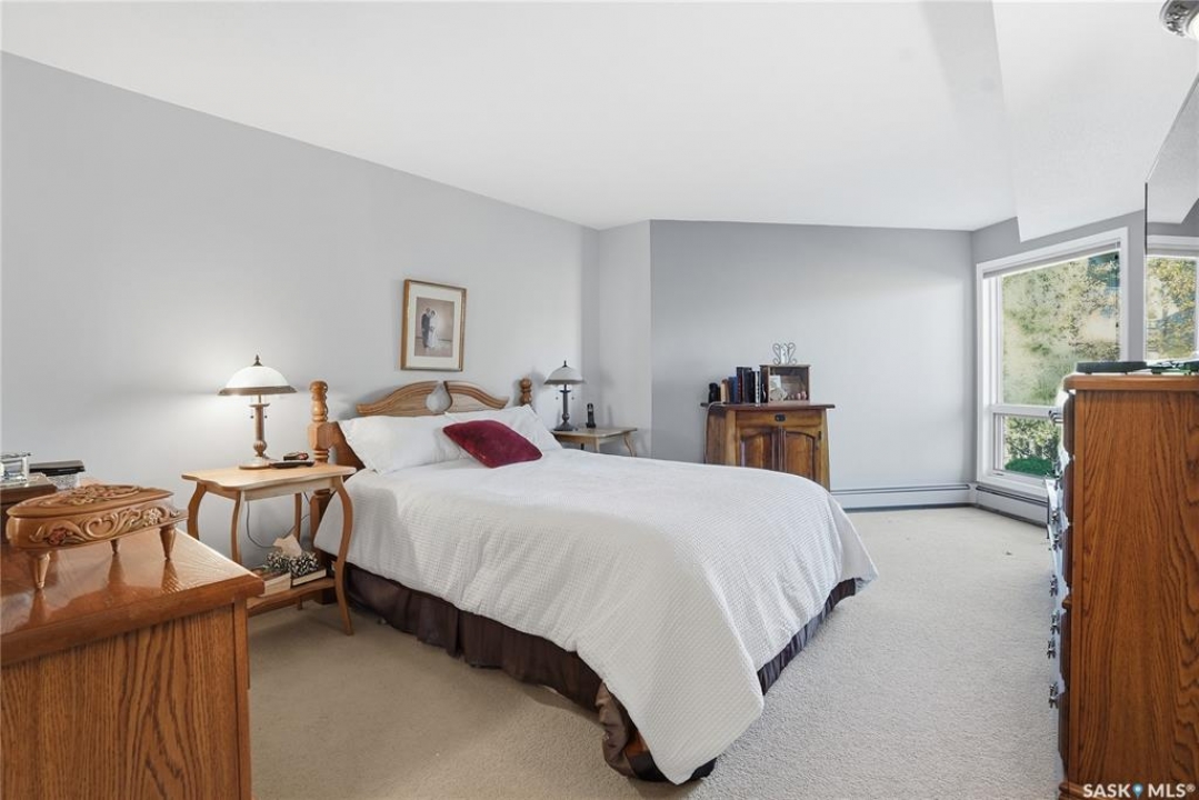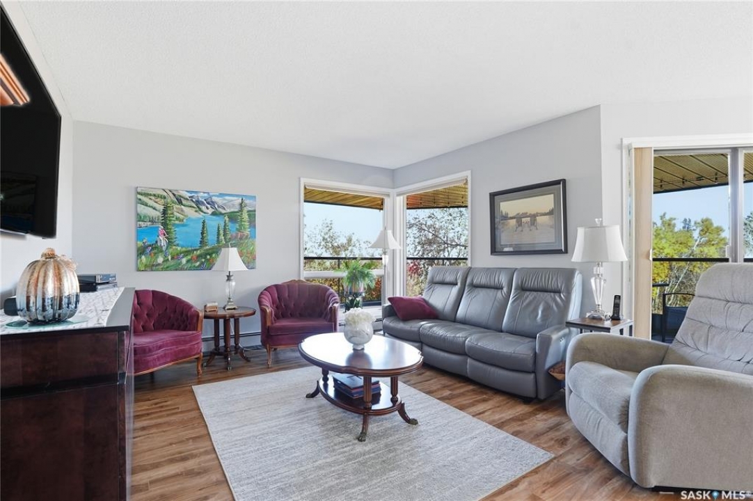 Welcome to Chalet Gardens, an exceptionally maintained and highly sought-after condominium complex located directly across from Market Mall. This immaculate 1,390 sq. ft. corner unit offers a perfect blend of comfort, functionality, and style, featuring two bedrooms plus a den, and an abundance of natural light throughout. From the moment you step inside, you'll appreciate the thoughtful design and meticulous care that has gone into maintaining this home. The kitchen and dining room have a beautiful view of the park and a large wrap around balcony. An abundance of cabinetry, and a large pantry that provides ample storage space. The open-concept layout creates a bright and inviting atmosphere, with large windows that fill the space with natural light. The spacious primary bedroom features , a large walk-in closet, and a four -piece ensuite. The second bedroom and den offer flexibility for guests, hobbies, or an office, allowing the space to adapt to your lifestyle needs. One of the standout features of this home is the covered wrap-around deck, offering an excellent view of the surrounding parks and green spaces. It's an ideal spot to enjoy your morning coffee or unwind at the end of the day, with the added convenience of an outdoor storage room right on the deck. The Chalet Gardens community is known for its well-managed amenities and welcoming atmosphere. The building includes a video intercom system for added security, an amenities room for gatherings, a fully equipped carpenter's workshop in the basement, and underground parking complete with a car wash and storage area. Additional underground parking spaces are available for rent, and residents also enjoy the convenience of free on-site RV parking. Surrounded by beautifully landscaped grounds and a peaceful courtyard, this complex fosters a true sense of community with a variety of social activities available for residents.