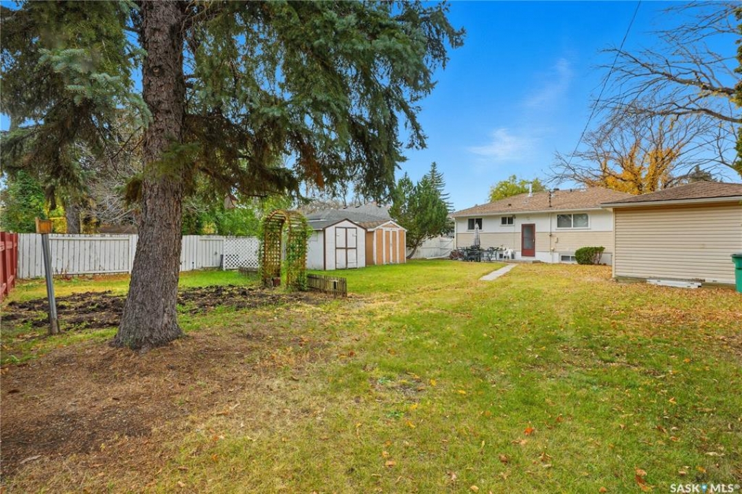 Welcome to 44 Mills Crescent in Avalon. This charming 1040 sq. ft. bungalow sits on a generous 7,914 sq. ft. corner lot in highly sought-after Avalon neighbourhood. The main floor is a bright, open layout with a spacious living room flowing into the dining area and kitchen with lovely backyard views. Three comfortable bedrooms and a 4-piece bathroom complete the main level. Downstairs hosts a fully developed 1-bedroom suite with a separate entrance providing privacy and great flexibility. The suite includes an open-concept living and dining space, a functional kitchen, a generous bedroom, and a 3-piece bath. The lower level also includes shared laundry and utility areas. Step outside to enjoy the large, fully fenced backyard, complete with garden area, patio area, two storage sheds and a single detached garage with street entry, plus convenient side yard and lane access. Avalon is located in south-central Saskatoon, with easy access to major roadways and the rest of the city. Located close to schools, parks, dog parks and shopping. Check out this opportunity today!