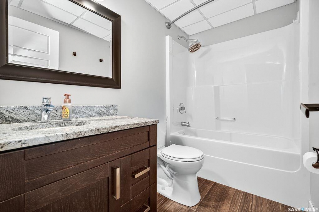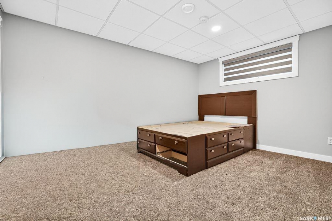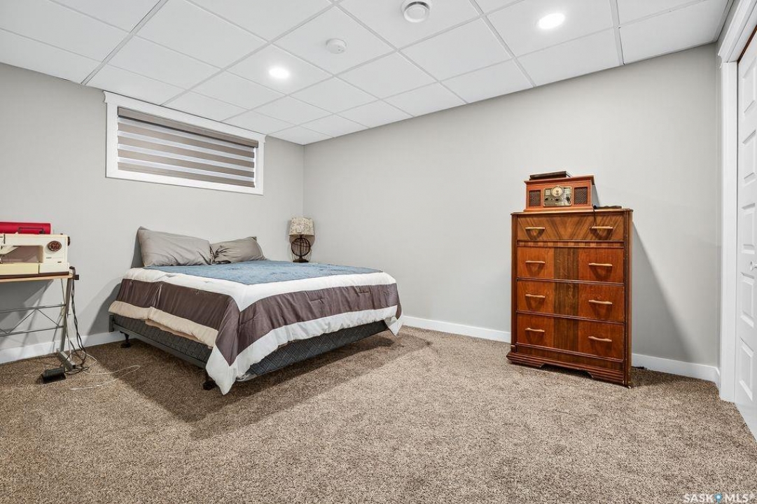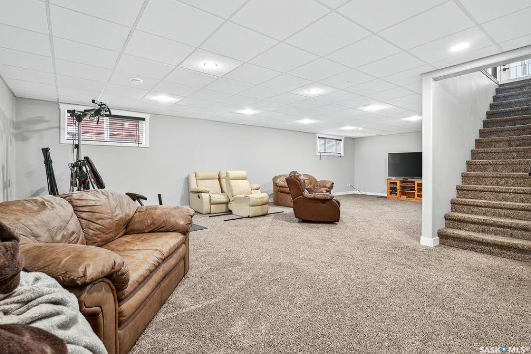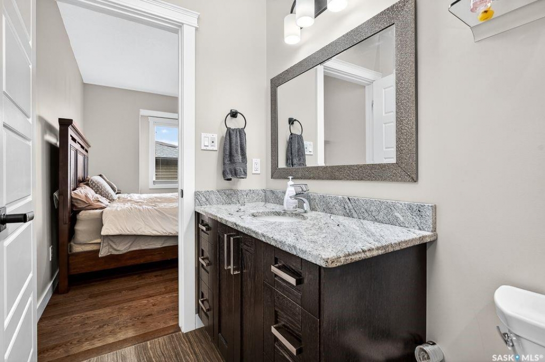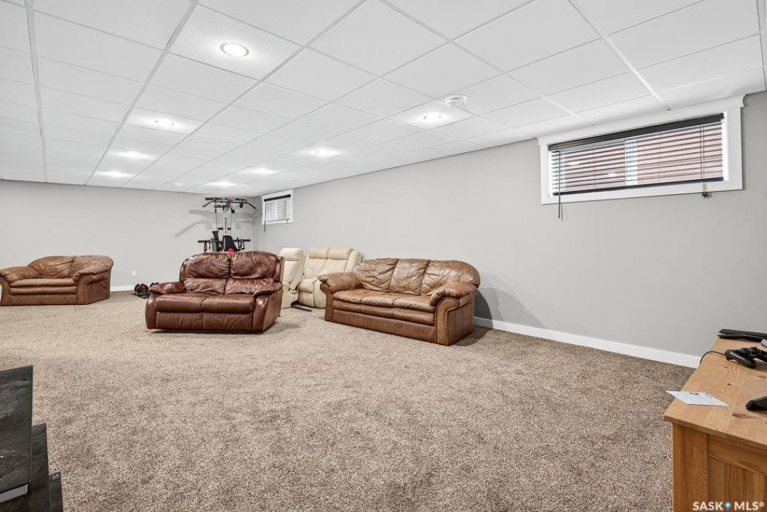 Welcome to 171 Wellington Drive! This beautiful 5-bedroom, 3-bathroom home, built in 2015, offers all the modern conveniences of newer construction. As you enter, you're greeted by 9-foot ceilings and a spacious foyer with direct access to the heated and insulated double attached garage. The main floor features hardwood flooring, stylish tiled bathrooms, and solid surface granite countertops throughout. The open-concept kitchen includes an oversized walk-in pantry, perfect for storage and organization. The living room boasts built-in cabinetry and a cozy gas fireplace, ideal for those chilly Saskatchewan winters. You'll also find main floor laundry for added convenience. The master bedroom includes a built-in window bench with cabinetry, a full 4-piece ensuite bath, and a walk-in closet. Two additional main floor bedrooms provide ample space for family or guests, along with another full 4-piece bathroom. The fully developed lower level offers a spacious family room, two more bedrooms, another 4-piece bath, a utility room, and a dedicated storage area. This home comes with all appliances included, as well as central air, central vac, a high-efficiency furnace, and hot water on demand. Outside, the property is fully landscaped and fenced, with underground sprinklers, a large shed (14' x 14' ) on a concrete pad, enclosed screened-in deck off the dining area—finished with authentic barnboard and privacy walls, making it perfect for three-season enjoyment. Located just around the corner from a newly opened school, this home is ideal for families seeking comfort, convenience, and quality. If this sounds like what you're looking for, don't miss your chance to take a peek!