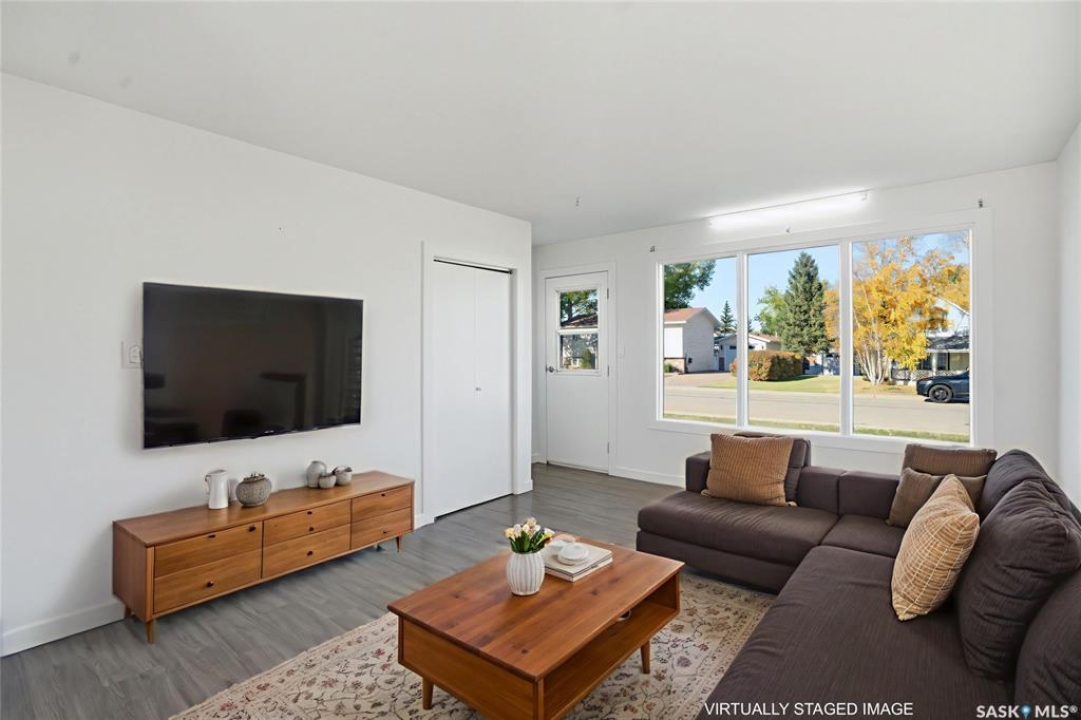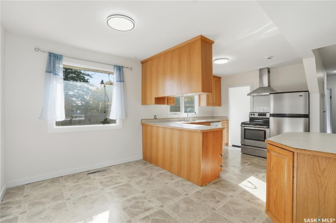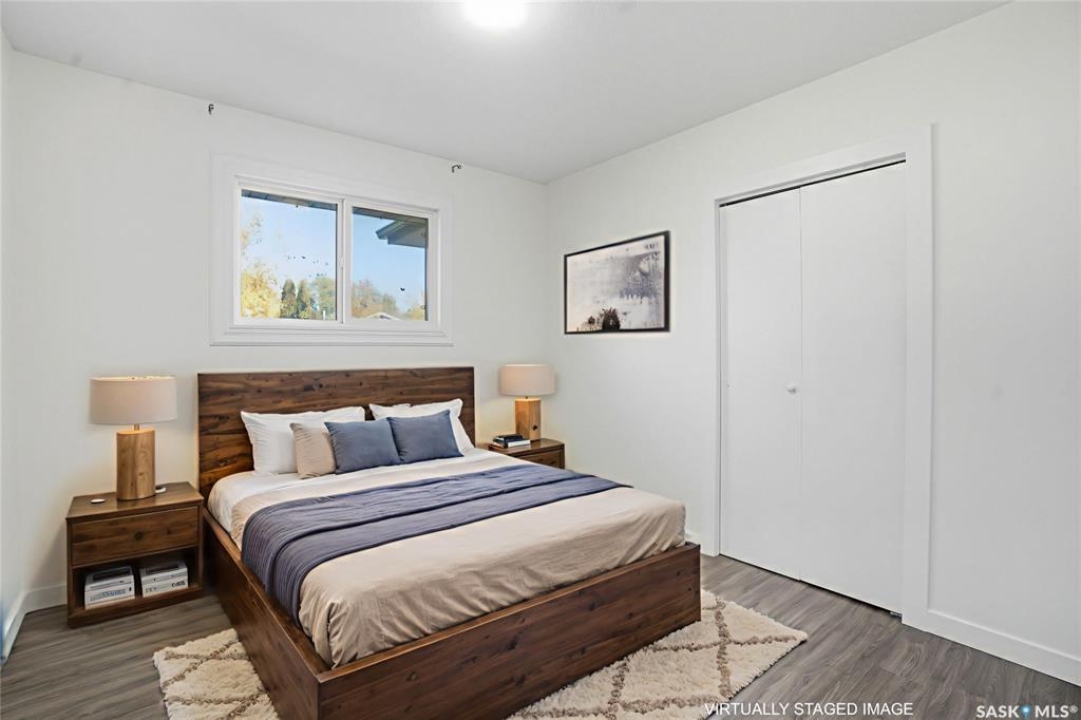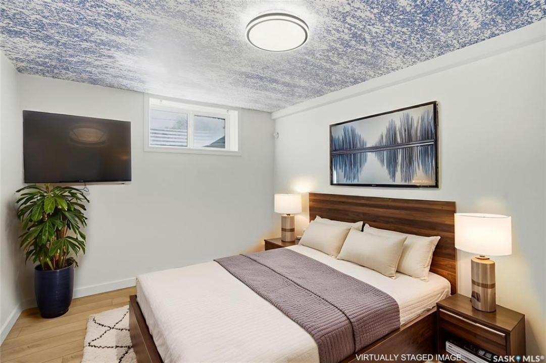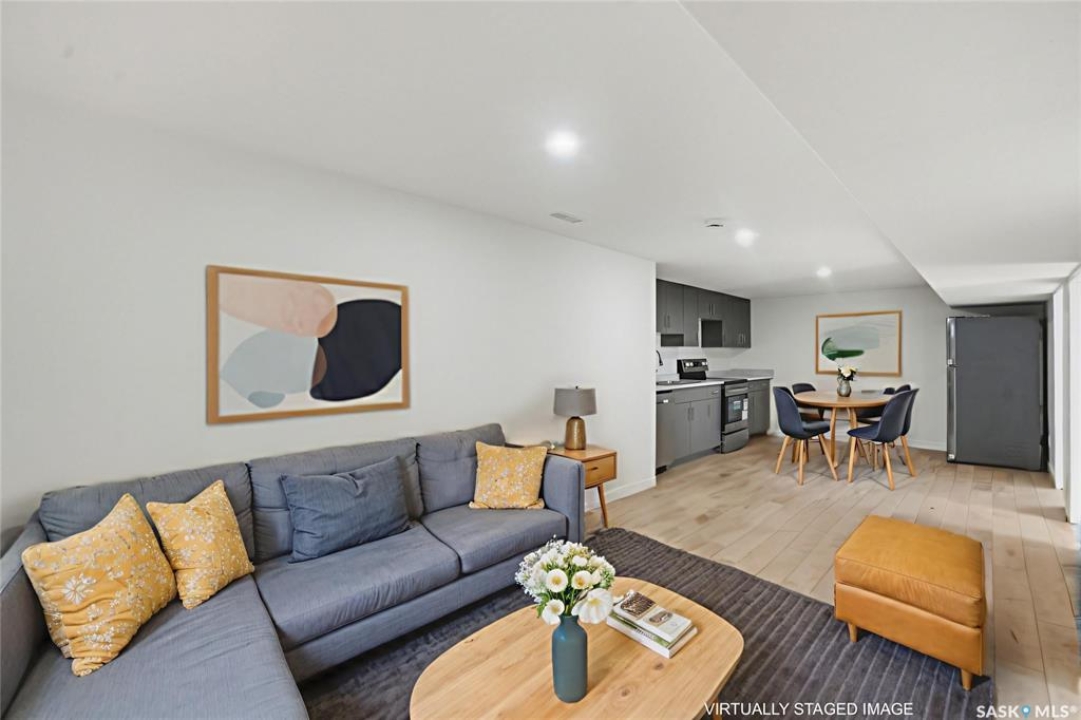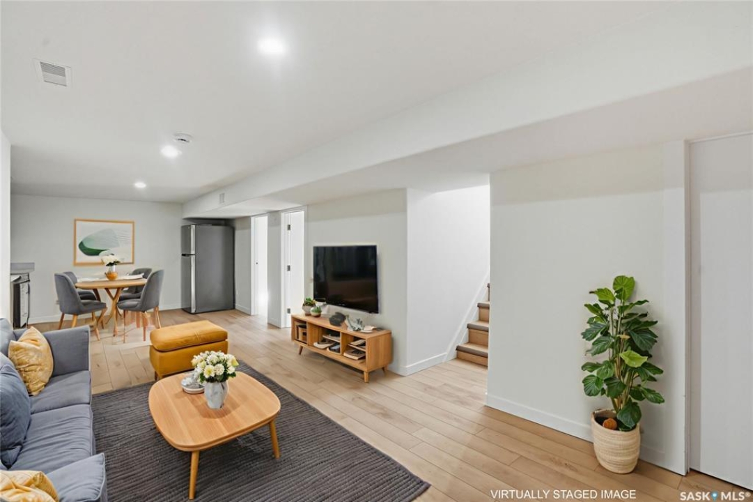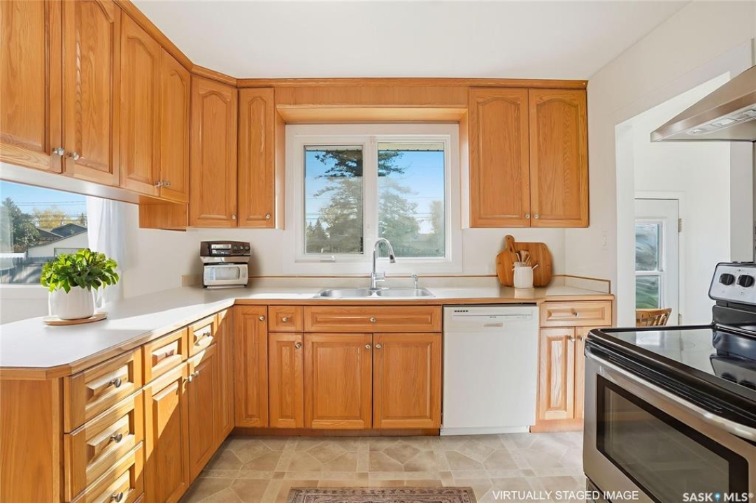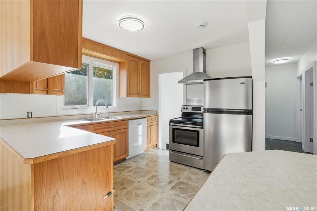 Move-in ready bungalow on a massive 100' wide lot in a great Martensville location—close to schools, parks, and all of the town's amenities. This well-cared-for 1,000 sqft. home offers 3 bedrooms on the main floor, a renovated and stylish 4-piece bathroom, a bright and spacious living room, and an open, light-filled kitchen. The main floor features newer laminate flooring and fresh paint throughout, giving the home a clean, updated feel. The basement has been completely renovated and adds tremendous flexibility. It includes a brand new kitchenette with stainless steel appliances, two additional bedrooms, a full bathroom, new vinyl plank flooring, and recessed pot lighting. Perfect for hosting guests or extended family—and with easy potential to convert into a legal suite for added rental income or future resale value. The exterior is just as impressive, with a park-like backyard that feels private and spacious. The 100' wide lot provides endless options for outdoor living, gardening, or future expansion, it's the perfect property to build your dream shop or garage! Mature trees offer shade and character, while the attached oversized single garage and RV parking space on the driveway provides plenty of storage and parking. This property shows extremely well and represents a fantastic opportunity to own a move-in ready home with both comfort and income potential in one of Martensville's most convenient locations.