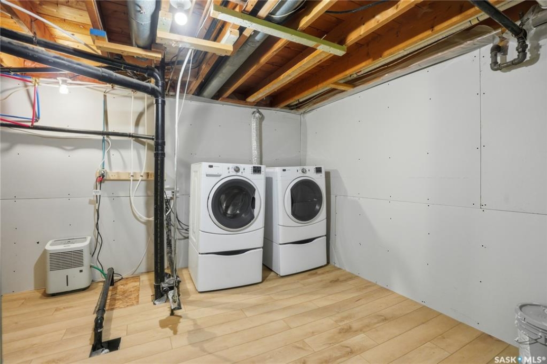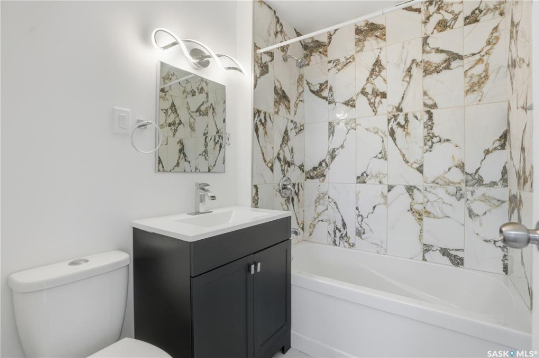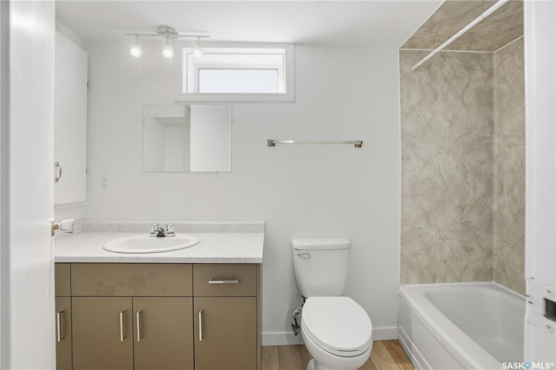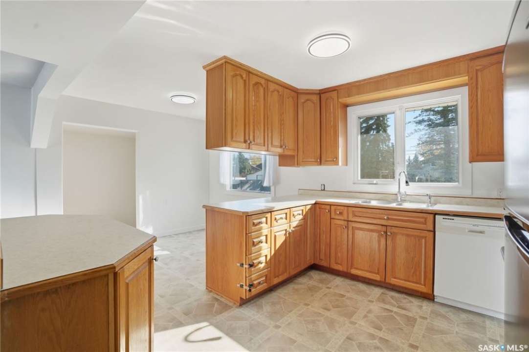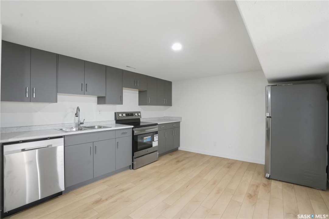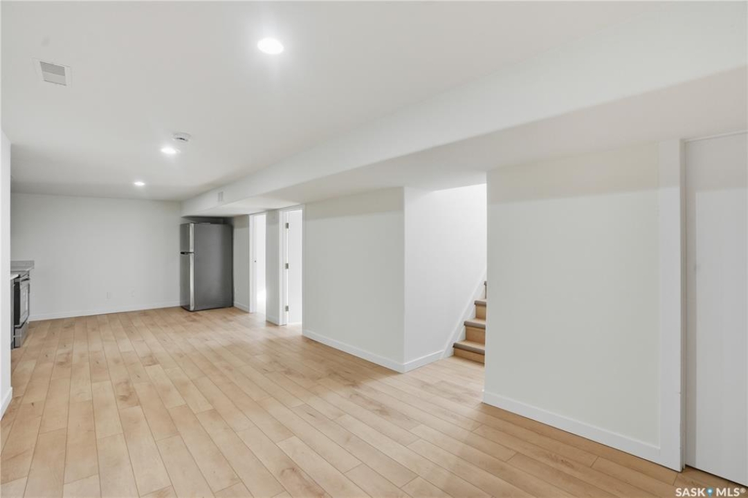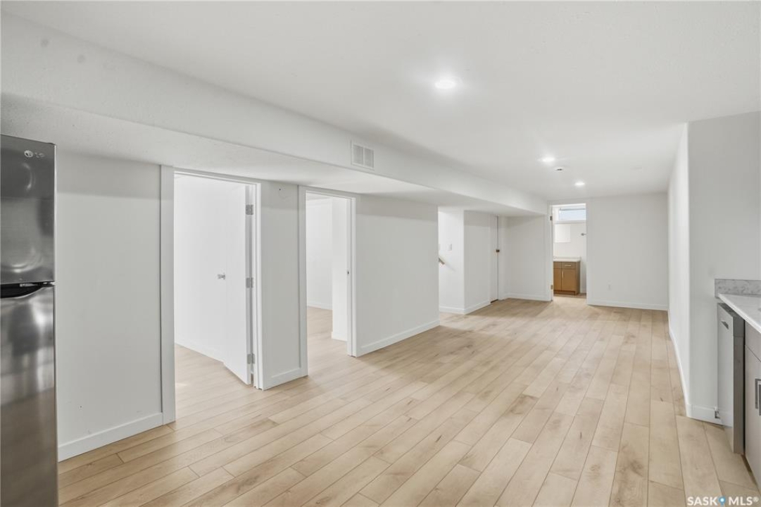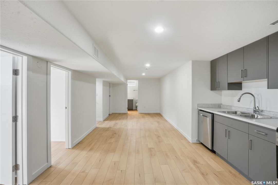Move-in ready bungalow on a massive 100' wide lot in a great Martensville location—close to schools, parks, and all of the town's amenities. This well-cared-for 1,000 sqft. home offers 3 bedrooms on the main floor, a renovated and stylish 4-piece bathroom, a bright and spacious living room, and an open, light-filled kitchen. The main floor features newer laminate flooring and fresh paint throughout, giving the home a clean, updated feel. The basement has been completely renovated and adds tremendous flexibility. It includes a brand new kitchenette with stainless steel appliances, two additional bedrooms, a full bathroom, new vinyl plank flooring, and recessed pot lighting. Perfect for hosting guests or extended family—and with easy potential to convert into a legal suite for added rental income or future resale value. The exterior is just as impressive, with a park-like backyard that feels private and spacious. The 100' wide lot provides endless options for outdoor living, gardening, or future expansion, it's the perfect property to build your dream shop or garage! Mature trees offer shade and character, while the attached oversized single garage and RV parking space on the driveway provides plenty of storage and parking. This property shows extremely well and represents a fantastic opportunity to own a move-in ready home with both comfort and income potential in one of Martensville's most convenient locations.