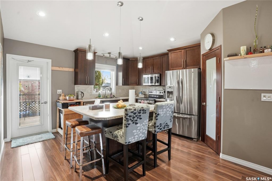 This great Stonebridge property is located on a quiet street, just blocks away from schools, parks and a vibrant commercial area that offers the amenities that you are looking for - shops, banks, restaurants and much more! A beautifully designed and fully developed bungalow offering bright light, vaulted ceilings, kitchen island with ample counter space, a corner pantry, and stainless-steel appliances as well as a garburator. From the kitchen area you can go out to the raised deck, down to the lower-level patio, and out to the lawn area in the back yard. Primary bedroom has an ensuite bath with a walk-in shower and a walk-in closet with built in shelving. Also, on the main floor there are two additional bedrooms and a 4-piece bath with a tub/shower combination. Located in the basement there is a fourth bedroom and an in-floor heated bathroom with a walk-in shower for all your guests to enjoy. In the basement area you will find an open concept exercise area/games room and a living area to watch television in. Basement features large windows. The attached 2 car garage is insulated and has a 11.5- foot ceiling and large overhead door. Added features are Central air, underground sprinklers, and natural gas BBQ hookup. Call your favorite realtor today and come out to view this great Stonebridge property!