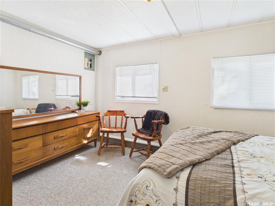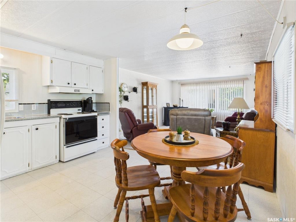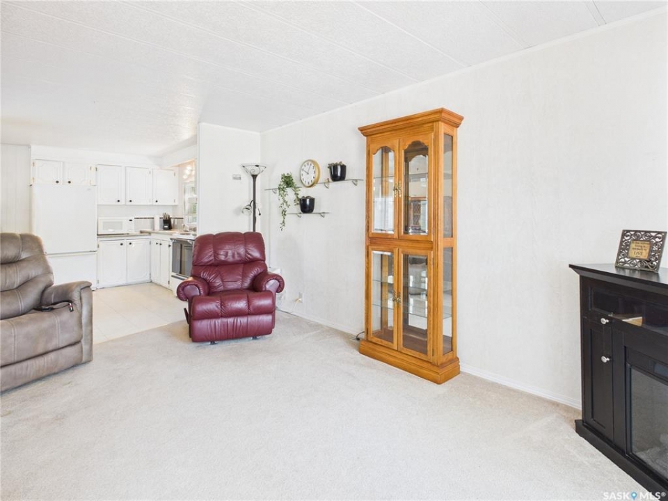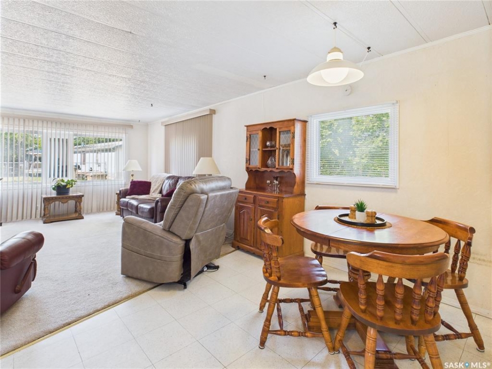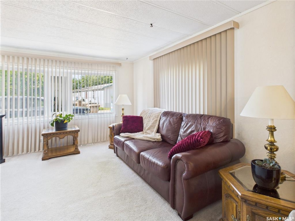 Welcome to this beautifully maintained 2-bedroom, 1-bath mobile home in Eastview Trailer Park! Bright, clean, and move-in ready, this home offers an affordable opportunity to step into homeownership or downsize in comfort. With a spacious layout, great natural light, a well-cared-for interior, and a carport, this property is perfect for someone looking for low-maintenance living in a quiet community. Quick possession is available and it comes with most of the furniture pictured. Literally turn the key, move in and make it your own! Contact your favourite REALTOR to book a showing now!