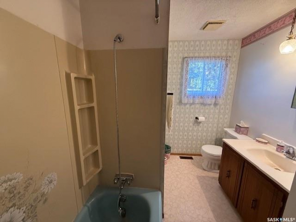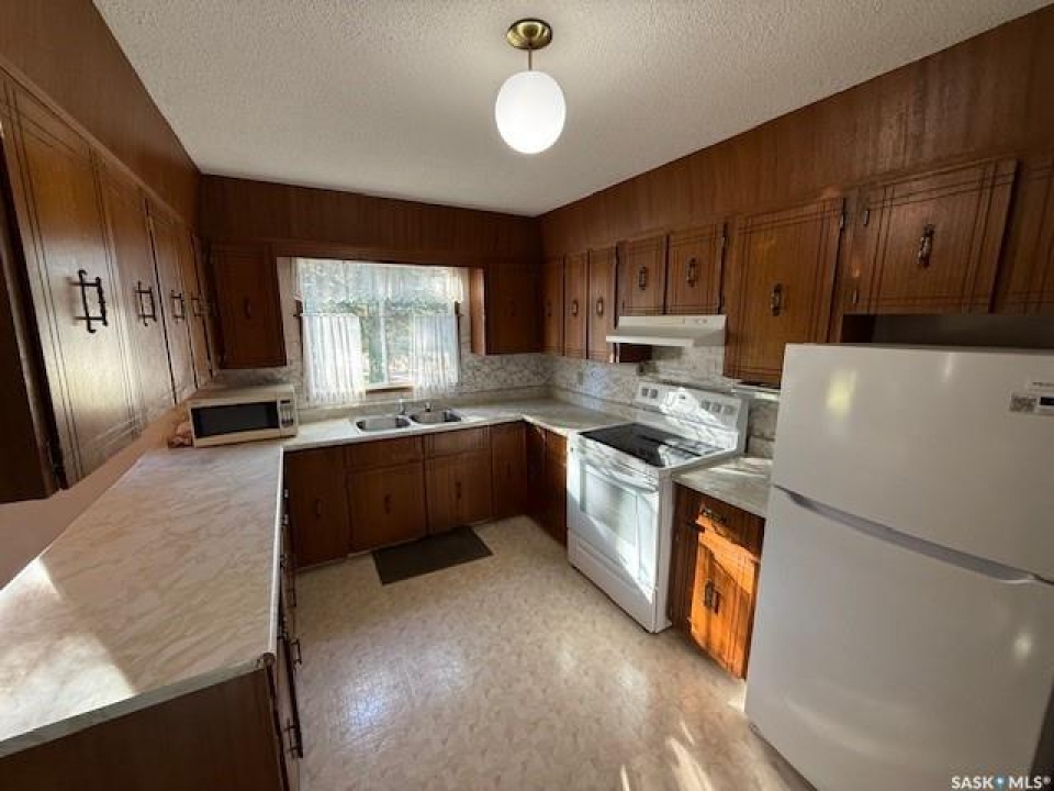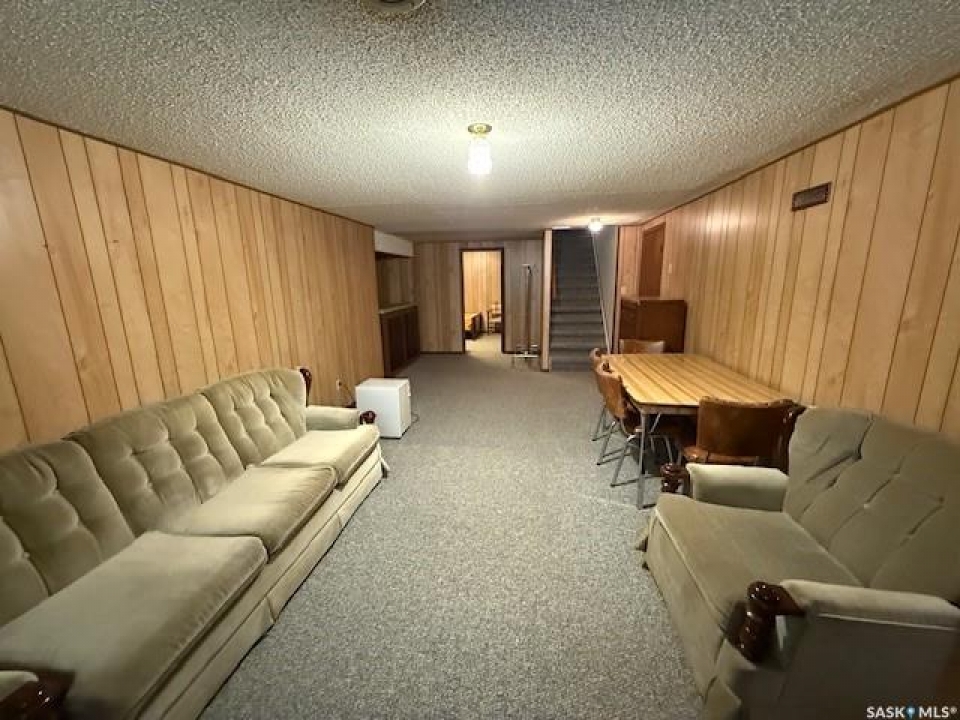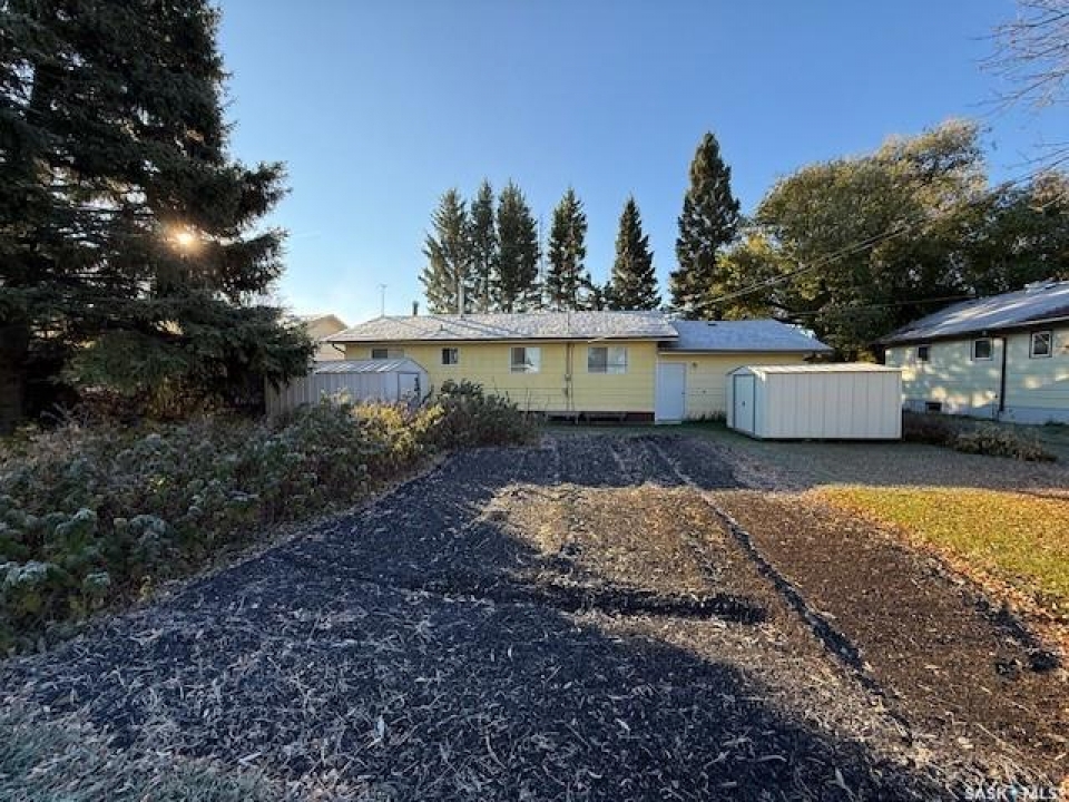 Welcome to this charming and affordable 1,120 sq. ft. bungalow, nestled in a quiet, family-friendly community. Built in 1978 and thoughtfully maintained, this home offers comfort, functionality, and space to grow. The main level features three inviting bedrooms, a bright 4-piece bathroom, a U-shaped kitchen with ample cupboards, a dedicated dining area, and a spacious living room highlighted by a cozy fireplace and a beautiful bay window. The fully finished basement expands your living space with a large rec room complete with a dry bar, a convenient office, a 3-piece bathroom, and a generous utility/laundry room with a cold storage area. The attached single-car garage, added in 1983, provides additional storage with built-in cabinets, while the wheelchair-accessible layout ensures comfort and accessibility for all. Enjoy the peaceful backyard with two garden sheds, a garden area perfect for growing your own produce, and back lane access for added convenience. All appliances are included; move in and make this wonderful home your own in a welcoming community that offers great value and small-town charm.