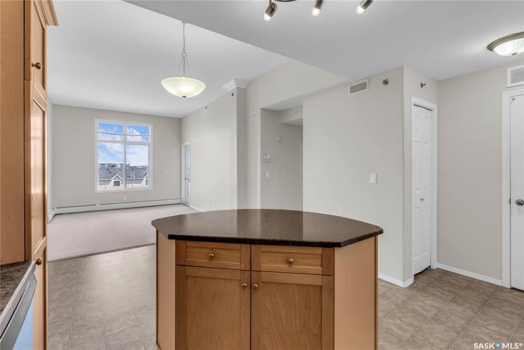 Welcome to unit #414 – 235 Herold Terrace, in the beautiful neighborhood of Lakewood! Conveniently close to many shopping centers, parks, walking trails, bus stops, dog park, and easy access to Circle Drive! Stepping inside your top floor unit, you are greeted with an abundance of natural light flowing throughout. The kitchen provides you with stainless steel appliances, including fridge, stove, dishwasher and hood fan, maple cabinets, pantry and island for additional counter and cabinet space. The living room features 10ft ceilings, a large window and access to your East facing balcony. Coming to the primary bedroom, offering a walk-in closet with custom organizers, and a 3-pc ensuite with sliding glass shower. One additional bedroom, a 4-pc bath, and in-suite laundry room complete this very well-kept home! Additional features include A/C, central vac, and two surface parking stalls! This stunning condo is a must-see in a highly sought after location!