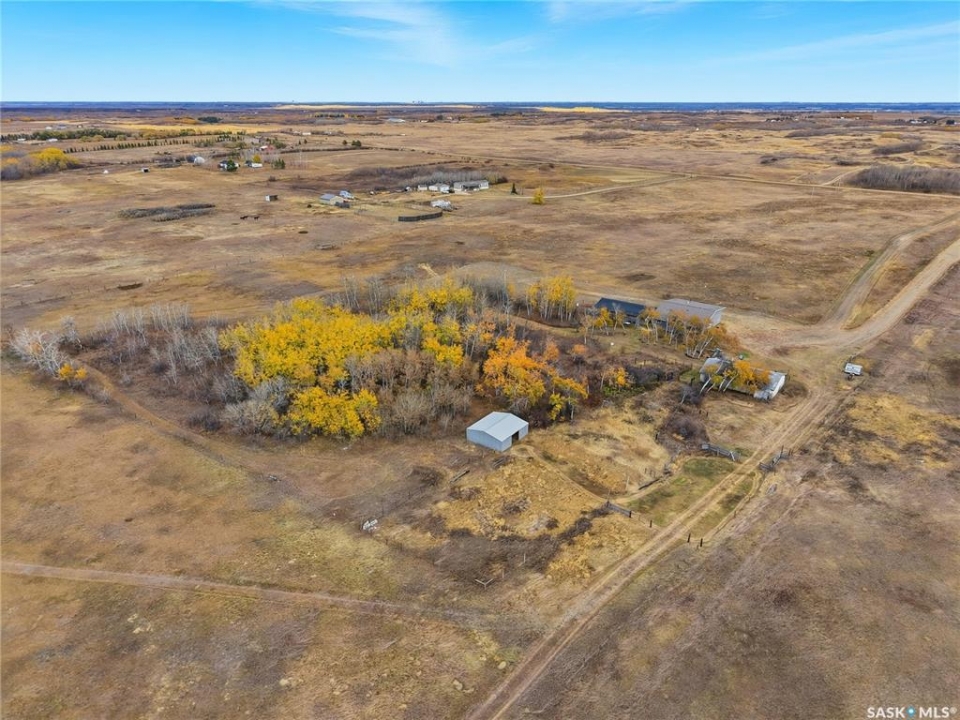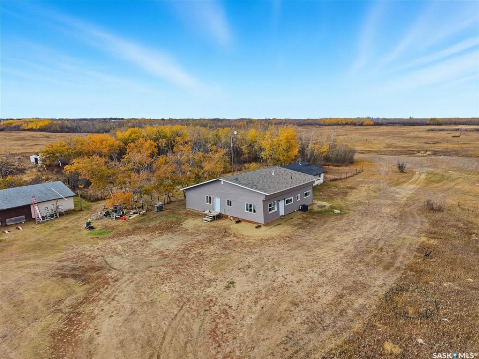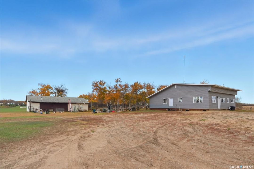 Acreage living just 15 minutes from Betts Ave Walmart! Set on nearly 40 acres, this property offers the best of both worlds, country space and city convenience. The five-bedroom, two-bathroom bungalow features several major upgrades, including a new furnace, water heater, washer and dryer, 200-amp electrical panel, and a septic pump installed just two years ago. Central air was also added two years ago, and the home has updated windows and new carpet throughout. The front 10 acres are currently used for haying, while the back 30 acres are ideal for livestock or hobby farming. There are two paddocks and a new barn that's nearly complete, with materials on-site for the new owners to finish. School bus service is available to Delisle, Vanscoy, and Saskatoon making this a great option for families seeking rural living within easy reach of city amenities.