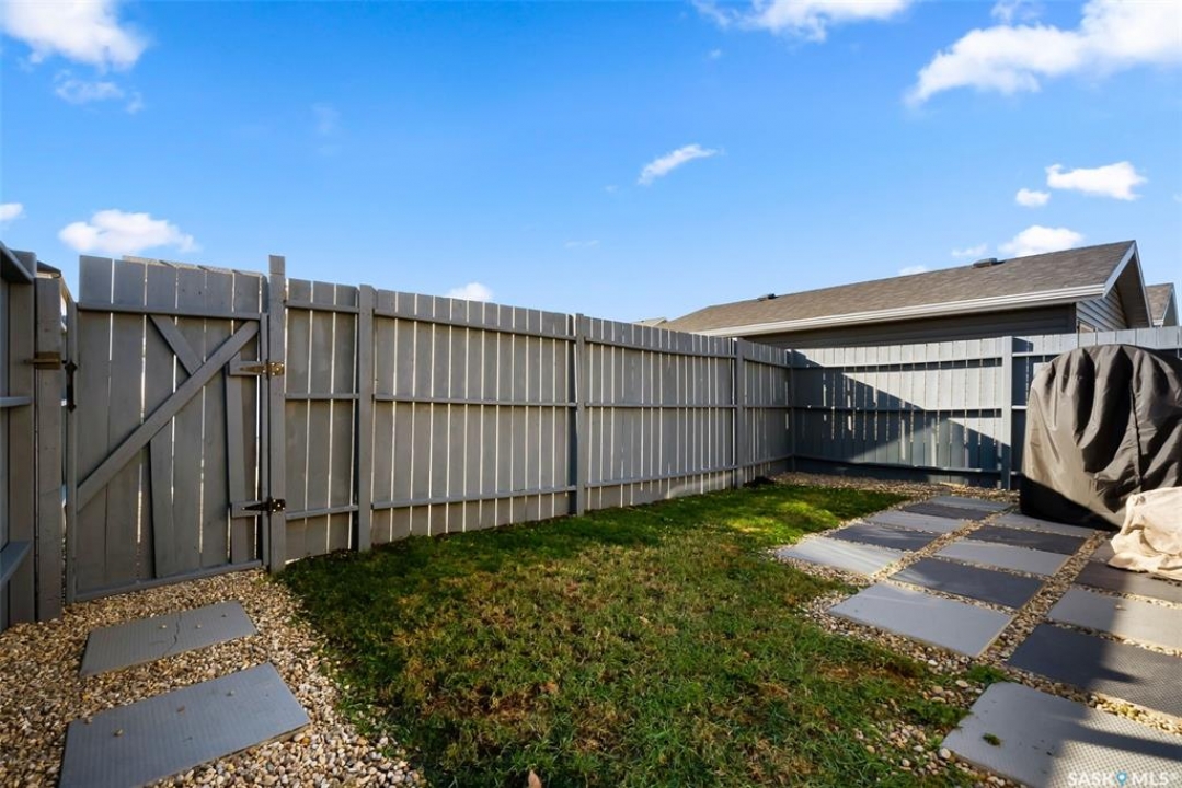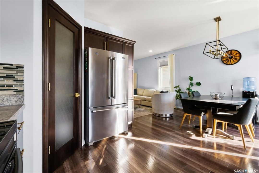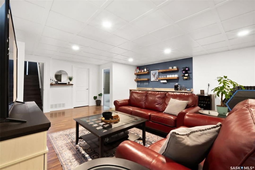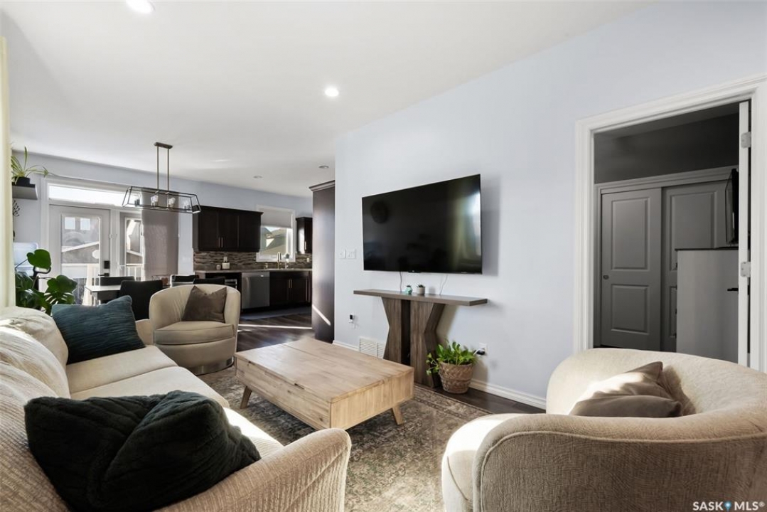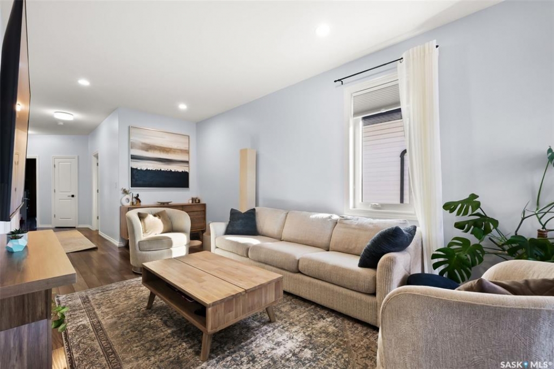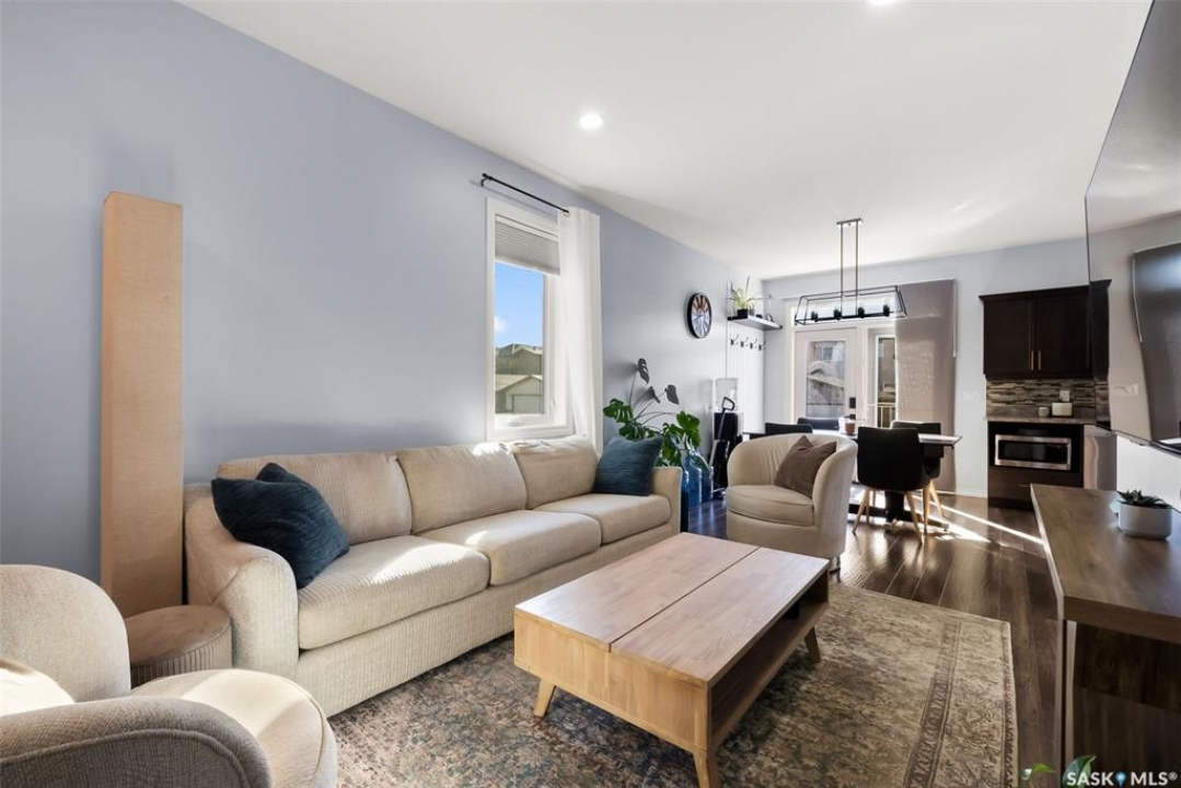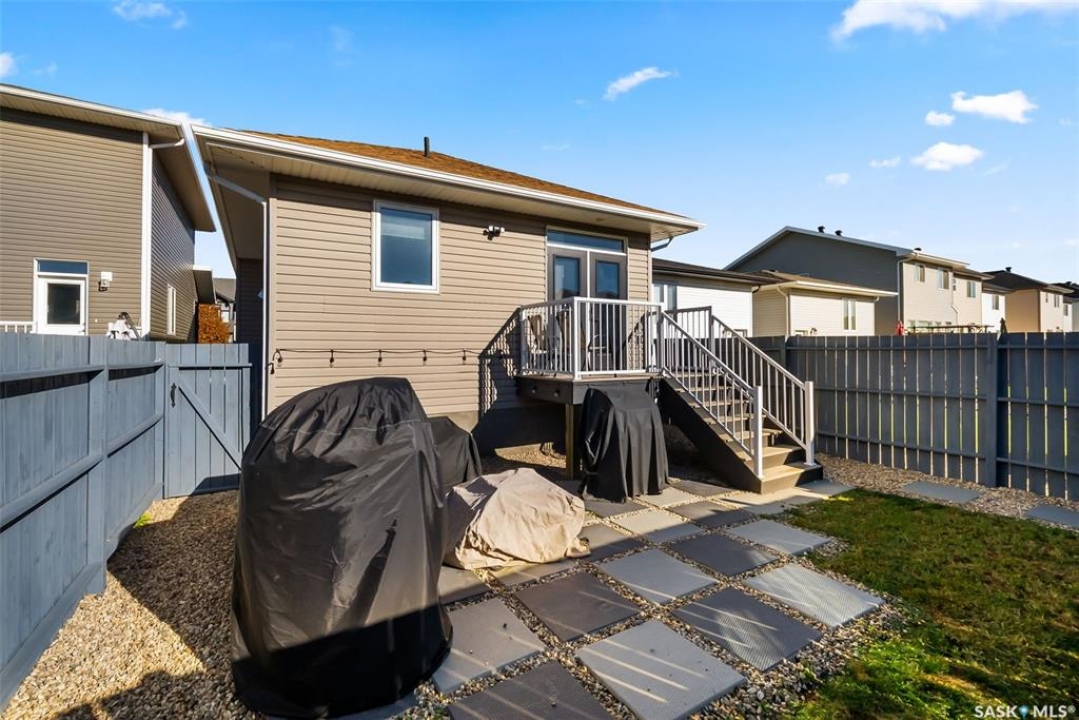 Welcome to your next home! — a beautifully styled and fully finished bi-level home in the desirable Hawkstone neighbourhood of Regina. This move-in-ready property offers comfort, function, and modern design throughout — perfect for families or those looking for a turnkey space. Step inside to a bright, inviting foyer with soaring ceilings and custom wood accent detailing. The open-concept main floor features a spacious living and dining area with plenty of natural light, trendy contemporary light fixtures, and access to the back deck through garden doors. The kitchen is both stylish and functional, showcasing rich dark cabinetry, tile backsplash, stainless-steel appliances, and a large pantry. The main level offers three well-appointed bedrooms and two bathrooms, including a serene primary suite with an ensuite and a designer wall treatment that adds warmth and sophistication. The lower level is completely developed, providing an expansive rec room, a fourth bedroom, and a third bathroom — the ideal setup for guests, teens, or a home gym. Outside, enjoy a fully fenced backyard with a deck and patio area, perfect for entertaining or relaxing. There's also ample parking space at the rear, with room to add a future garage if desired. Located close to schools, parks, walking paths, and all North-end amenities, this home combines comfort, practicality, and modern style in one of Regina's most sought-after communities. Book your personal tour today.