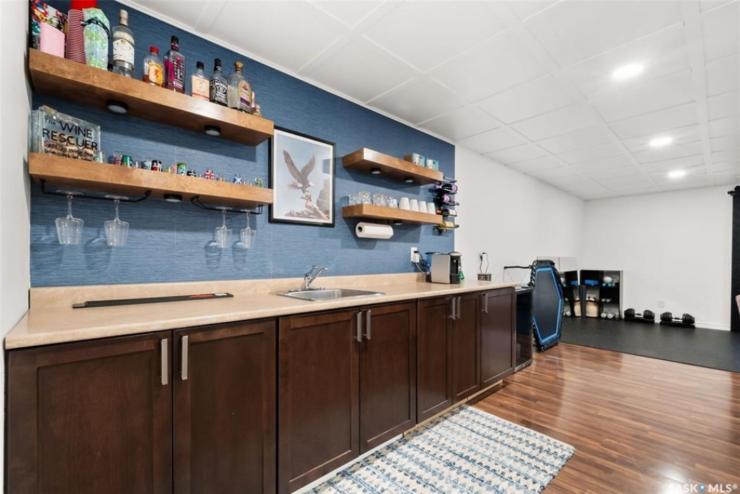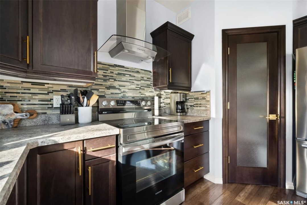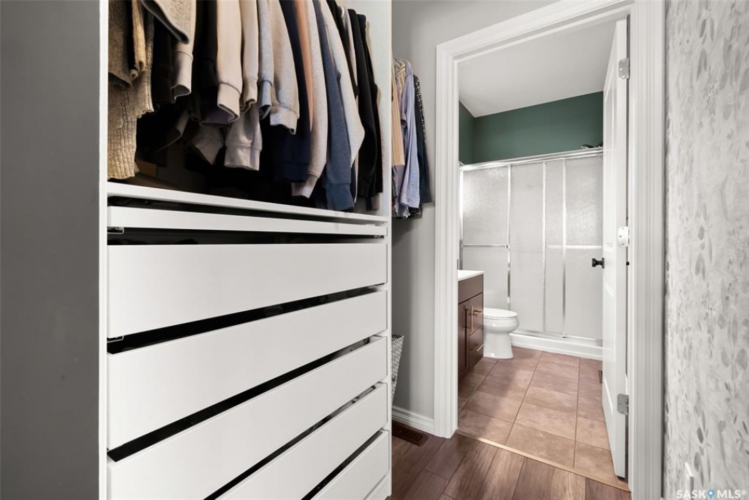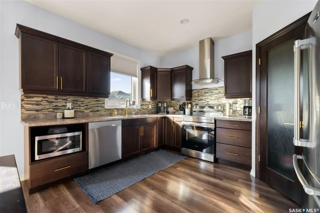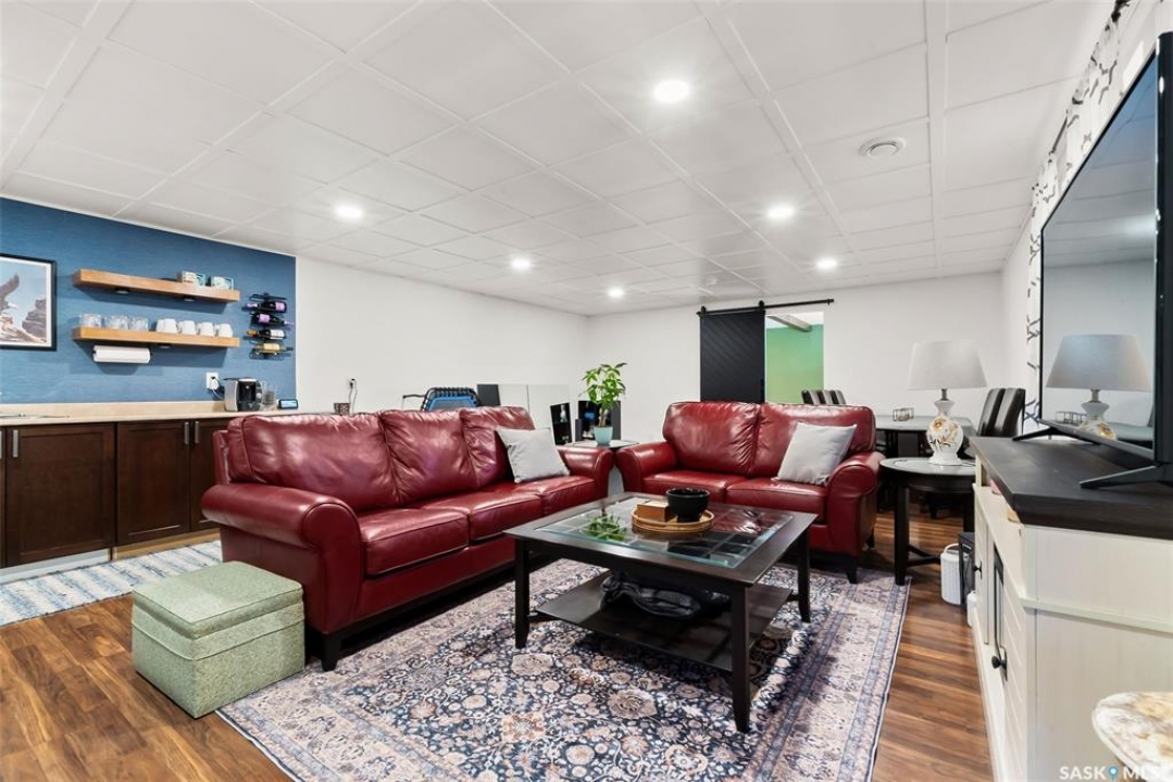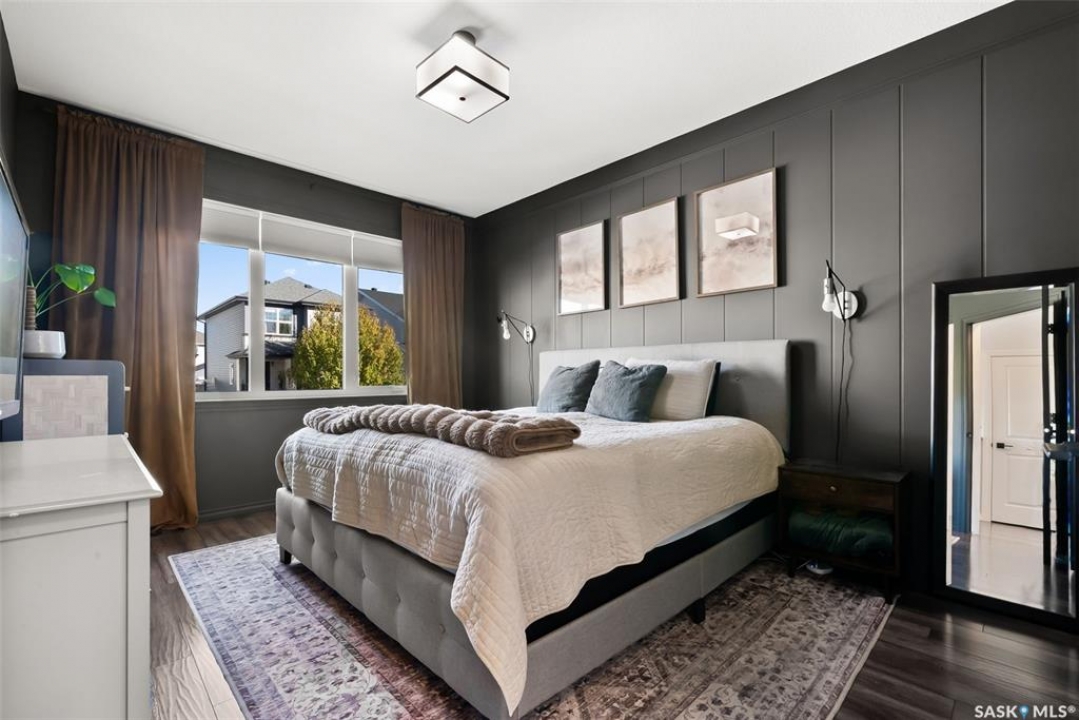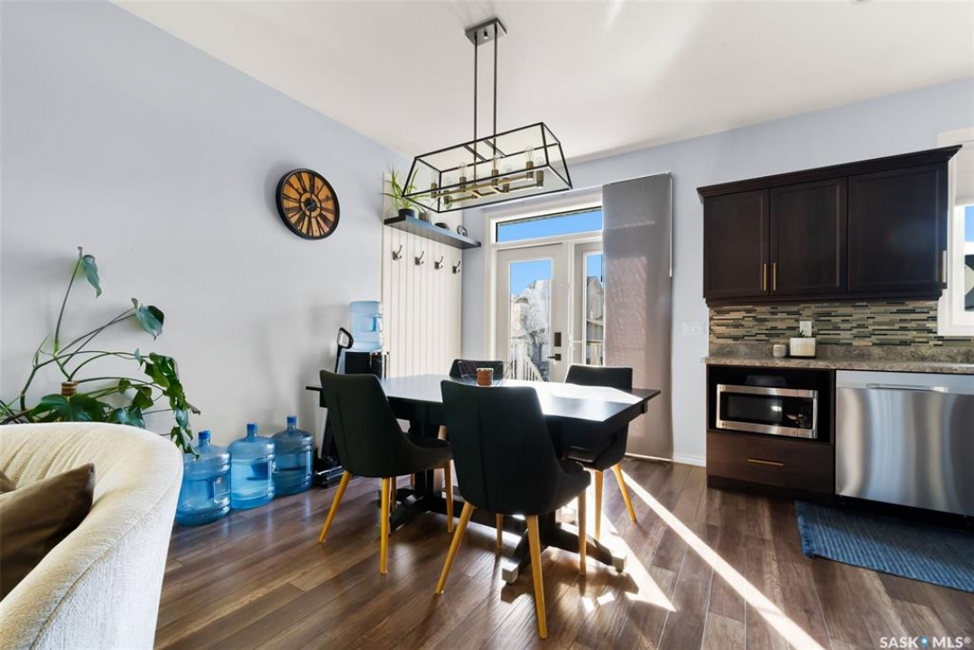 Welcome to your next home! — a beautifully styled and fully finished bi-level home in the desirable Hawkstone neighbourhood of Regina. This move-in-ready property offers comfort, function, and modern design throughout — perfect for families or those looking for a turnkey space. Step inside to a bright, inviting foyer with soaring ceilings and custom wood accent detailing. The open-concept main floor features a spacious living and dining area with plenty of natural light, trendy contemporary light fixtures, and access to the back deck through garden doors. The kitchen is both stylish and functional, showcasing rich dark cabinetry, tile backsplash, stainless-steel appliances, and a large pantry. The main level offers three well-appointed bedrooms and two bathrooms, including a serene primary suite with an ensuite and a designer wall treatment that adds warmth and sophistication. The lower level is completely developed, providing an expansive rec room, a fourth bedroom, and a third bathroom — the ideal setup for guests, teens, or a home gym. Outside, enjoy a fully fenced backyard with a deck and patio area, perfect for entertaining or relaxing. There's also ample parking space at the rear, with room to add a future garage if desired. Located close to schools, parks, walking paths, and all North-end amenities, this home combines comfort, practicality, and modern style in one of Regina's most sought-after communities. Book your personal tour today.