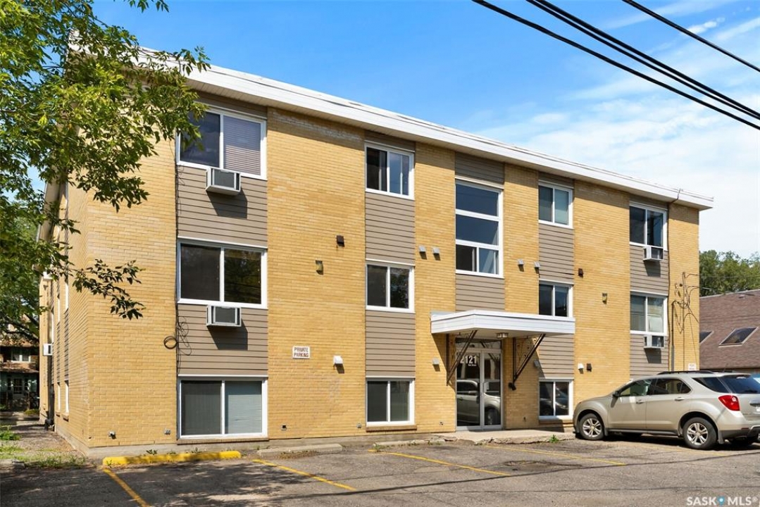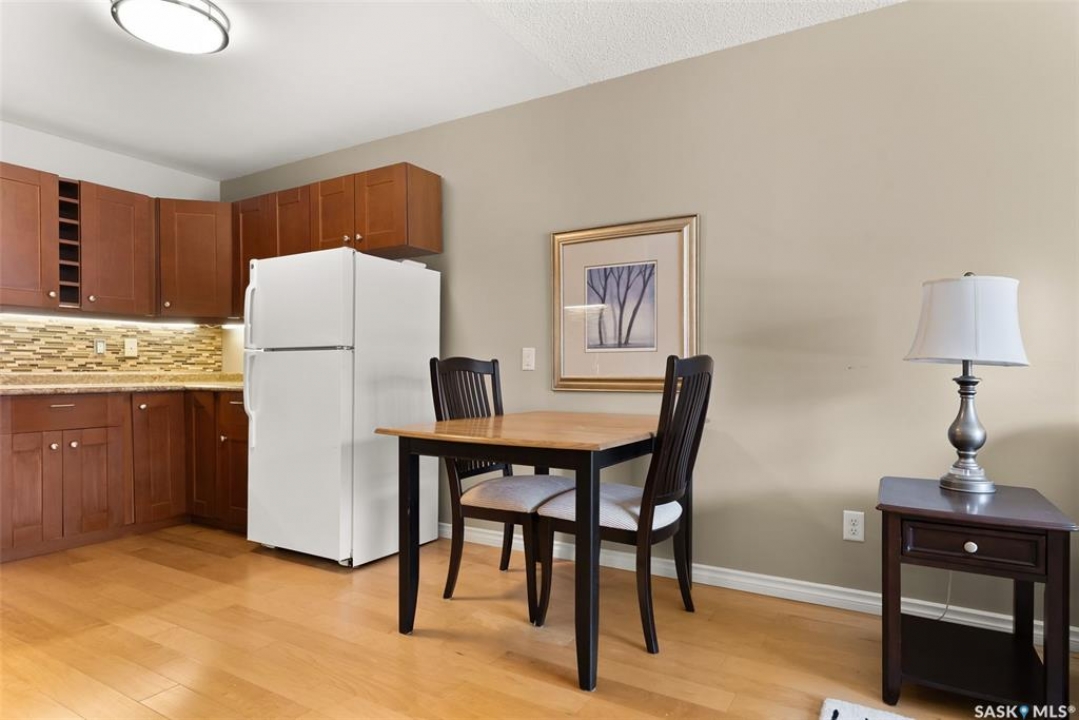 COMPLETELY UPDATED ONE BEDROOM, 2ND FLOOR CONDO IN THE HEART OF CATHEDRAL! Welcome to Park Lane, this nicely updated condo would be ideal for first time buyers or investors. Enter to the foyer that opens up into a bright open kitchen and dining area. The kitchen is updated with newer cappuccino cupboards, newer counters and a tile back splash. All of the windows have been updated and the main living area features engineered hardwood. The 4 pce bath has a brand new tub surround and newer toilet and vanity. The bedroom boasts a big window and lots of closet place. There is also a convenient storage room off the entrance that could be converted to a laundry room. The units condo fee's include heat, water, snow removal, common area and building maintenance as well as contributions to the reserve fund. The front entrance steps are undergoing repairs.The unit comes with one electrified surface parking spot, all furniture is negotiable. This property is walking distance to all that Cathedral has to offer as well as being right next to downtown and minutes to Wascana Park. Please contact you Realtor for more information or personal tour.