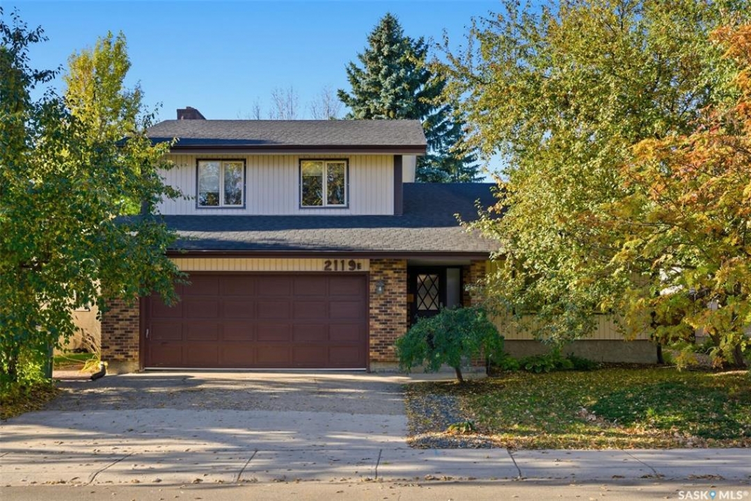 Welcome to 2119 Elderkin Dr E in Gardiner Park area. This 2 Storey split home is the perfect family home offering 1618 sq ft of living space with 4 bedrooms and 3 bathrooms and a double attached garage. Close to walking paths, across the street from park and tennis courts, easy access to all east end amenities & the ring road, steps away from a bus stop, and close too many elementary schools. This home has been well cared for and has many features and upgrades which include: *Spacious front foyer* Living room that flows into formal dining room* Added pot lights in living room* Updated kitchen with additional eating area* Soft close cabinet doors* Quartz countertop* New linoleum floor* Appliances included* Kitchen window overlooks backyard which is nice to watch the kids playing* A few steps down lead to family room with patio doors leading to deck and private backyard* New Vinyl plank flooring throughout upstairs and Family room* Laundry room with built in cabinets* 2 piece bathroom* Direct entry from the garage* Upstairs has large master bedroom with 3 piece ensuite, new ceiling fan, and lots of closet space* 2 additional good sized bedrooms* 4 piece bathroom with new bath tub, tub surround, faucets, toilet and linoleum* Downstairs is finished with rec room, bedroom, mechanical room and lots of storage* Newer carpet in basement* High eff. furnace* Central air conditioning* Some updated windows* Good sized garage with steel beam and additional man door to the side of the house* Abundance of natural light* Beautiful private fully fenced backyard* New turf carpet on outdoor deck* And much more.... Call your Real Estate agent to book a viewing today!!