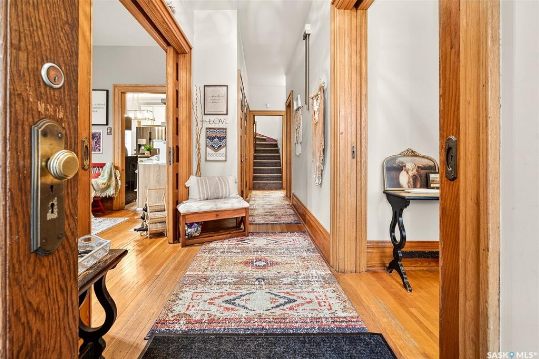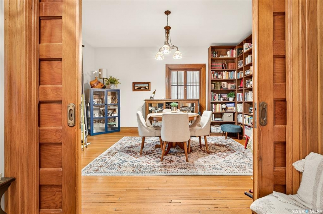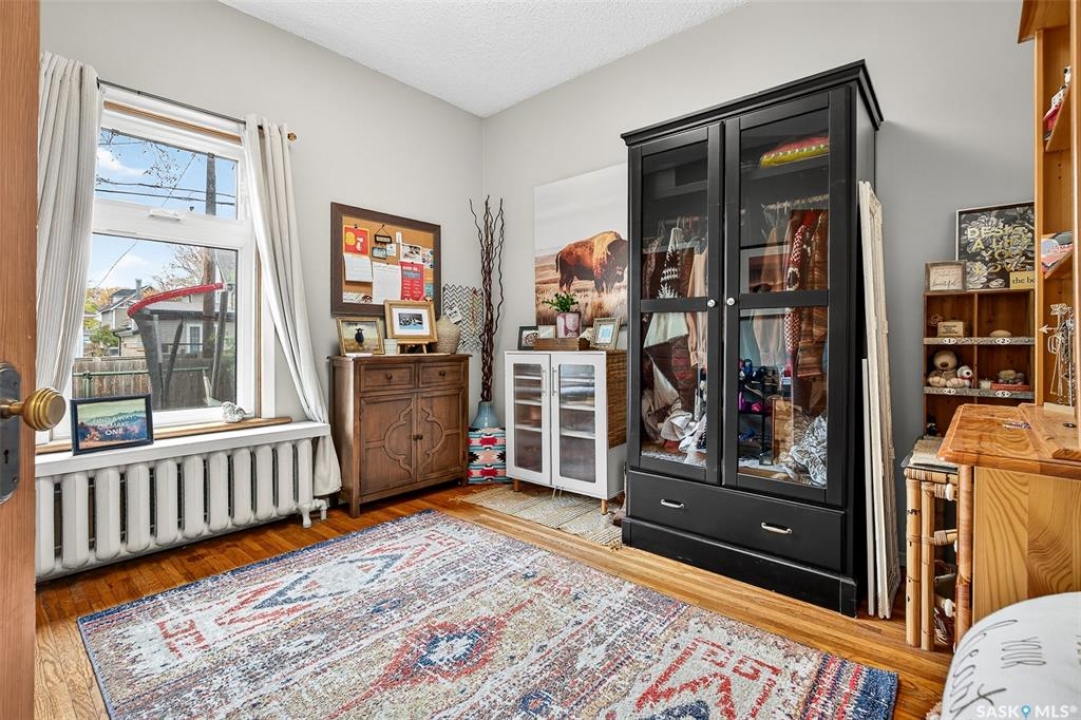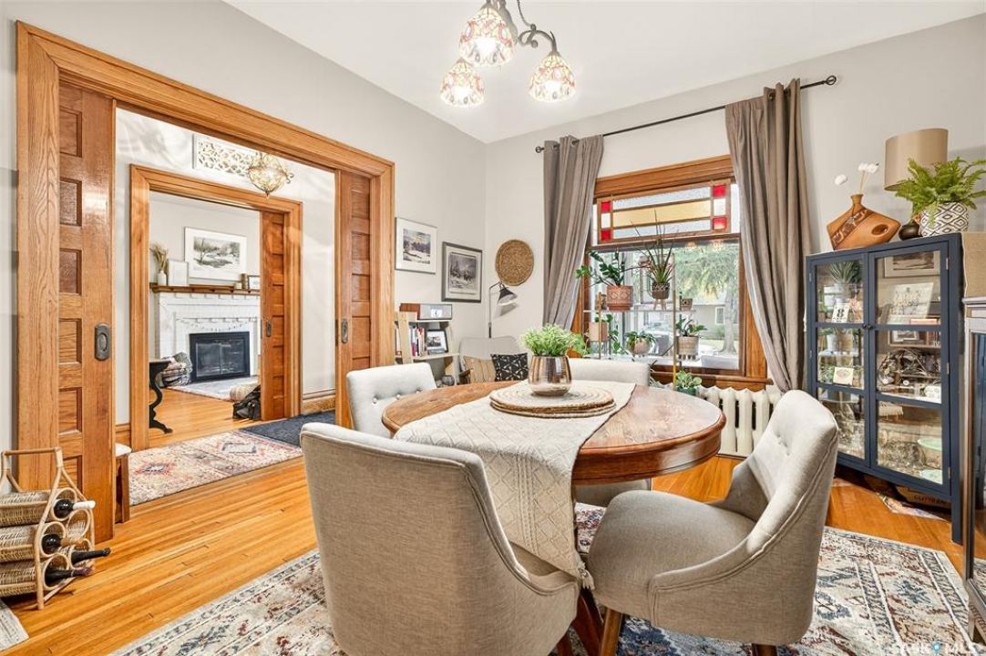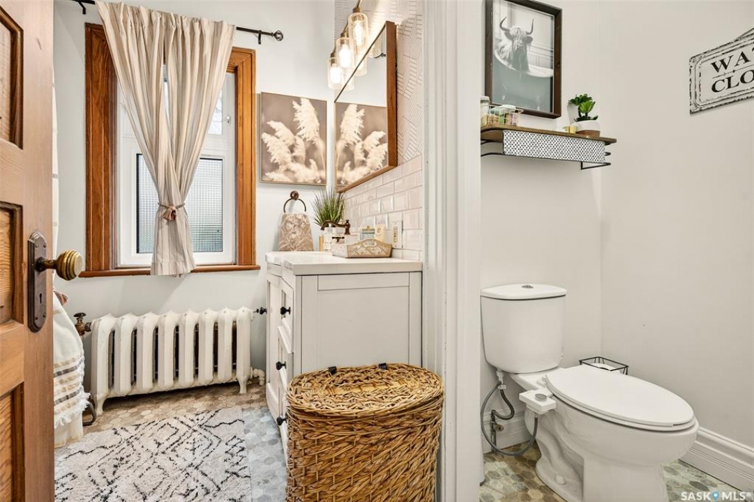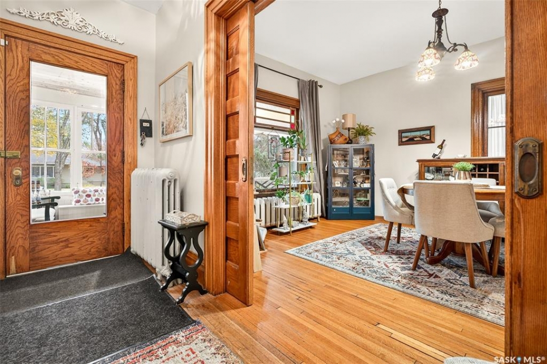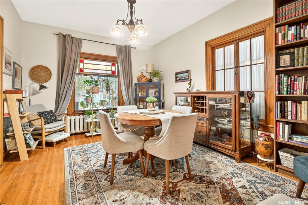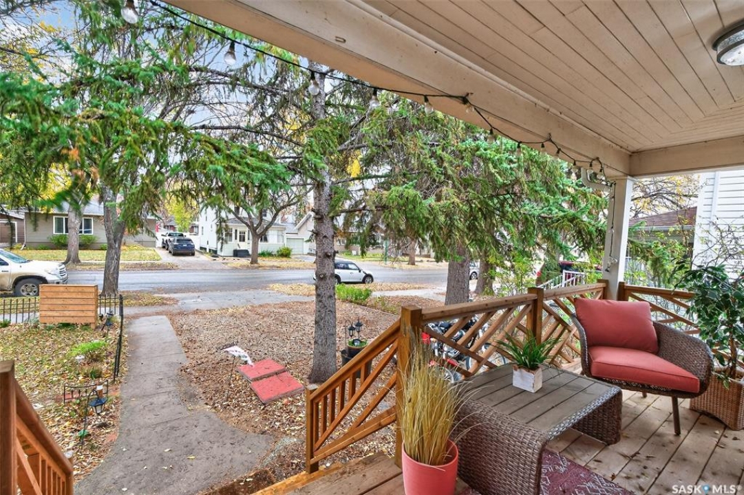 Welcome to this character home located in the highly desirable Avenues area — known for its mature tree-lined streets, timeless architecture, and unbeatable proximity to amenities. The main level features a comfortable living room and a dining room/library, providing flexibility for formal dining or a reading retreat. It would be hard not to notice the stunning wood pocket doors going into the dining room and the living room and the butlers door for easy access between the kitchen and the dining room. Toward the back of the home, you'll find an updated kitchen complete with quartz countertops, eat-in kitchen island and a beautiful copper sink — a perfect blend of charm and modern functionality. The main floor bathroom has been tastefully updated, showcasing a classic bathtub and a local artisan-made custom shower curtain rod along with a water closet for privacy. A spacious primary bedroom and two additional bedrooms complete the main level, offering comfortable living for families or guests. The second level features two generous bedrooms, a smaller bedroom and a two-piece bathroom, along with an open flex area that could easily serve as a library, office, or children's play zone. The unfinished basement provides excellent potential for future development and currently includes a dog wash/shower area and a stylishly finished laundry area. Outdoor spaces are equally inviting — enjoy mornings on the east-facing new front deck that was upgraded last year along with Chippendale railing and red cedar siding which gives this home an updated modern appeal & unwind in the south-facing sunroom, or entertain in the fully fenced backyard featuring a deck, green space and ample storage shed (originally built to store motorcycles). This home perfectly blends historic charm with thoughtful updates, offering plenty of room for a growing family in one of the city's most desirable neighborhoods.