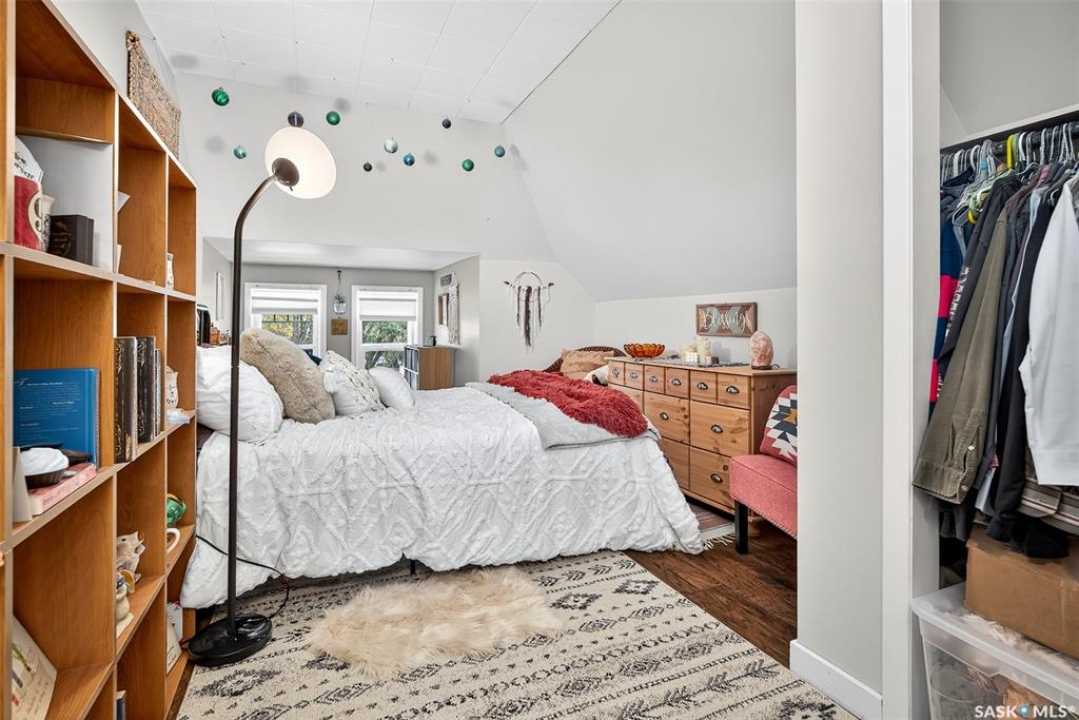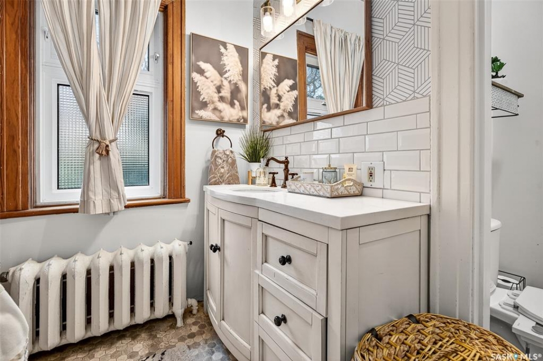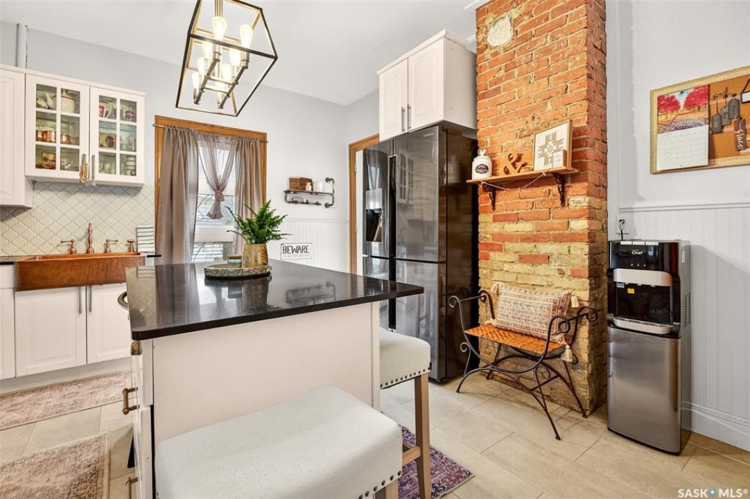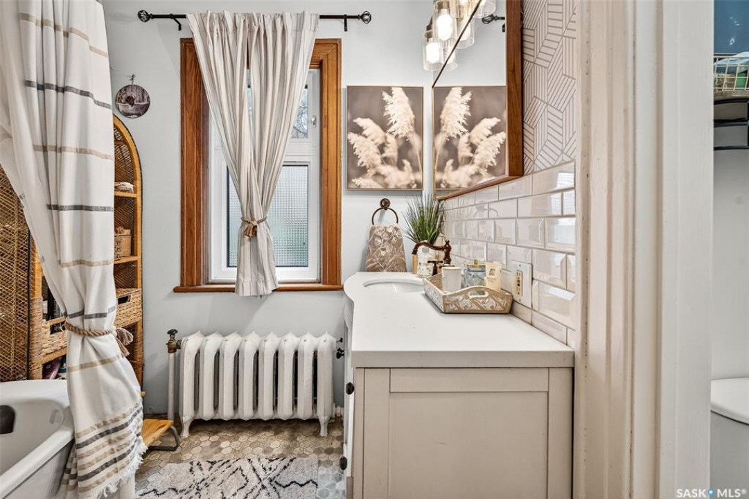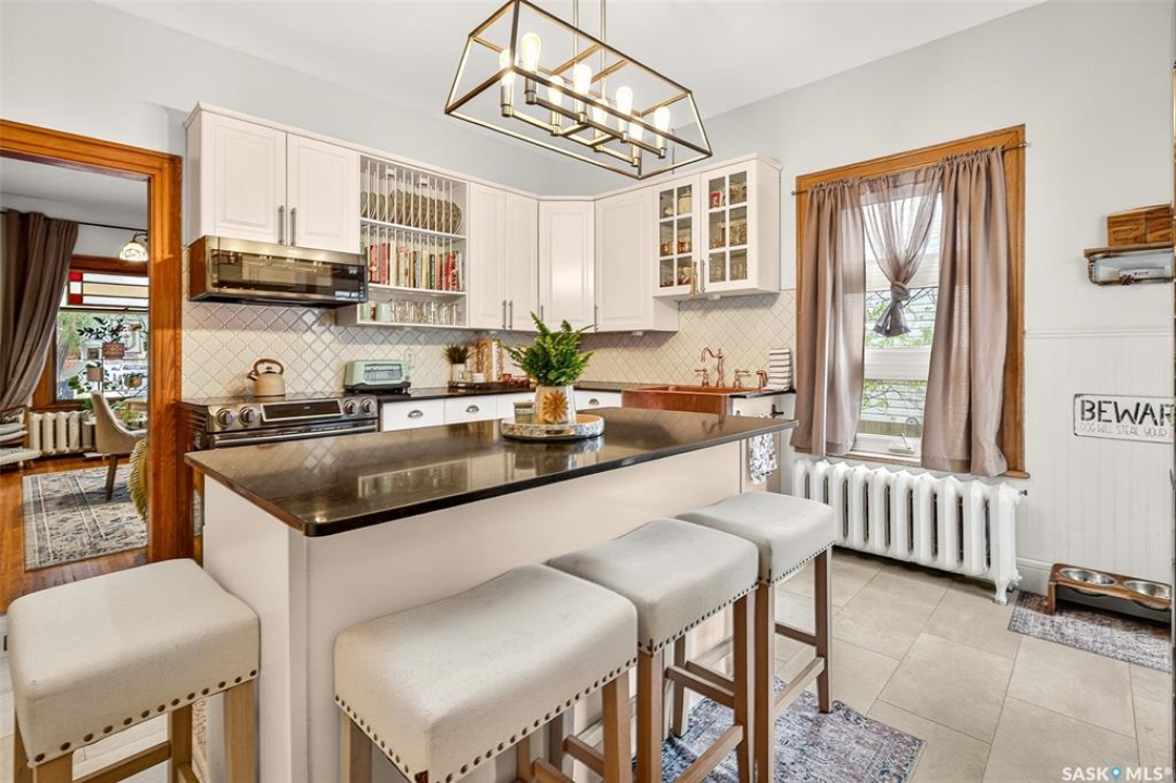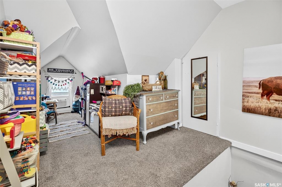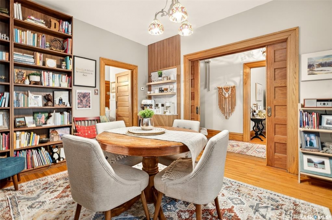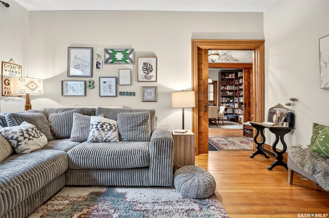 Welcome to this character home located in the highly desirable Avenues area — known for its mature tree-lined streets, timeless architecture, and unbeatable proximity to amenities. The main level features a comfortable living room and a dining room/library, providing flexibility for formal dining or a reading retreat. It would be hard not to notice the stunning wood pocket doors going into the dining room and the living room and the butlers door for easy access between the kitchen and the dining room. Toward the back of the home, you'll find an updated kitchen complete with quartz countertops, eat-in kitchen island and a beautiful copper sink — a perfect blend of charm and modern functionality. The main floor bathroom has been tastefully updated, showcasing a classic bathtub and a local artisan-made custom shower curtain rod along with a water closet for privacy. A spacious primary bedroom and two additional bedrooms complete the main level, offering comfortable living for families or guests. The second level features two generous bedrooms, a smaller bedroom and a two-piece bathroom, along with an open flex area that could easily serve as a library, office, or children's play zone. The unfinished basement provides excellent potential for future development and currently includes a dog wash/shower area and a stylishly finished laundry area. Outdoor spaces are equally inviting — enjoy mornings on the east-facing new front deck that was upgraded last year along with Chippendale railing and red cedar siding which gives this home an updated modern appeal & unwind in the south-facing sunroom, or entertain in the fully fenced backyard featuring a deck, green space and ample storage shed (originally built to store motorcycles). This home perfectly blends historic charm with thoughtful updates, offering plenty of room for a growing family in one of the city's most desirable neighborhoods.