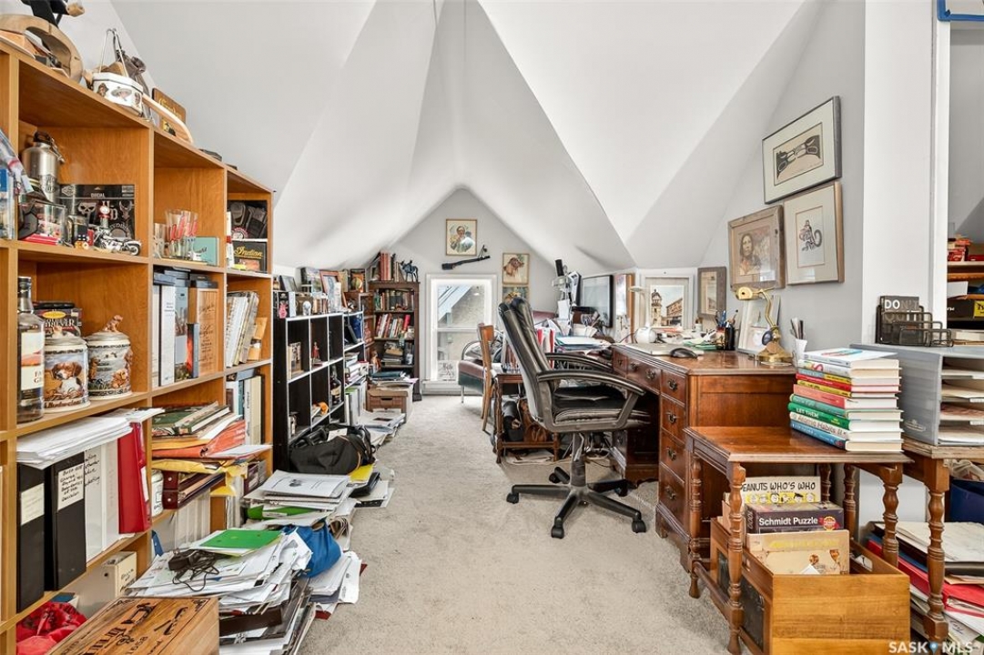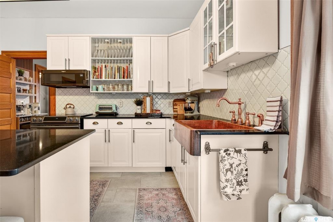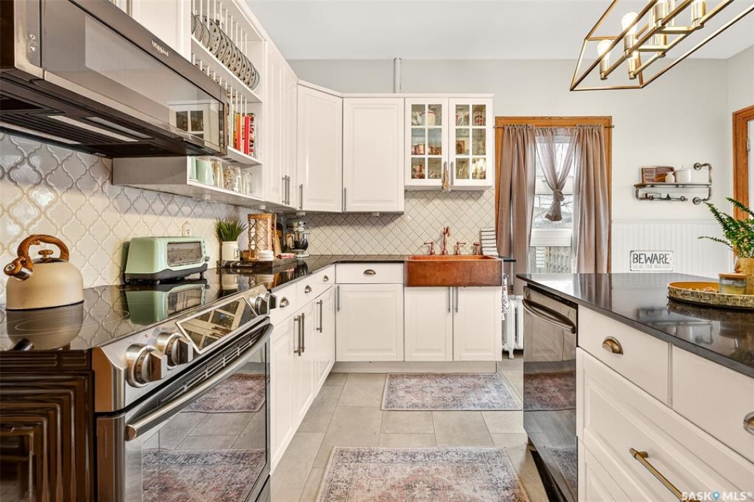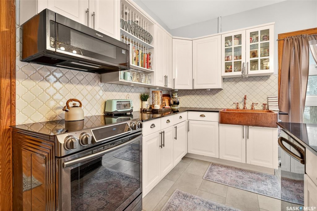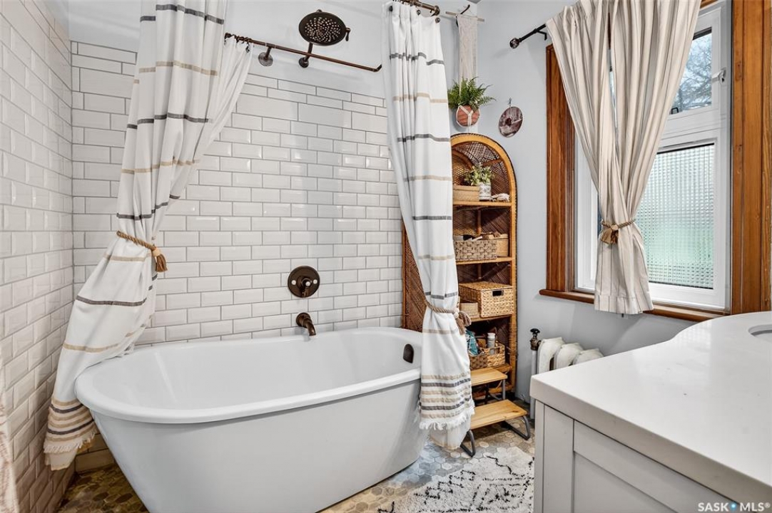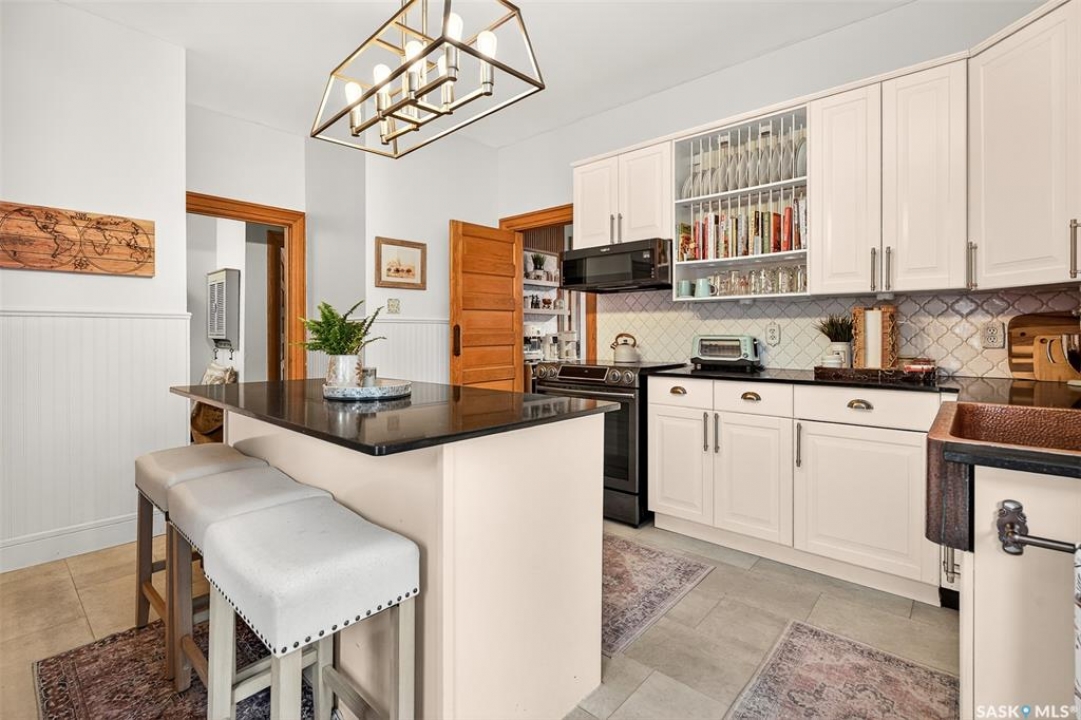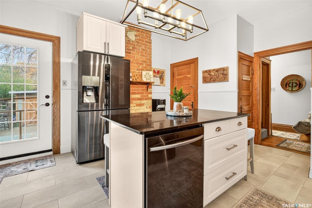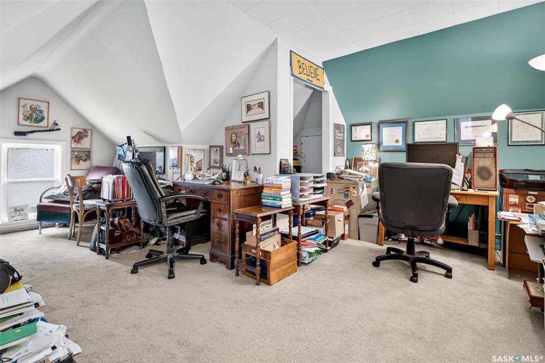 Welcome to this character home located in the highly desirable Avenues area — known for its mature tree-lined streets, timeless architecture, and unbeatable proximity to amenities. The main level features a comfortable living room and a dining room/library, providing flexibility for formal dining or a reading retreat. It would be hard not to notice the stunning wood pocket doors going into the dining room and the living room and the butlers door for easy access between the kitchen and the dining room. Toward the back of the home, you'll find an updated kitchen complete with quartz countertops, eat-in kitchen island and a beautiful copper sink — a perfect blend of charm and modern functionality. The main floor bathroom has been tastefully updated, showcasing a classic bathtub and a local artisan-made custom shower curtain rod along with a water closet for privacy. A spacious primary bedroom and two additional bedrooms complete the main level, offering comfortable living for families or guests. The second level features two generous bedrooms, a smaller bedroom and a two-piece bathroom, along with an open flex area that could easily serve as a library, office, or children's play zone. The unfinished basement provides excellent potential for future development and currently includes a dog wash/shower area and a stylishly finished laundry area. Outdoor spaces are equally inviting — enjoy mornings on the east-facing new front deck that was upgraded last year along with Chippendale railing and red cedar siding which gives this home an updated modern appeal & unwind in the south-facing sunroom, or entertain in the fully fenced backyard featuring a deck, green space and ample storage shed (originally built to store motorcycles). This home perfectly blends historic charm with thoughtful updates, offering plenty of room for a growing family in one of the city's most desirable neighborhoods.
