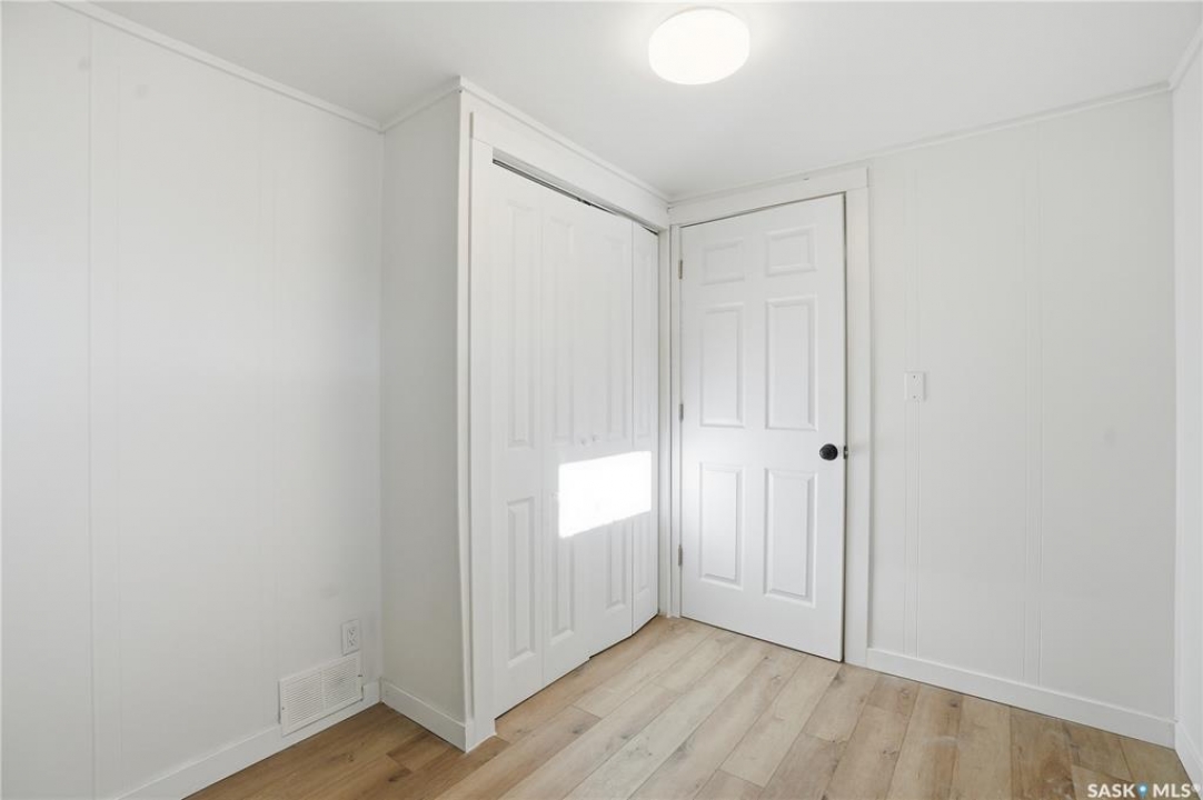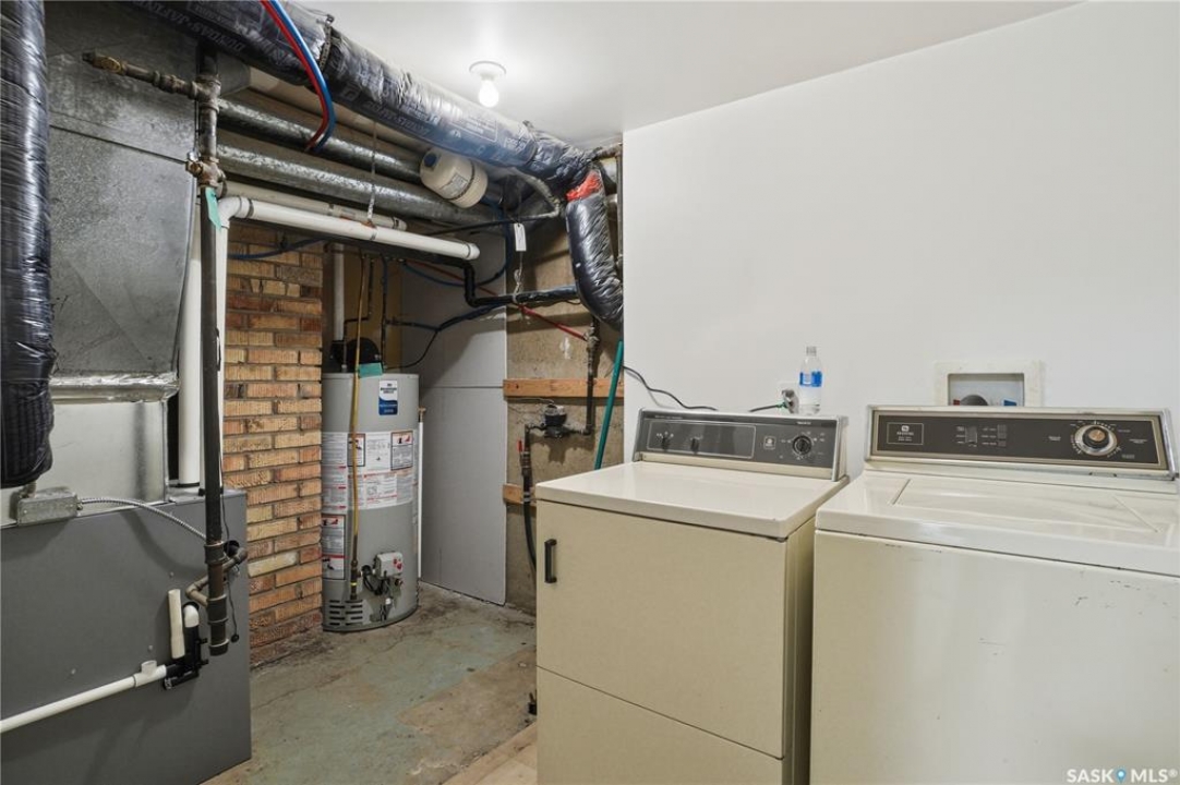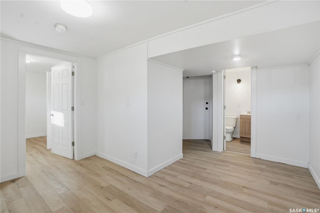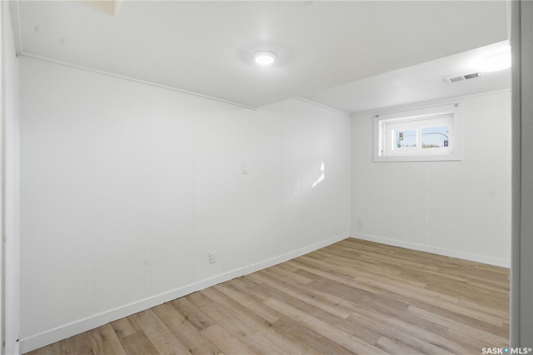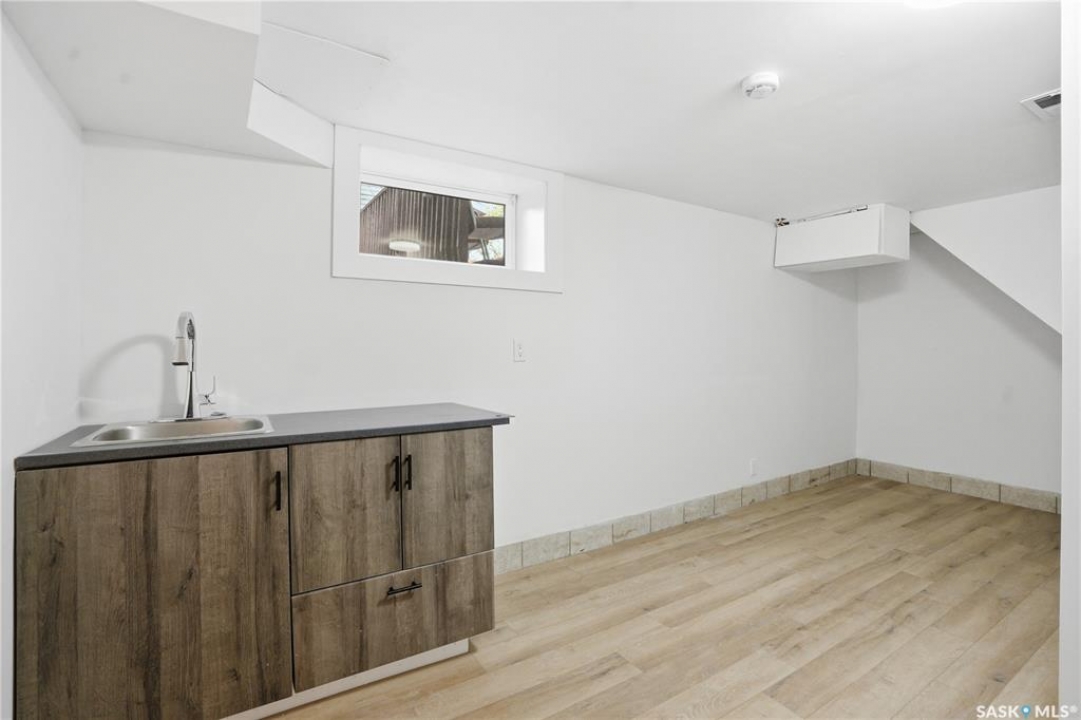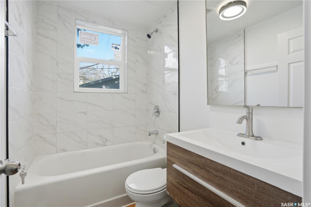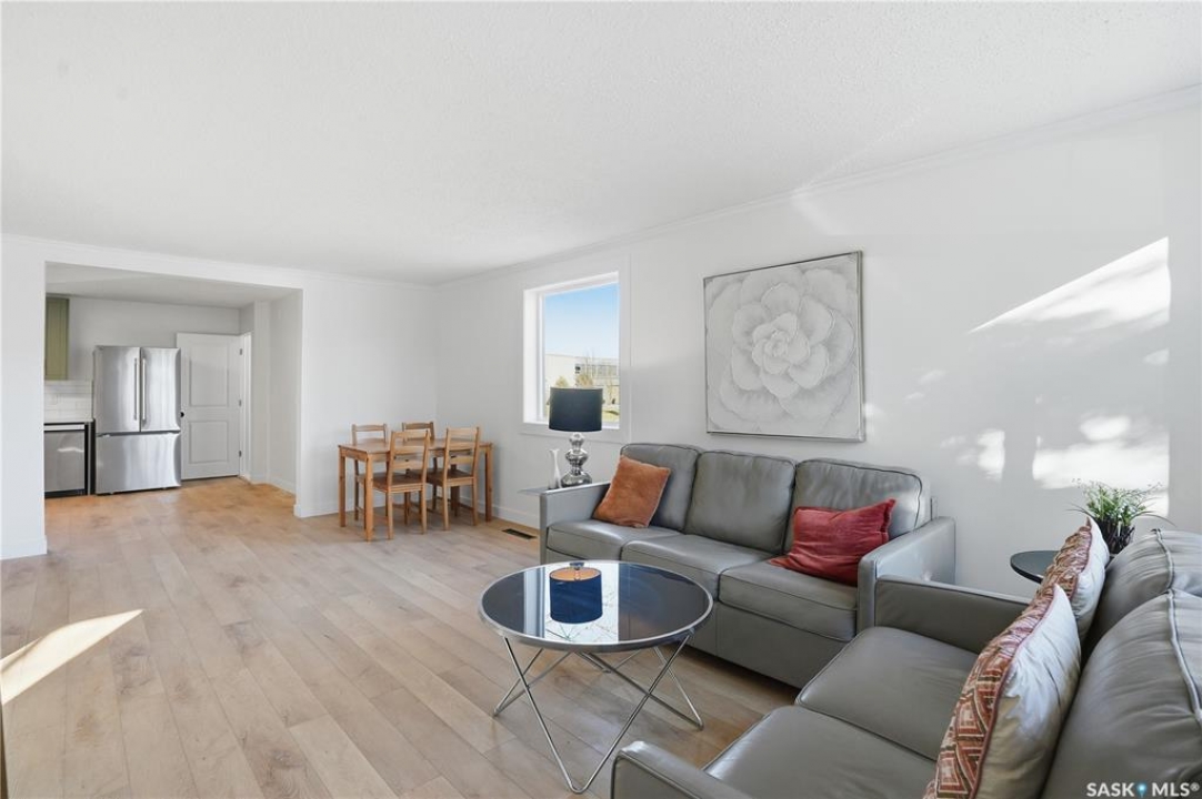 Newly renovated 914 sq ft bungalow in Caswell Hill! Featuring brand-new kitchen cabinets, appliances, flooring, windows, furnace, and hot water tank. The main floor offers two bedrooms, a full modern bathroom, and a spacious living and dining area. The basement has a separate entrance and includes two self-contained units: Unit A with one bedroom, a living room, a kitchen, and a 3-piece bathroom; and Unit B with a living space, a full bathroom, and a counter with sink — perfect as a studio or guest suite. Located directly across the street from Saskatchewan Polytechnic, this property is ideal for families with students or for generating rental income to help with your mortgage! Double detached garage is insulated and boarded ,its ready for the coming winter. Seprate electrical panel in the garage.
