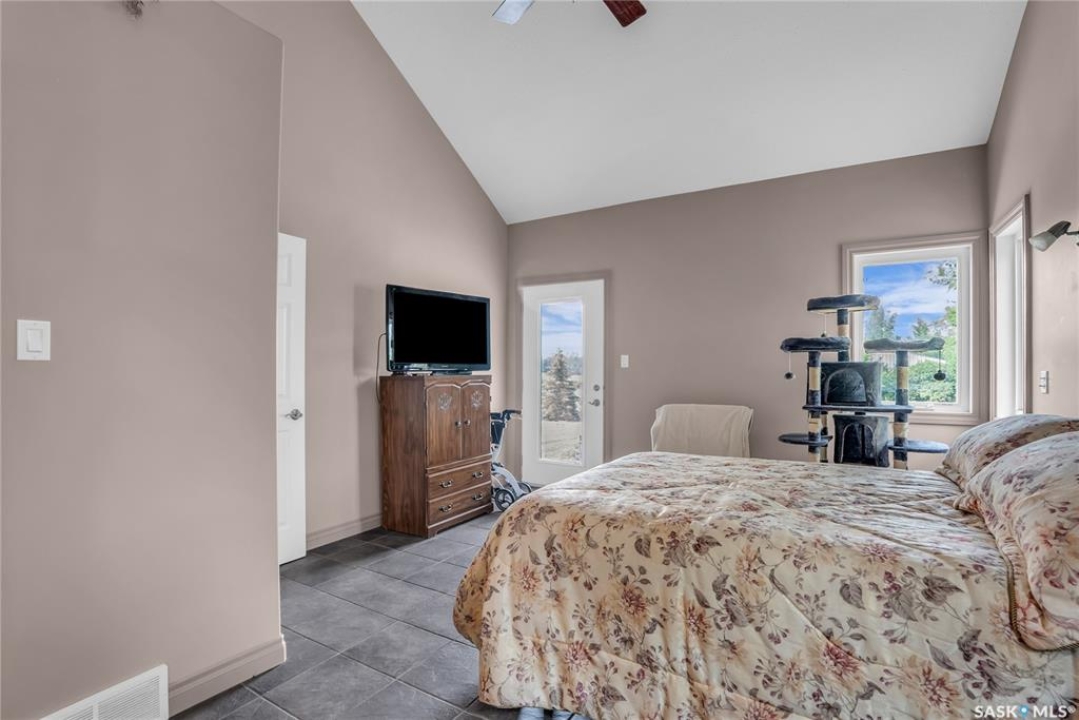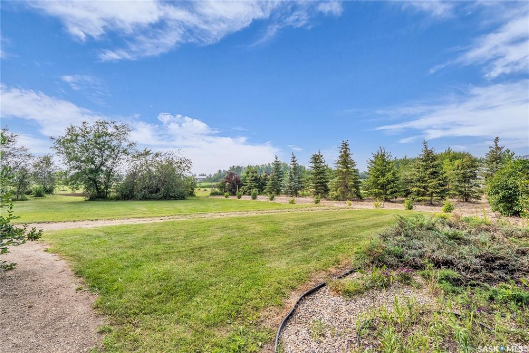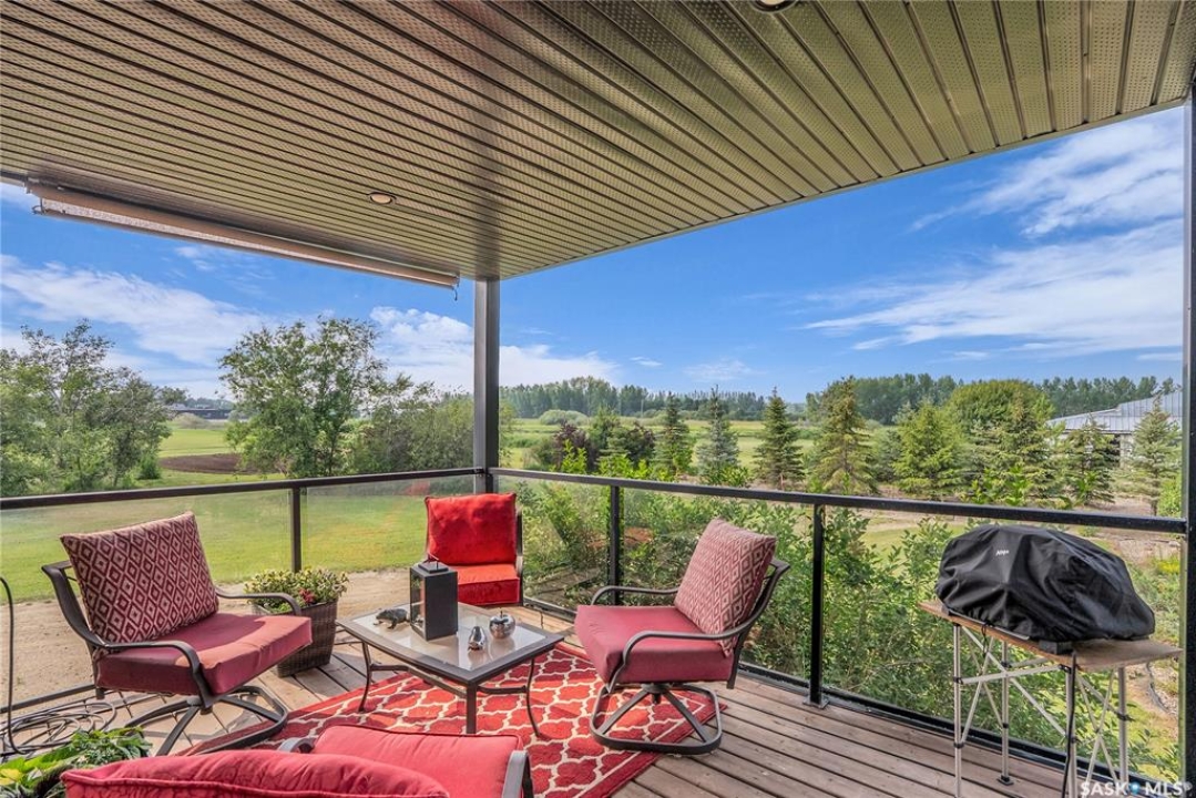 110 Wind River Estates is a thoughtfully designed property located on the edge of Clavet in the RM of Blucher.. Private access to the 3.01-acre estate is from the old #16 highway, an ideal location—with convenient access to four major potash mines, Cargill, walking distance of Clavet School and a variety of local businesses and is only 12 minutes from Saskatoon. Inside, the heart of the home is a chef-inspired kitchen, featuring extensive counter space, a large island with prep sink, a large pantry, gas range, and a built-in refrigerator and freezer. The breakfast bar is a casual space for morning meals or after-school snacks. The dining area opens onto a covered deck, ideal for outdoor dining and entertaining. The spacious living room boasts soaring vaulted ceilings and a cozy gas fireplace. The main-floor primary suite is complete with a luxurious ensuite featuring a jetted tub, tiled shower, and a generous walk-in closet. The second floor has a versatile bonus room overlooking the main living and connects to an additional large bedroom and full bathroom via a unique bridge-style hallway. The bonus room can easily be converted to another bedroom. The fully finished basement includes a large entertainment area, two additional bedrooms, a full bathroom, a cold room, and ample storage space. A main-floor laundry room is conveniently located next to a 2 piece bathroom and just off the garage entrance. The attached heated garage measures 26' x 32' with 12' ceilings, a built-in workbench, hot and cold water, extensive storage and large south facing windows. Landscaped with hundreds of trees, shrubs and perennials. Concrete stepping stones to a secluded firepit & garden area. Designed with energy efficiency in mind, this home stays cool in the summer and warm in the winter. Additional features include paved access right to the gate and brand-new asphalt shingles installed in June 2025. This exceptional property must be seen to be truly appreciated. Call today!