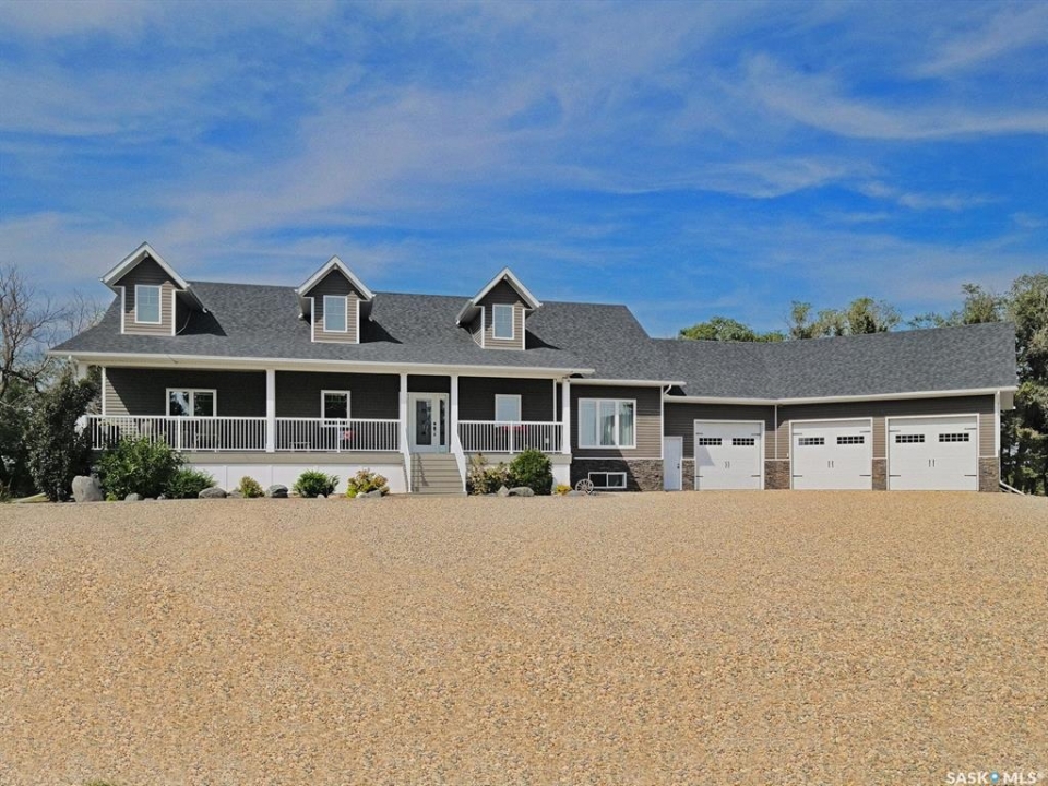 This stunning 2,298 sq. ft. executive bungalow, built in 2015, offers exceptional quality, modern comfort, and country living at its finest. Designed with attention to detail and built to impress, this home combines luxury finishes with practical features, all set on a beautifully developed 14-acre property, located directly across the road of the west side of town limits. Inside, the home features an open and inviting layout with two spacious bedrooms and an optional third, along with a main floor office and laundry for ultimate convenience. There are 3.5 bathrooms, including a luxurious 5-piece ensuite off the primary bedroom complete with double sinks, a soaker tub, and separate shower. The fully developed basement, built with 9-foot ICF walls, provides generous living space ideal for family recreation or entertaining. The attached 1,398 sq. ft. heated garage is fully finished, offering ample room for vehicles, hobbies, or storage. Outside, the property is equally impressive — a fully fenced 14-acre yard with a keypad remote entry gate ensures both privacy and security. The yard is beautifully landscaped with approximately 1,200 planted trees, all supported by a drip irrigation system. A Generac generator provides full-yard backup power, adding peace of mind in any situation. Additional features include central air, central vacuum, a hot tub, and several outbuildings — including a 60x100 canvas-covered storage building, a quonset, and a shop — providing incredible versatility for work, storage, or recreation. This property is truly in like-new condition and showcases pride of ownership throughout. With its exceptional craftsmanship, thoughtful layout, and impressive amenities, it offers the best of both luxury and practicality — a rare opportunity for those seeking an executive home with space to live, work, and play.