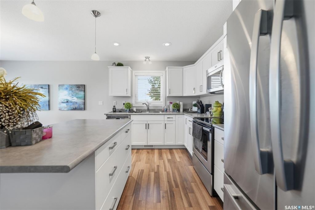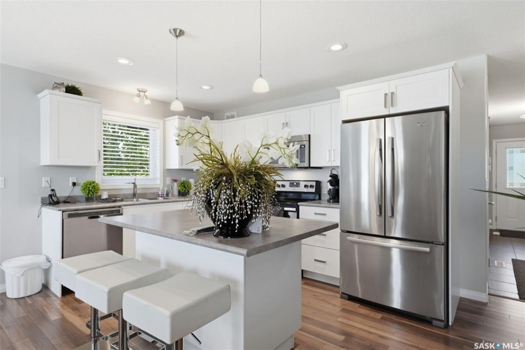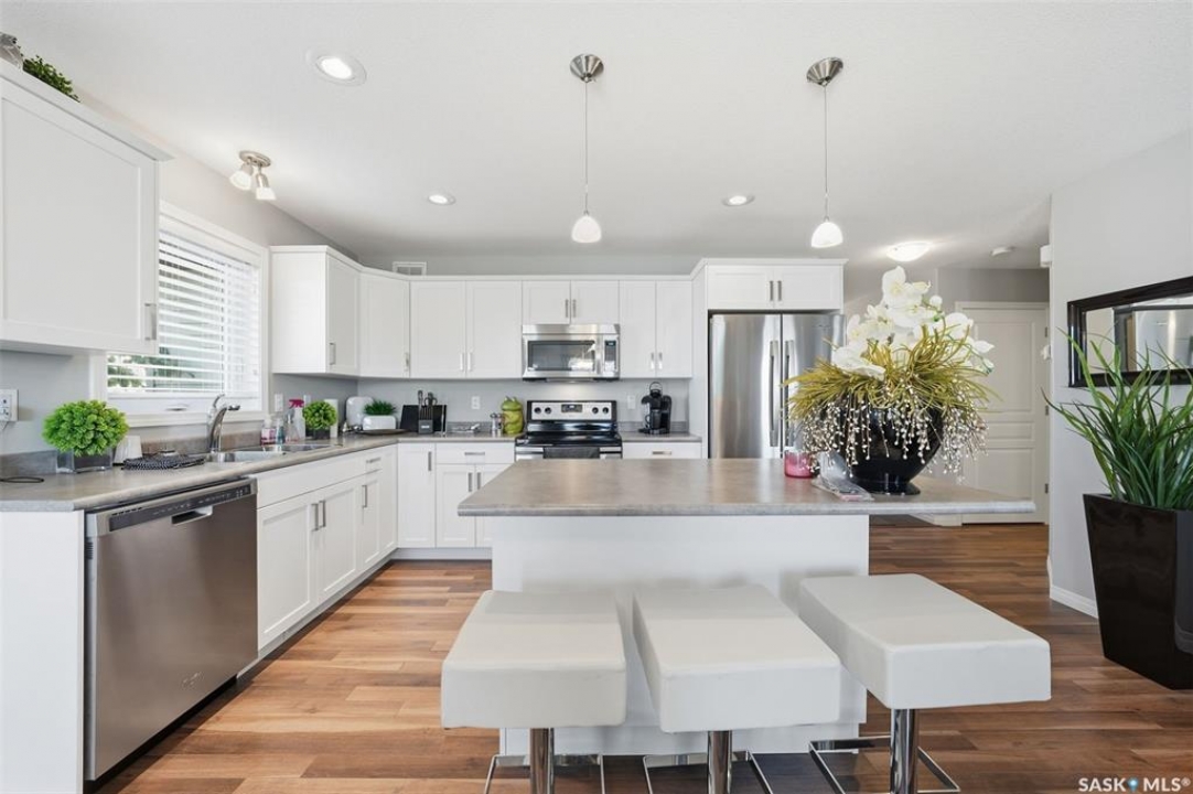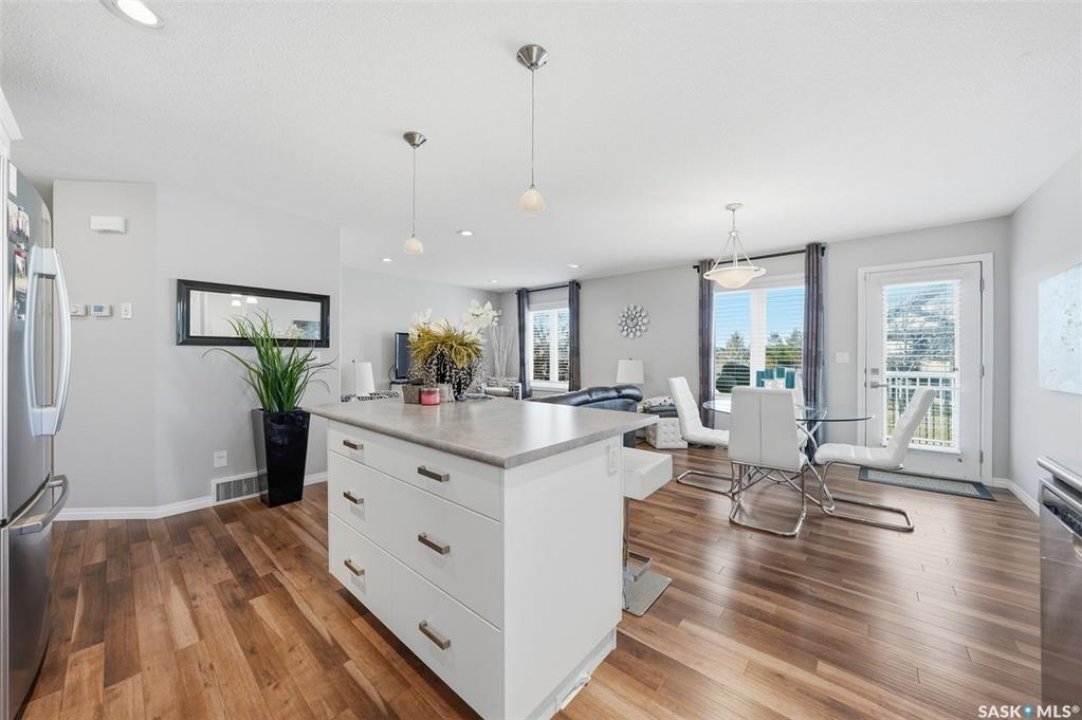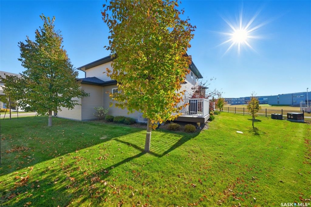 Prestigious end unit townhouse in Dawson Estates in Hampton Village! This former show home is extremely well-maintained pride of ownership evident! The open floor plan is perfect for families and entertainers alike, with a spacious living and dining room, a bright kitchen with an island, stainless appliances and a window over the sink providing extra natural light. From the dining room you can access your private deck, with views of the shared green space, paths and park, plus it's extra private with no neighbours directly behind! The 2pc bath and access to the double attached garage complete the main floor. Upstairs, the primary suite includes 2 double closets and a 4pc ensuite, while the 2 secondary bedrooms share a full bath. The basement is open for your ideas, allowing you to customize it to your taste and needs! Ideally located within the complex, this home offers easy guest parking on the street, and is steps to schools, outdoor rink, playgrounds and splash pad! Call your favourite realtor to view this beautiful home - you won't be disappointed!