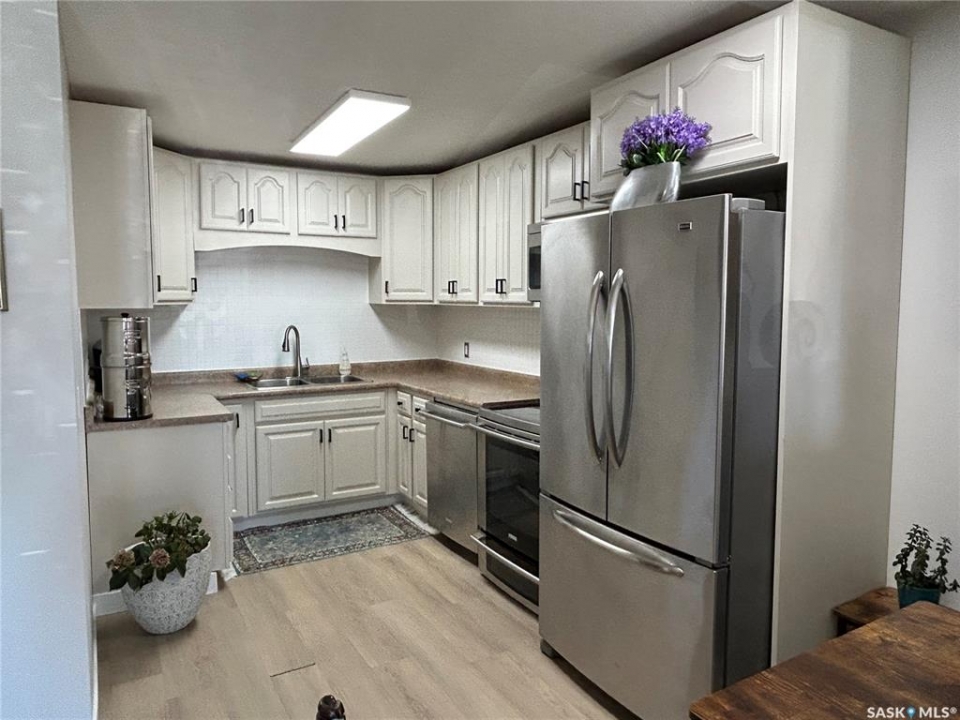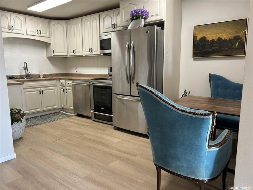 Freshly and fully renovated, ground level 2 bedroom, 4 piece bathroom condo with everything you need. MOVE IN READY. All renos have been recently completed which includes but not limited to: paint throughout, vinyl plank throughout, with the exception of 2nd bedroom, trim, new LED lighting, spray textured ceiling, new four piece bathroom, new master bedroom window, updated furnace. Open concept entry, living room with wall mount for TV, eating area and kitchen with pantry. Stainless Steel kitchen appliances. Nice size primary bedroom with room for a king size bed. Second bedroom makes a great home office option and is also a generous size. Nice laundry area off the kitchen. The new bathroom has a cozy, deep tub. This unit is on the corner electrified parking right out front, and a patio area outside the front door. It also has an outside storage room. For affordable living and lifestyle in a fantastic location, this home is ideal. Condo fees include snow removal, lawn-care, external building maintenance, water/sewer and reserve fund.