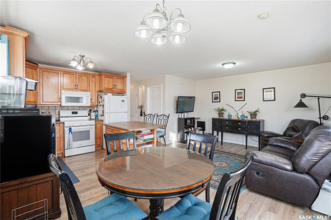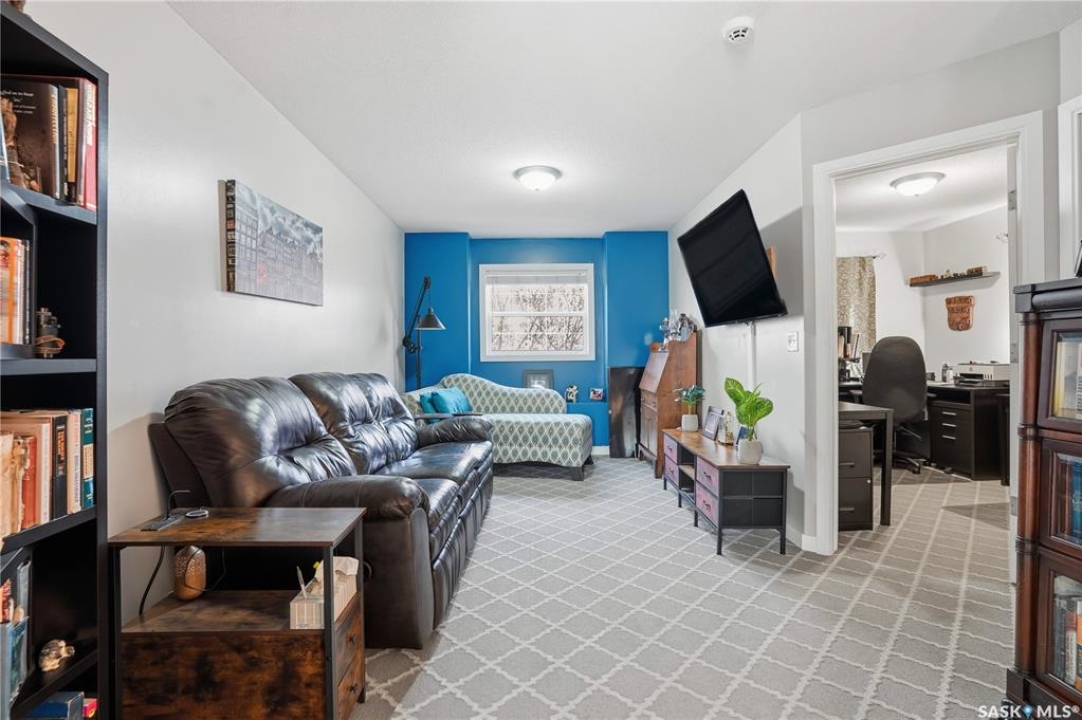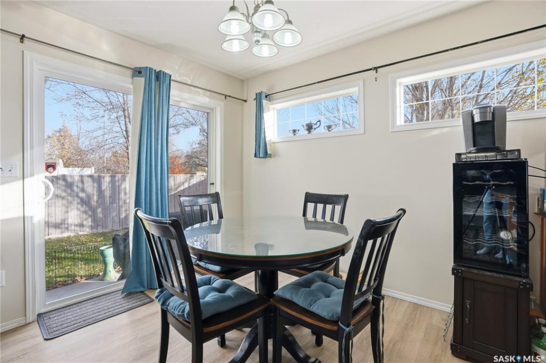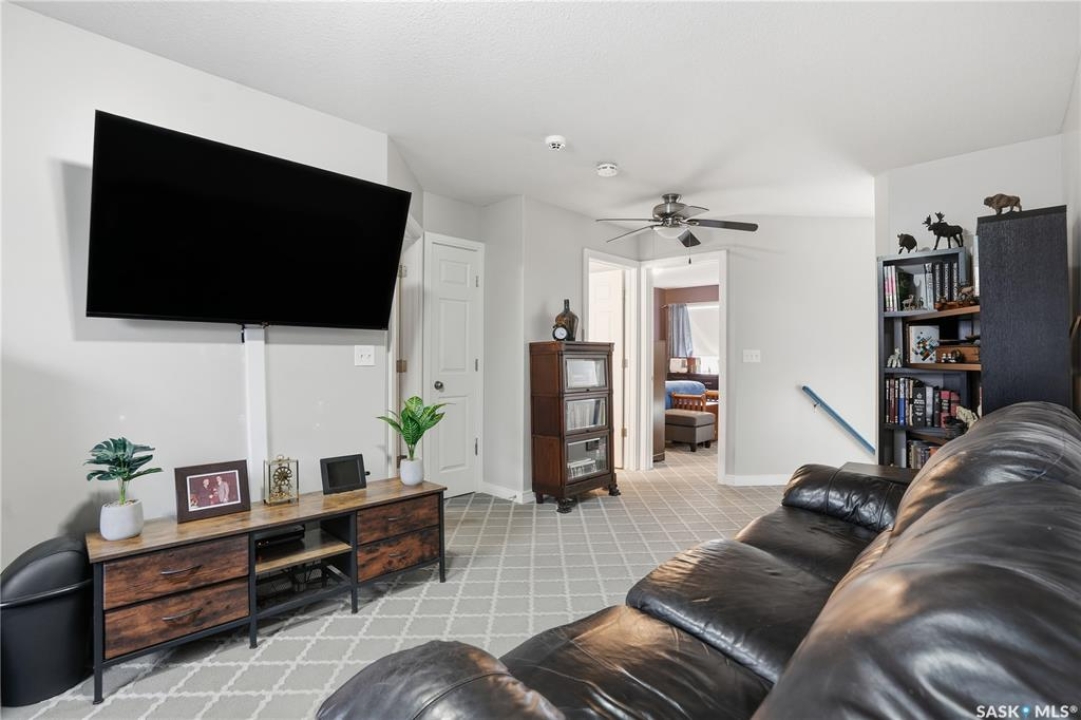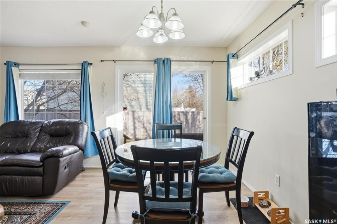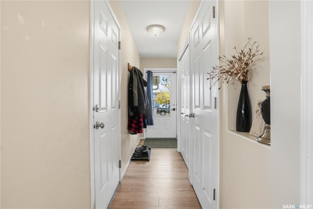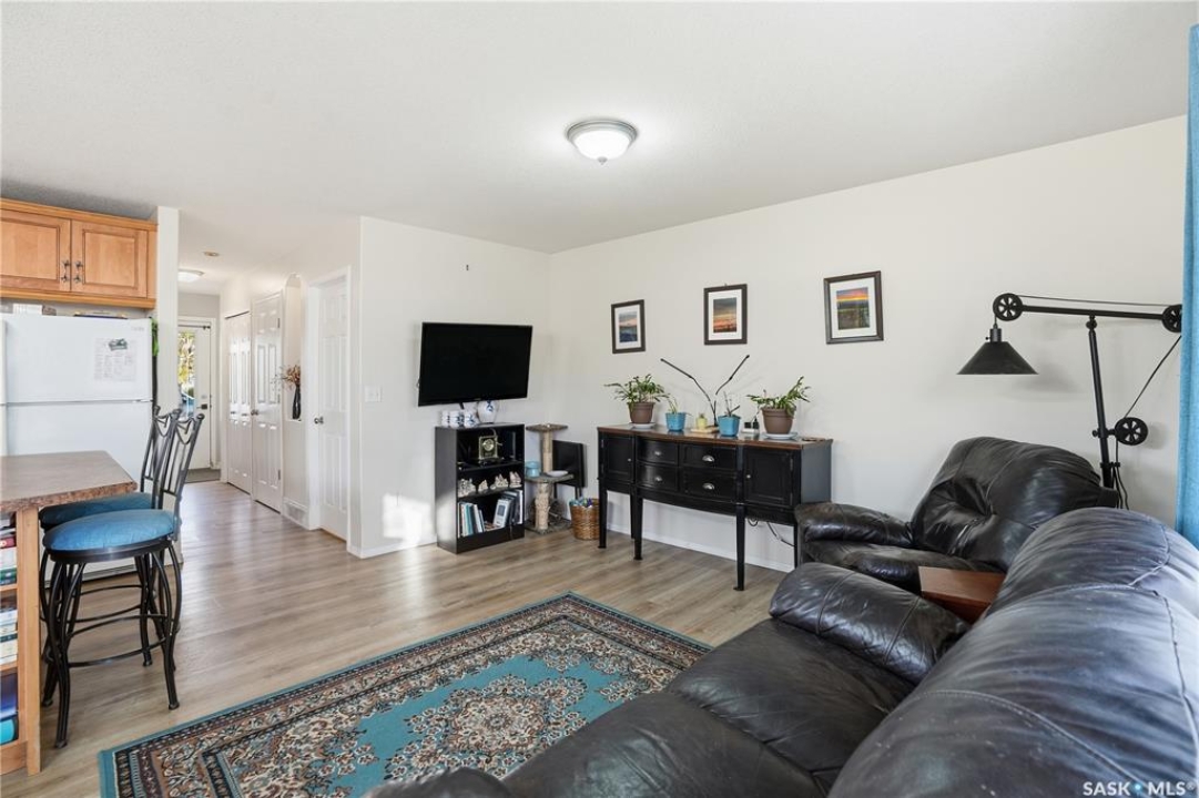 Welcome to this beautifully maintained end-unit condo in Regina's sought-after Lakeridge neighborhood! Offering 1,172 sq ft of stylish and functional living space, this home features an inviting open-concept main floor with extra dining room windows that fill the space with natural light. The kitchen is sure to impress with an abundance of maple cabinets, 4 appliances, a convenient island with seating for two, and plenty of counter space—perfect for both everyday living and entertaining. Recent updates over the past few years include newer flooring throughout the main floor, a newer stove, built-in dishwasher, and a replaced water heater. Upstairs, you'll find two bedrooms, a 4 piece bathroom and a large bonus room. The fully finished basement adds even more living space with a cozy rec room, a combined laundry/ 3 piece bathroom, and storage spaces. Enjoy the convenience of a single attached garage, central air conditioning, central vac and a welcoming front deck for your morning coffee or evening unwind. Located close to shopping, restaurants, parks, and amenities, this home offers the perfect blend of comfort and convenience. Included with your condo fees is access to the Sovanna Pointe Clubhouse. Quick possession is available—move in and start enjoying this bright and spacious home right away!