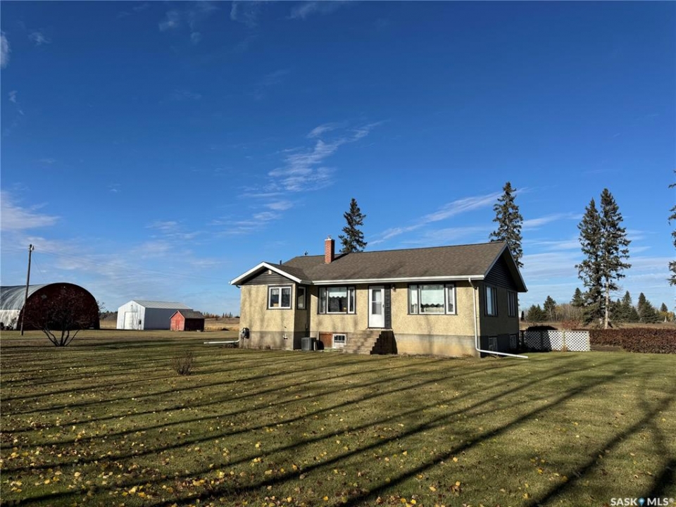 Rare opportunity, home quarter with yard site includes 1308 sq. ft. bungalow with 3 bedrooms, two baths, large family room and more! Yard includes two wells, dugout, spring fed slough allows opportunity for intense livestock operation or irrigated garden center. Previous owner wintered up to 300 cows. Included on 1/4 section is two barns measuring 28 x 40', 28 x 60', insulated double garage measuring 22 x 32', 60 x 40' storage shed and 30 x 40' shop with 14' high eaves. Home is plumbed with water softener, R40 ultra-light carbon filter for your own potable water. Home includes central air and central vac. 52/acres cultivated, 80/acres grazing, river runs through property. Become self-sufficient and live off the land, you'll be glad you did!