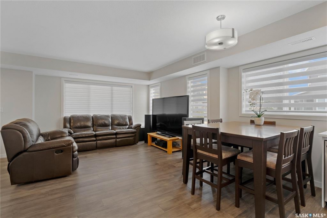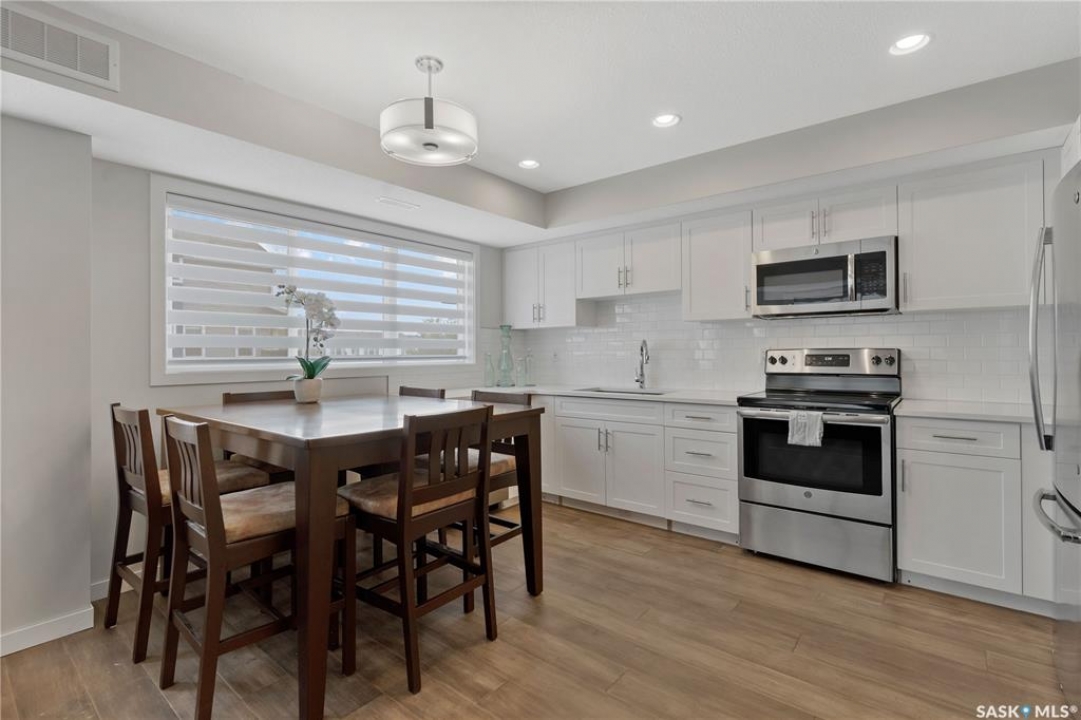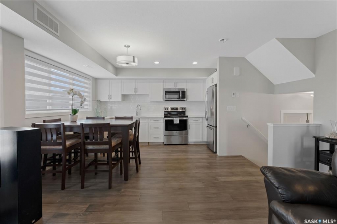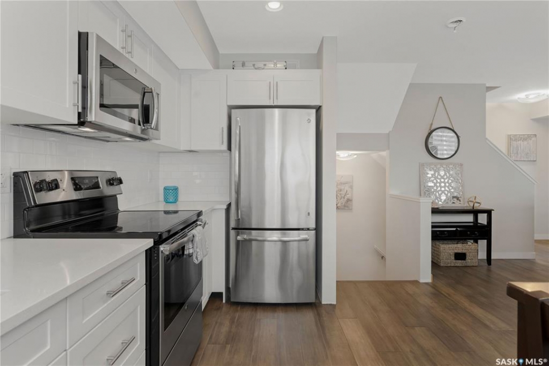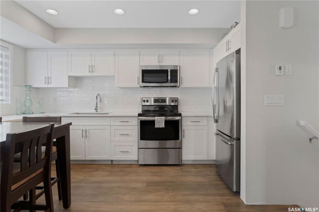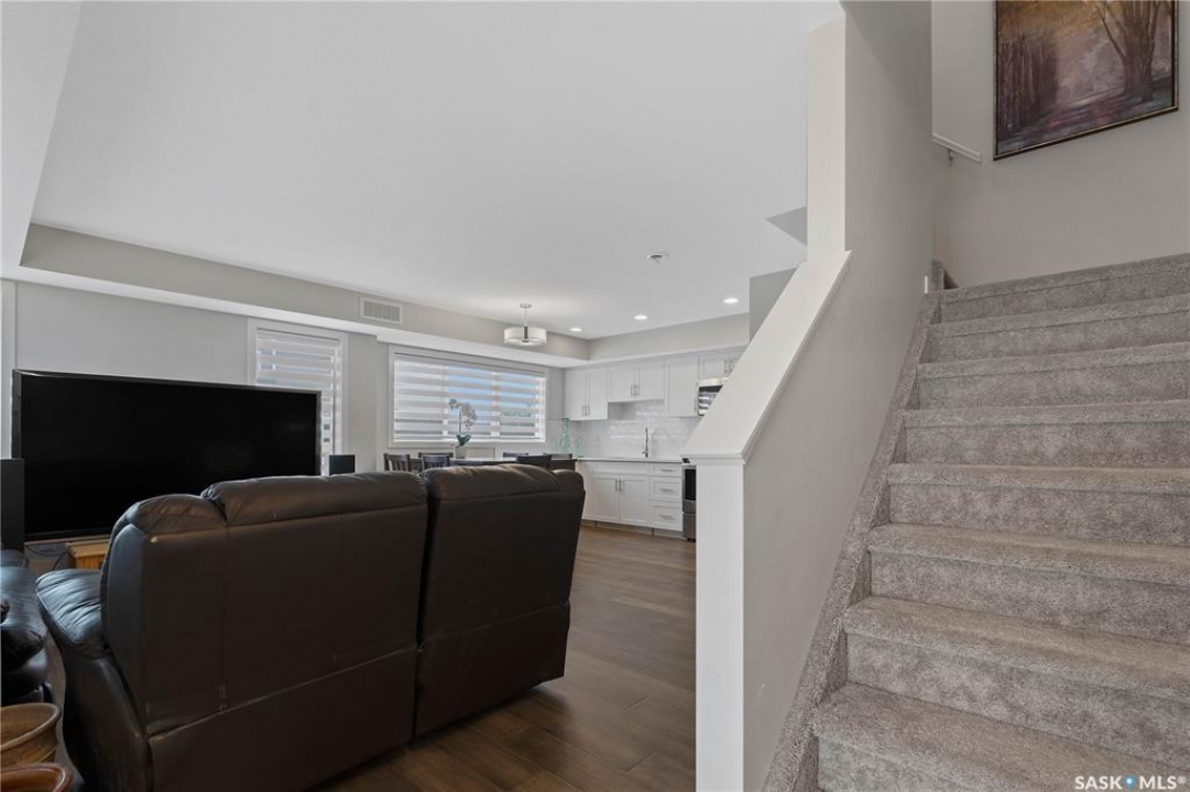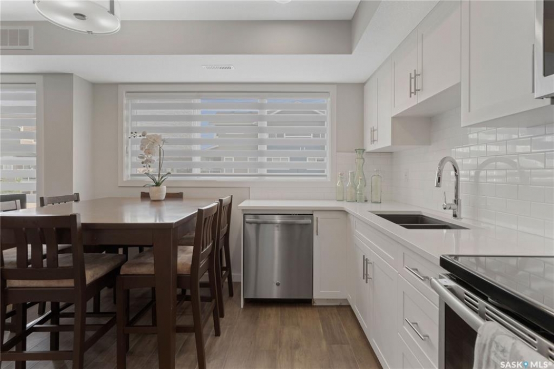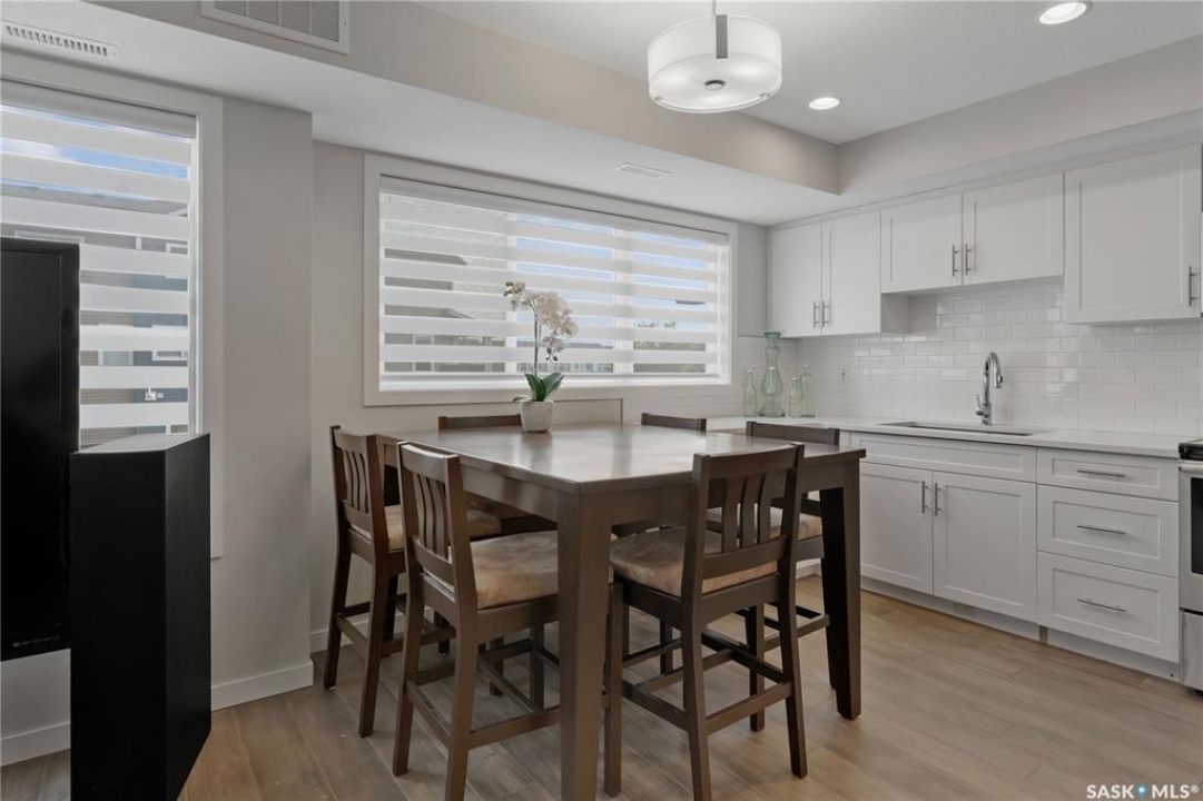 This is a beautiful townhouse condo you can rarely see in The Greens. Three bedrooms, attached garage, end unit, tons of upgrades from the builder, built by Porchlight in 2017, really mint condition. On the main floor, There are the laundry room, the 11'8"x 22' attached garage with large south facing window and the furnace room. Up to the second floor, you can see the gleaming engineered hardwood flooring all over the living room, kitchen & dining area, the kitchen has upgraded cabinets, stainless steel appliance and quartz counter tops, the large south & east facing windows make this level really bright, 2 pc bath on this level, and the 20'x 8' east facing balcony will be your oasis in the hot summer days. There are three nice sized bedrooms and a upgraded full bathroom on the top floor. Close to Costco and the east end amenities.
