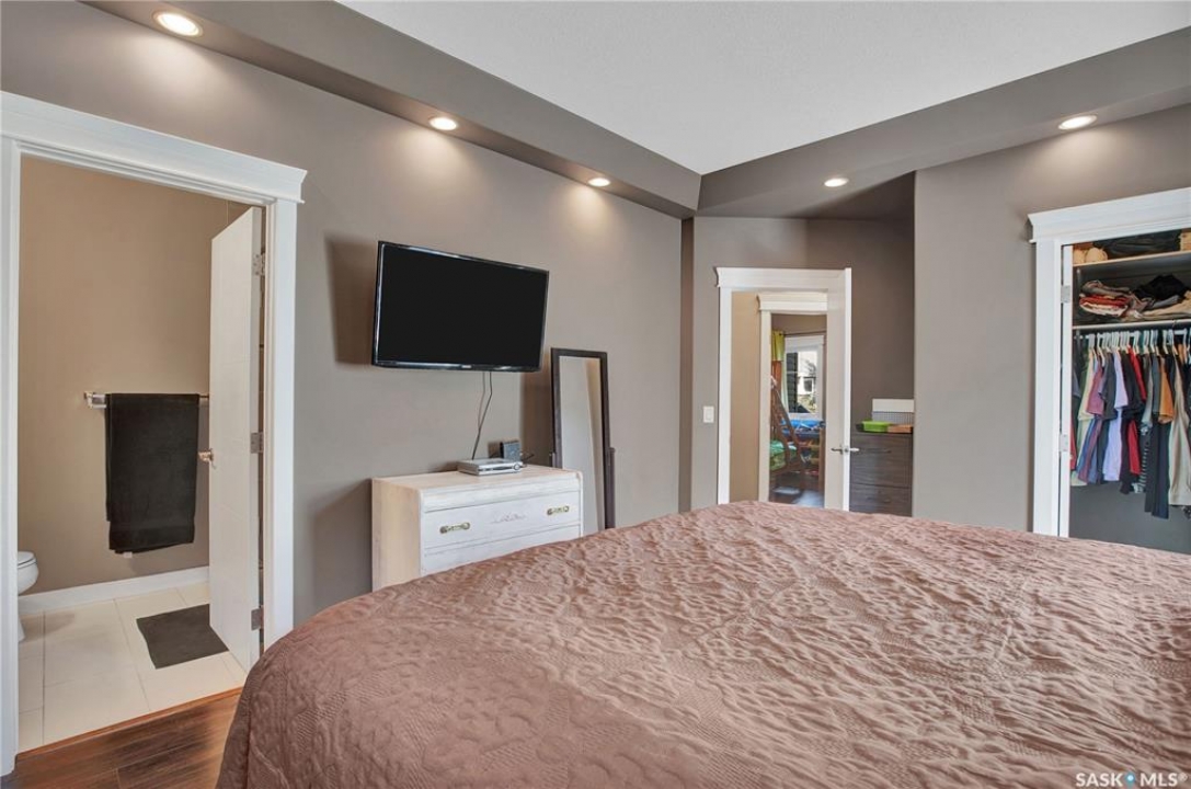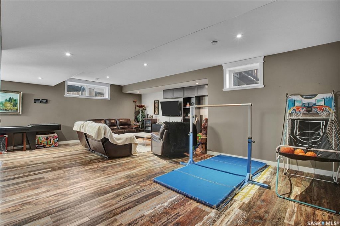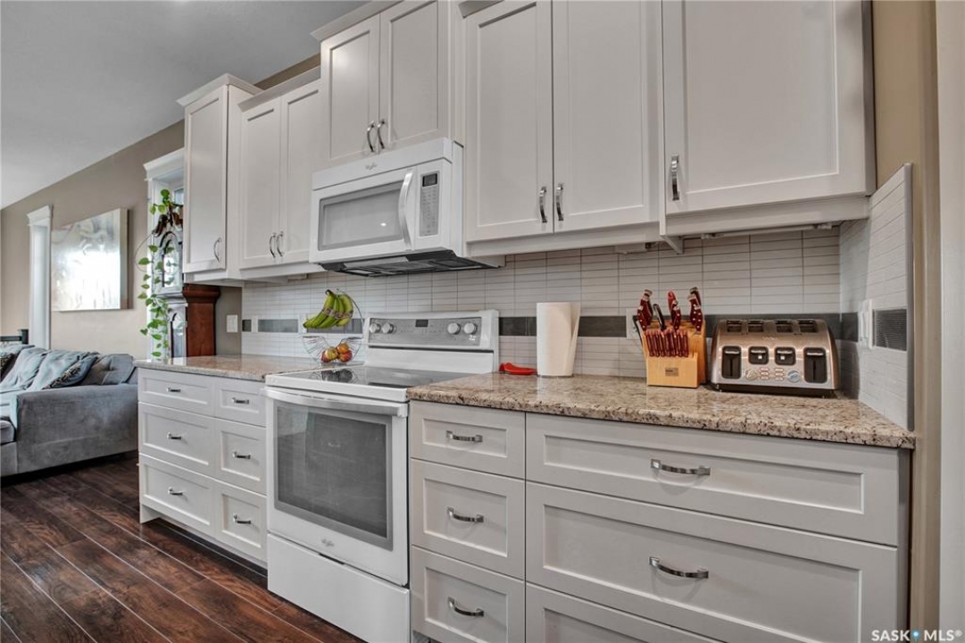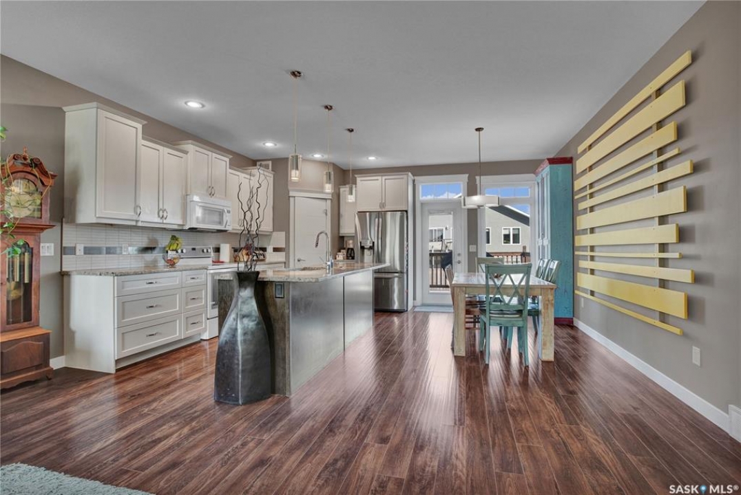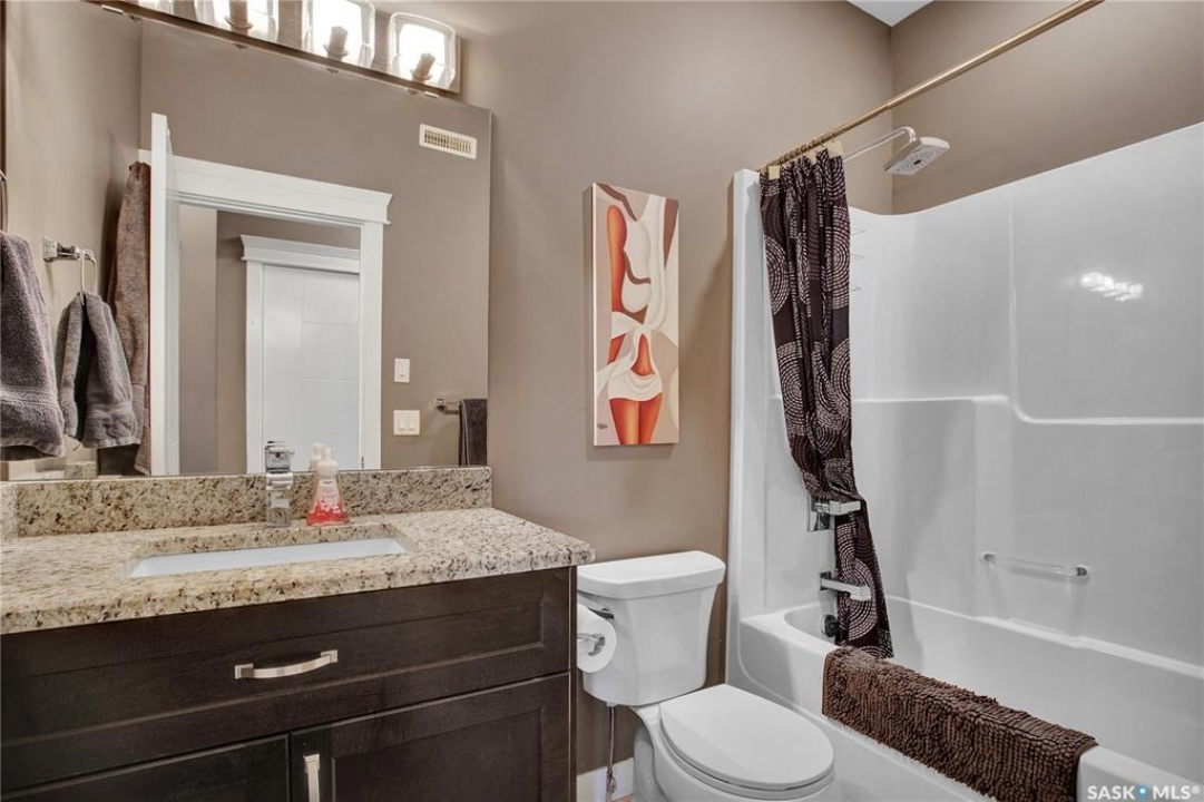 This is the one you've been waiting for golf course views without the golf course price tag! This immaculate 1316 square foot 4 bedroom 3 bathroom bungalow is fully finished and ready for its new owners! The main floor is big, bright and wide open featuring a large living room with rich laminate floors & maple railing with metal spindles, leading into your timeless two tone kitchen with granite counter tops, tile backsplash, large eat up island, walk in corner pantry and under cabinet lighting. Dining room is big enough to host the largest of family gatherings with a glass patio door leading to your rear deck and transom windows added for tons of natural light. Down the hallway you'll find the large master bedroom with upgraded drop soffit ceiling walk-in closet and 3 piece ensuite with custom tile shower. There are also two more good sized bedrooms and the main full 4 piece bathroom with tile floors and granite counter tops. Downstairs was made for entertaining. The wet bar area has built-in cabinets, bar fridge, high chair sit up peninsula and room for the shuffle board. The rest of the main area is wide open with a huge family room area for watching the game or setting up the home theater as well as a good sized games room area for the pool table poker table or putting green! There is also another large sized basement bedroom full 4 piece bathroom & large laundry/storage/utility room. Don't forget to check the other good sized storage room under the stairs! Situated on a massive inside corner irregular shaped lot there is tons of room for the trampoline playset firepit and more! Nice golf course views can be had from the rear deck while lounging! Other notables include Central AC, HRV Unit, extra wide concrete driveway and oversized 26x26' attached garage fully insulated and drywalled. Rare to find an upgraded Bungalow construction in Warman this great home shows 10/10 and is ready for its new owners. Call your favorite Realtor to book a private viewing today!