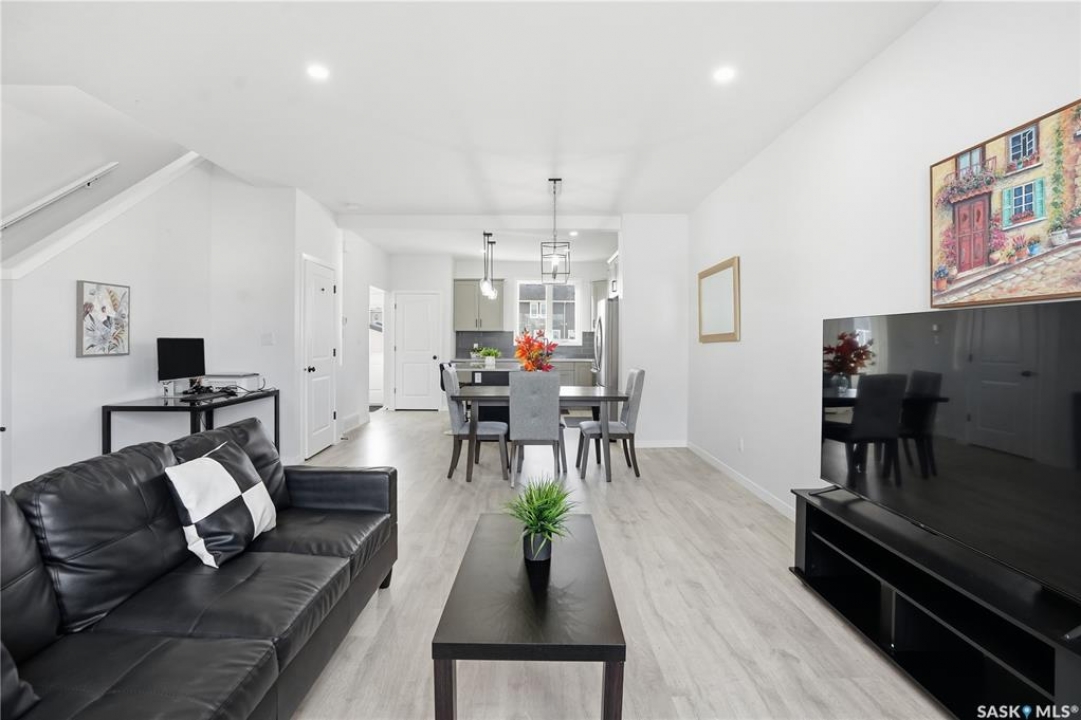 Welcome to 2992 George Street in the ever-growing community of the Towns in East Regina. This townhome built in 2022 offers 1428 sq ft of thoughtfully designed living space, contemporary design, & everyday comfort. Featuring 3 bedrooms, 3 bathrooms, this home is perfect for family living. Built by Pacesetter Homes, this two-storey home exemplifies quality craftsmanship & lovely finishes, including quartz countertops, updated plumbing fixtures, & durable neautral colored laminate flooring. The open-concept main floor provides a natural flow between the entry, living, dining, & kitchen areas, creating an inviting space for both practical and daily living - and so easy for entertaining. With an east/west configuration, the front of the home is bright & illuminates with the morning sunshine. What a wonderful place to relax with a morning coffee. The area continues into a dining area, & the kitchen is equipped with a spacious quartz eat up island, plenty of cabinets, drawers, & appliances (still under warranty until Jan 2026). The back of the home has a functional mudroom, & is complete with the 2 pc main floor bathroom. Upstairs, all three bedrooms are a good size with the primary suite featuring a walk-in closet, & a full bath ensuite. The two additional bedrooms offer ample storage & so much natural light. A second full bathroom & laundry area complete the upper floor. The basement is solid, & ready for future development. Additional highlights include front & back yard landscaping, a fully fenced yard, back parking pad (14x25) making it perfect for a future garage. Built on piles, with floorplans available for the new buyer, this home delivers great value in a family friendly area. This home is close to schools, handfuls of fabulous parks, east end amenities in Acre 21 shopping area for groceries, restaurants, pharmacies, retail shops, coffee shops, & so much more! Flexible possession is available.