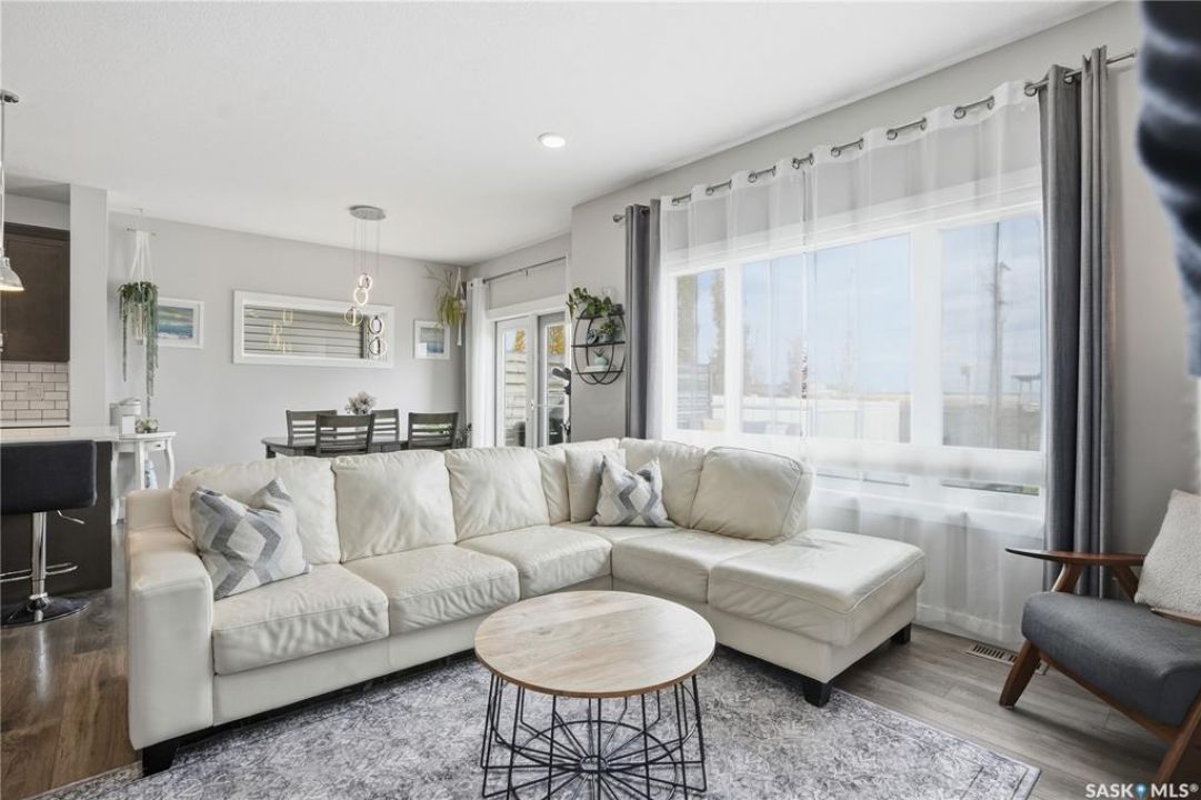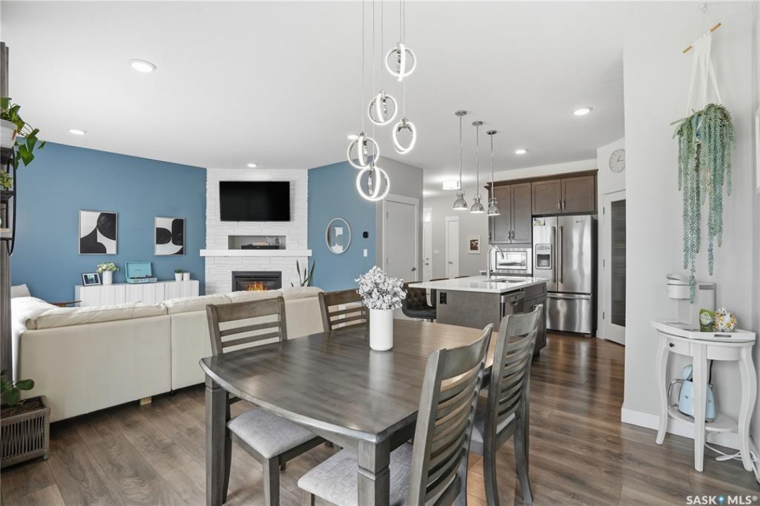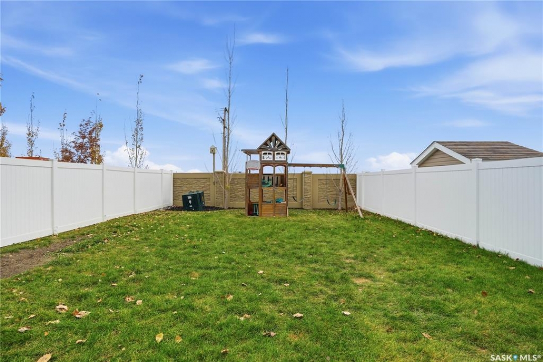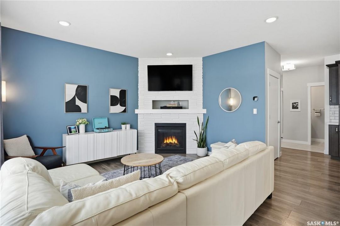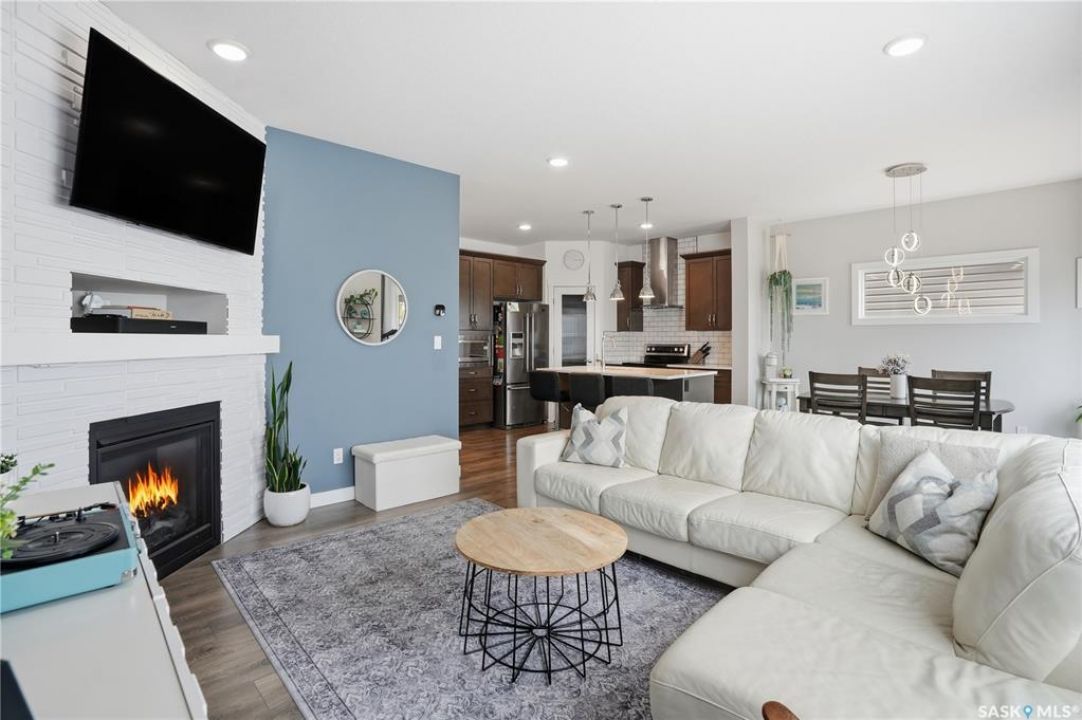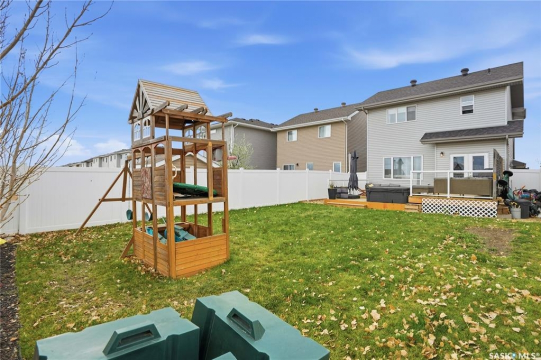 Immaculate 4 Bedroom, 3 Bathroom Two-Storey — Perfectly Designed for Family Living! Welcome to this beautifully maintained and thoughtfully designed two-storey home that checks every box for comfort, style, and functionality. From the moment you step inside, you'll appreciate the bright, open-concept layout and the attention to detail throughout. The heart of the home is the stunning kitchen featuring quartz countertops, modern cabinetry, and a spacious island — perfect for meal prep or casual dining. The kitchen opens seamlessly to the inviting living room with a cozy fireplace & the dining area that overlooks the landscaped backyard, plent of large windows flooding the main floor with natural light. A convenient two-piece bath and laundry room complete the main level. Upstairs, the spacious primary bedroom offers a walk-in closet and a private ensuite for your own retreat. Two additional well-sized bedrooms and a full four-piece bathroom complete the upper level, providing plenty of space for the whole family. The professionally developed basement is a true bonus — featuring a large rec room, a fun children's play nook under the stairs, a fourth bedroom, and room for a future bathroom. The Dricore subfloor adds warmth and comfort to the space, making it perfect for year-round enjoyment. Step outside to your private backyard oasis, complete with a two-tiered deck, natural gas BBQ hookup, a newer hot tub, and a play structure for the kids — all overlooking Saskatchewan's stunning prairie views. Additional highlights include: Heated, fully insulated garage, Zero-scaped front yard for low-maintenance living, High-efficiency furnace, HRV system, owned water heater and central air conditioning, Rip radon mitigation system, Remaining warranties for peace of mind Walking distance to schools, parks, bus stops, and amenities! This home has been cared for with pride and is move-in ready — the perfect blend of warmth, practicality, and style.
