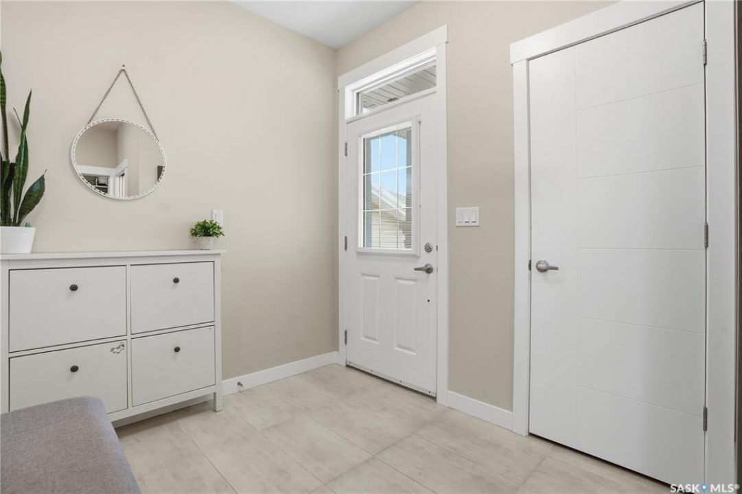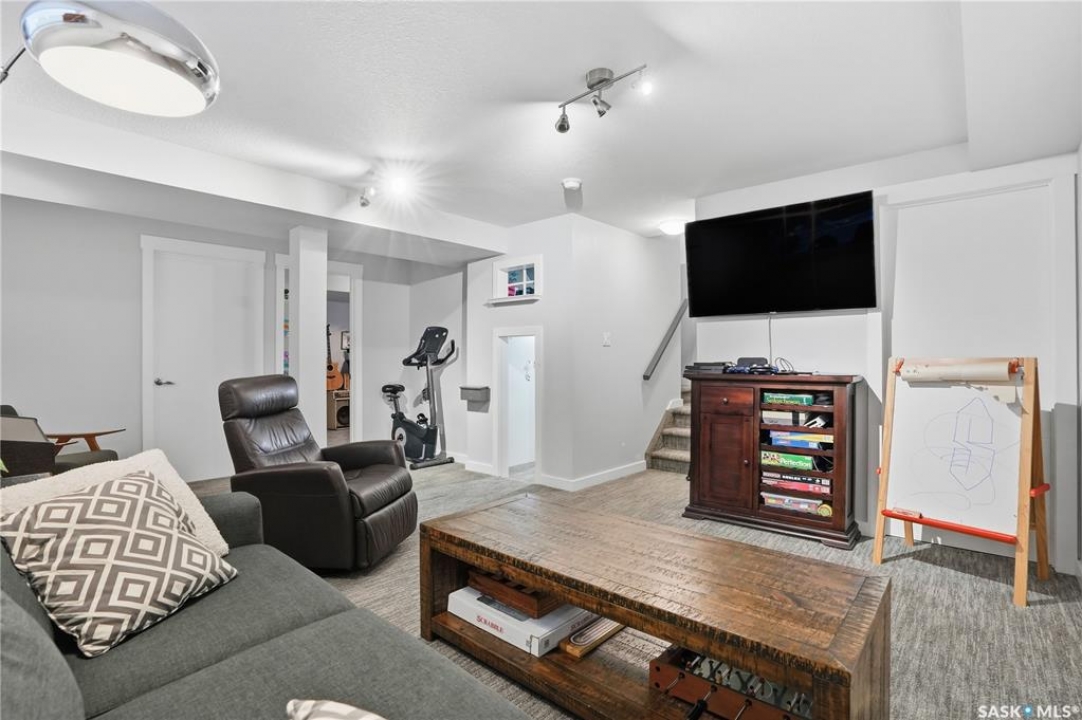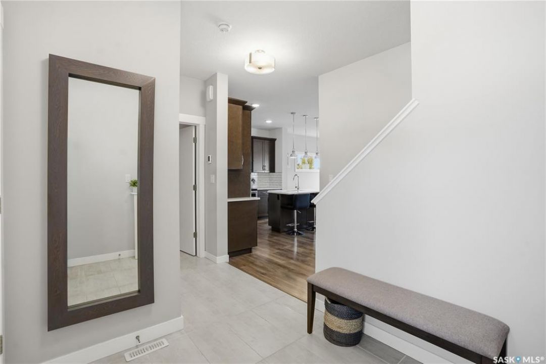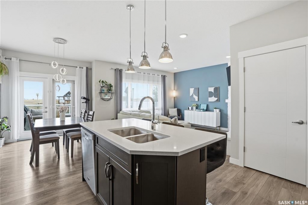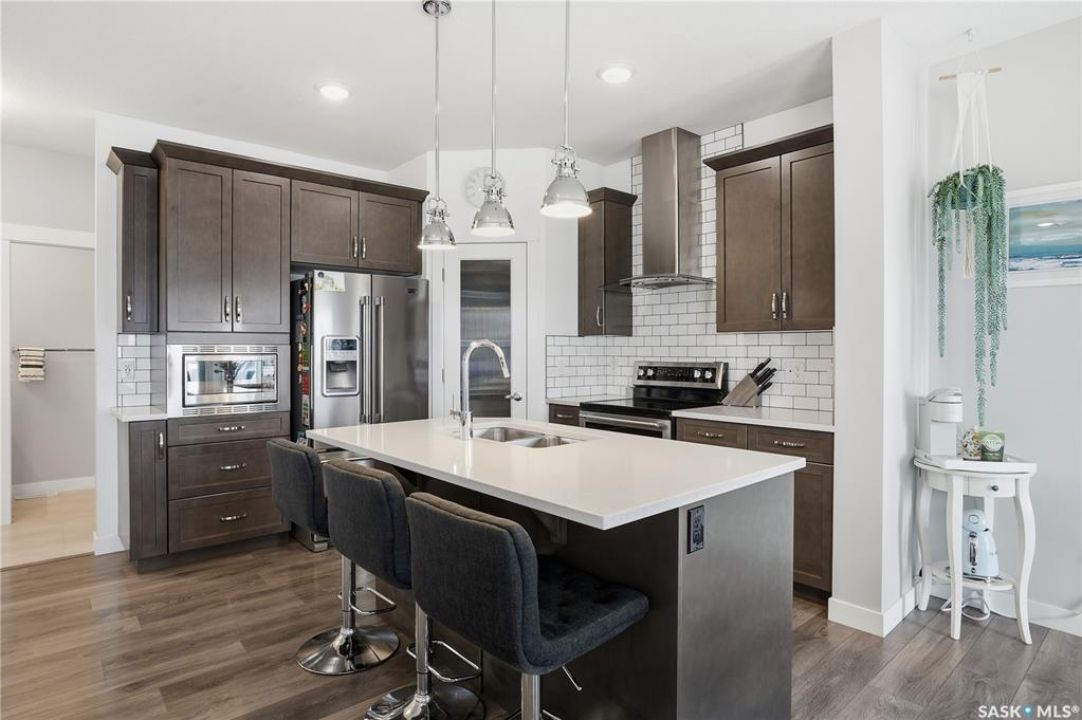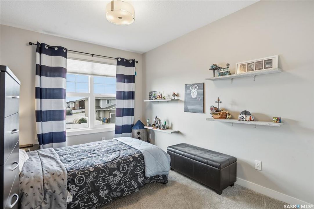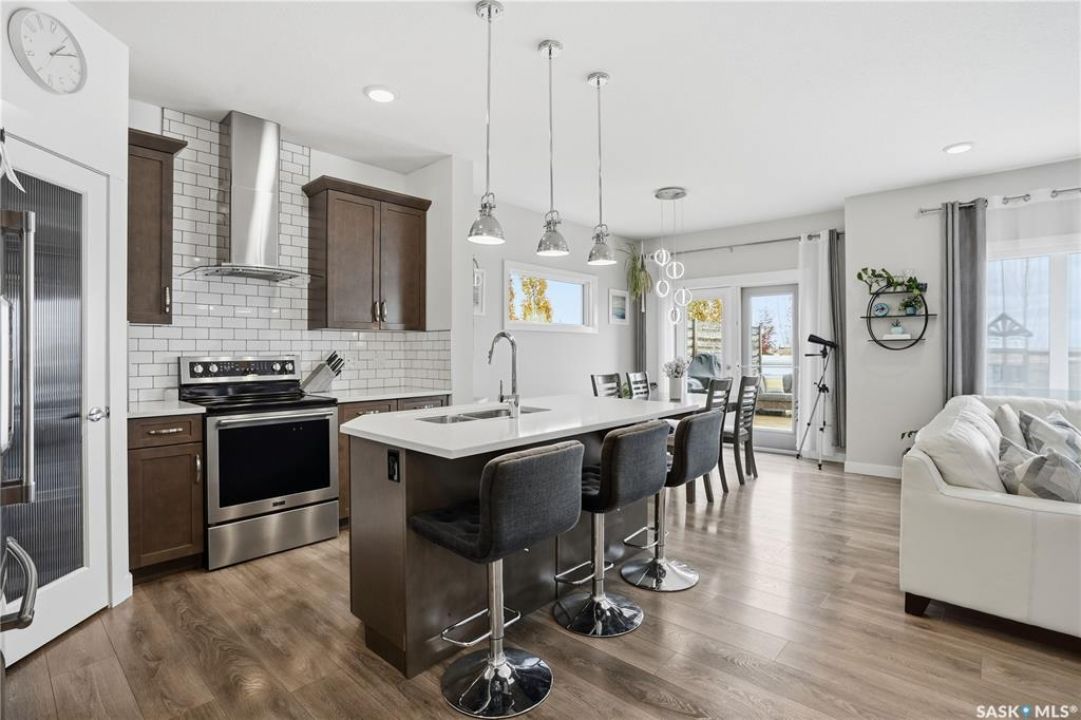 Immaculate 4 Bedroom, 3 Bathroom Two-Storey — Perfectly Designed for Family Living! Welcome to this beautifully maintained and thoughtfully designed two-storey home that checks every box for comfort, style, and functionality. From the moment you step inside, you'll appreciate the bright, open-concept layout and the attention to detail throughout. The heart of the home is the stunning kitchen featuring quartz countertops, modern cabinetry, and a spacious island — perfect for meal prep or casual dining. The kitchen opens seamlessly to the inviting living room with a cozy fireplace & the dining area that overlooks the landscaped backyard, plent of large windows flooding the main floor with natural light. A convenient two-piece bath and laundry room complete the main level. Upstairs, the spacious primary bedroom offers a walk-in closet and a private ensuite for your own retreat. Two additional well-sized bedrooms and a full four-piece bathroom complete the upper level, providing plenty of space for the whole family. The professionally developed basement is a true bonus — featuring a large rec room, a fun children's play nook under the stairs, a fourth bedroom, and room for a future bathroom. The Dricore subfloor adds warmth and comfort to the space, making it perfect for year-round enjoyment. Step outside to your private backyard oasis, complete with a two-tiered deck, natural gas BBQ hookup, a newer hot tub, and a play structure for the kids — all overlooking Saskatchewan's stunning prairie views. Additional highlights include: Heated, fully insulated garage, Zero-scaped front yard for low-maintenance living, High-efficiency furnace, HRV system, owned water heater and central air conditioning, Rip radon mitigation system, Remaining warranties for peace of mind Walking distance to schools, parks, bus stops, and amenities! This home has been cared for with pride and is move-in ready — the perfect blend of warmth, practicality, and style.